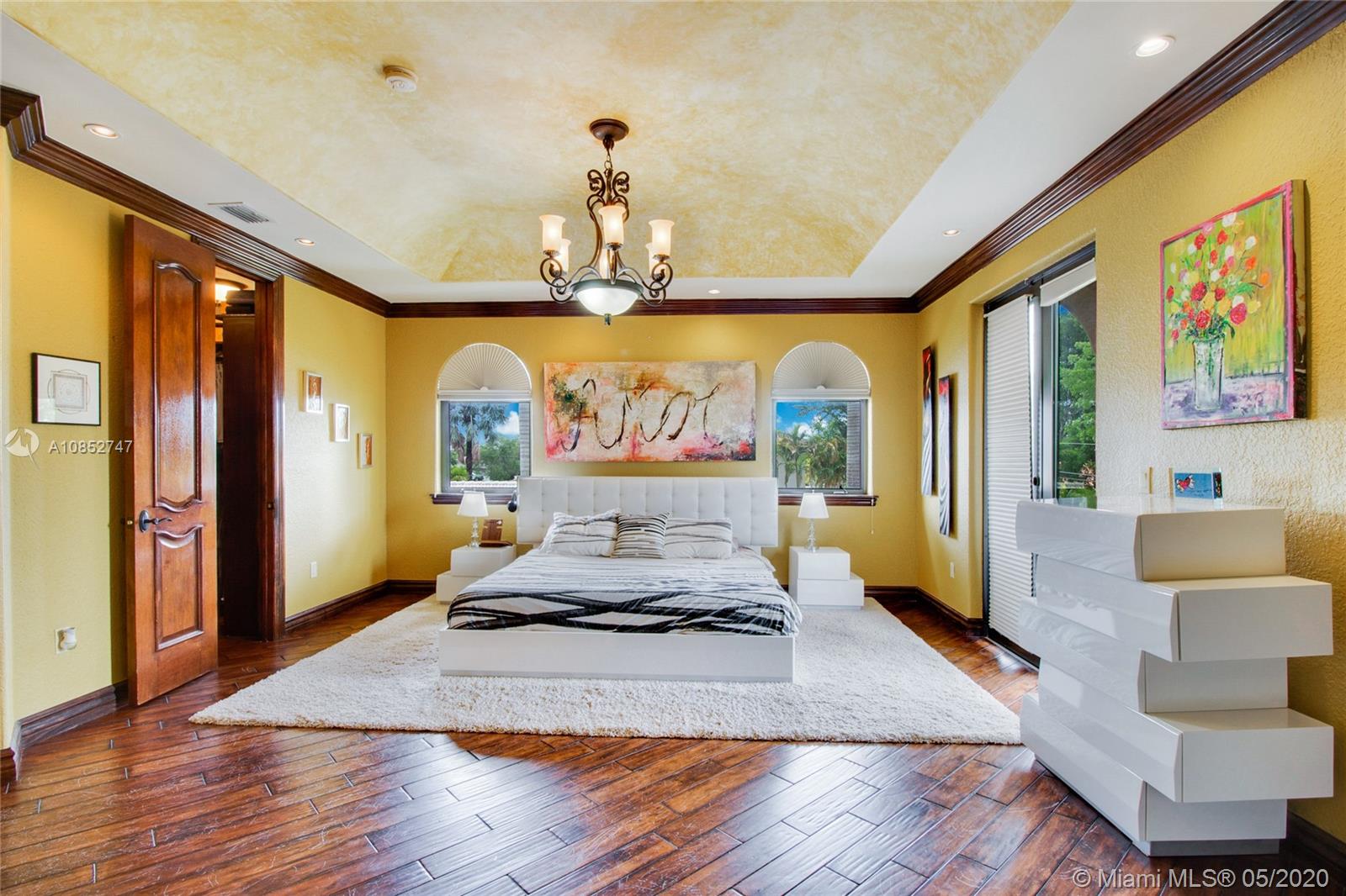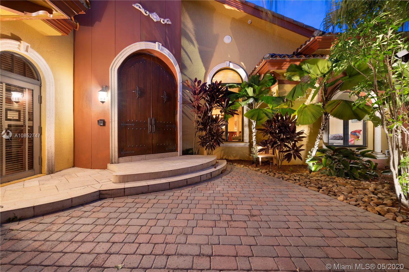 Beautiful, highly upgraded and move-in ready home in sought after Vanderbilt Park-High ceilings-crown molding, custom 10’ solid Mahogany arched doors in picturesque entranceway with stone columns- iron railing spiral staircase.Chef’s kitchen- granite countertops-custom backsplash-high end appliances-huge walk-in pantry, and vibrant stained glass windows/doors.Built-in wet bar-TV entertainment center with indoor/outdoor sound system. All bathrooms upgraded with tile mosaic on walls and natural stone floors. Large walk-in closets with built-ins.All Impact/hurricane doors and windows. Indoor/outdoor security cameras. Wi-Fi enabled alarm system, ACs, entrance swing gate-3 car garage-Architectural landscaping with lighting. Every detail of this house was carefully selected and quality crafted.