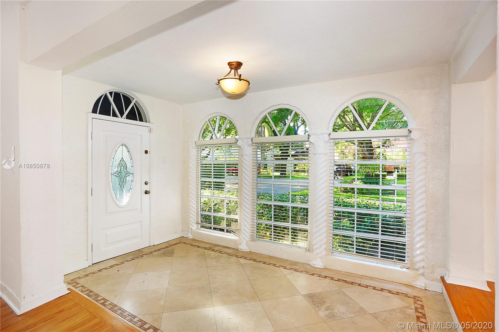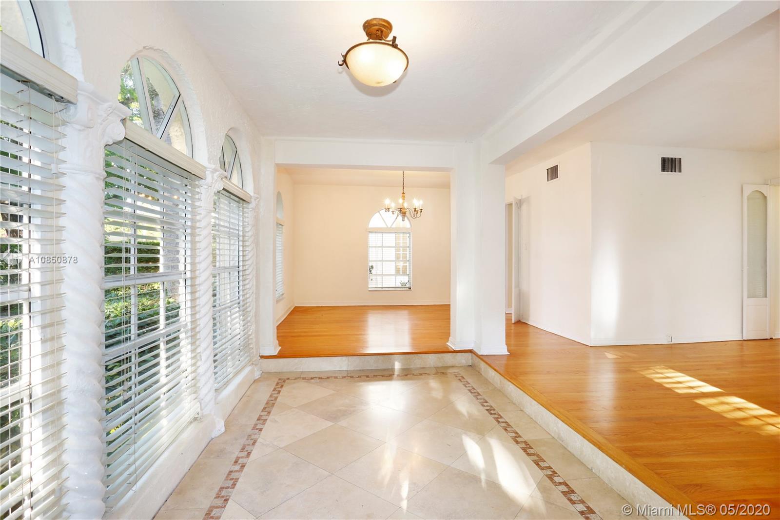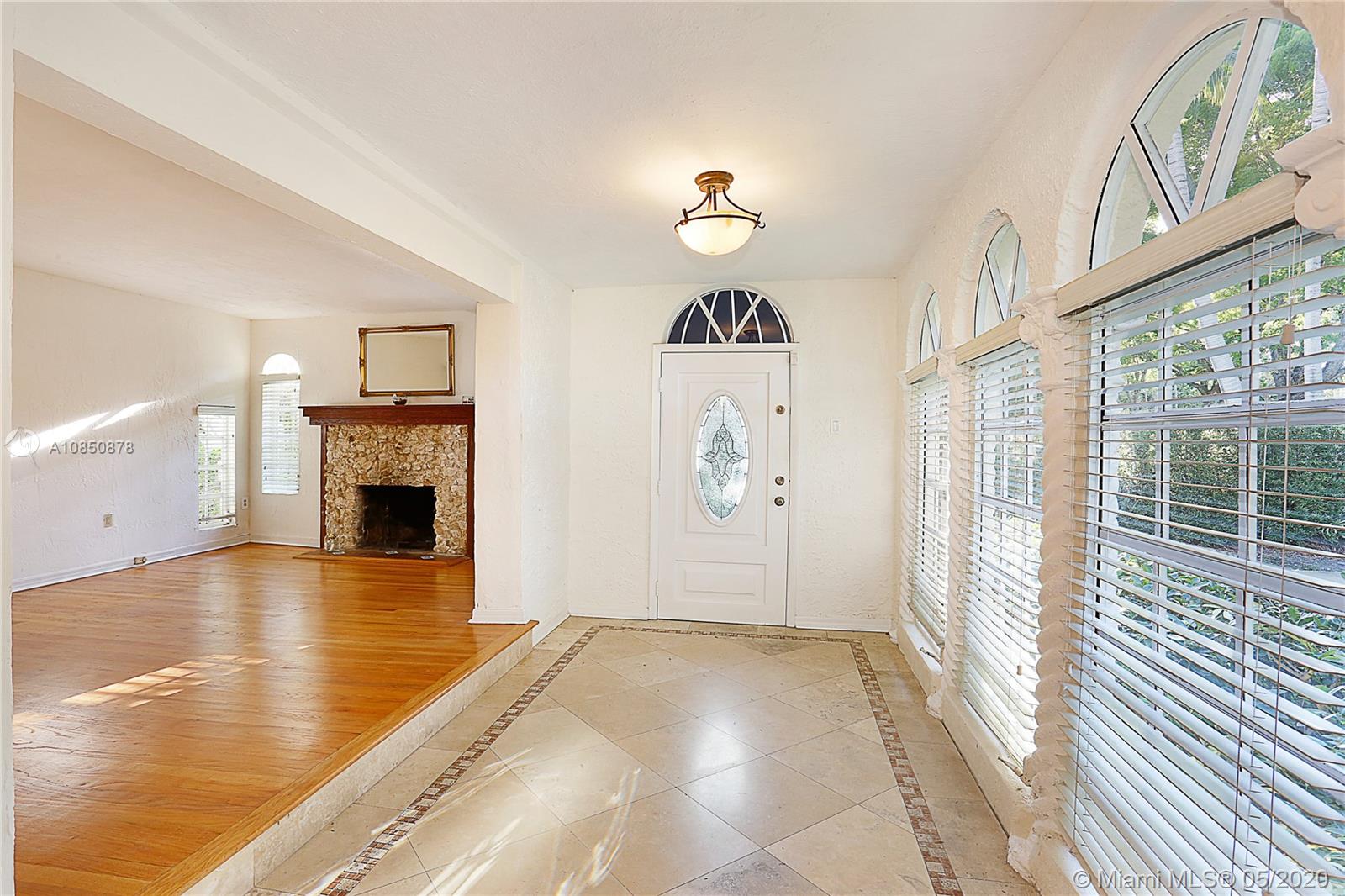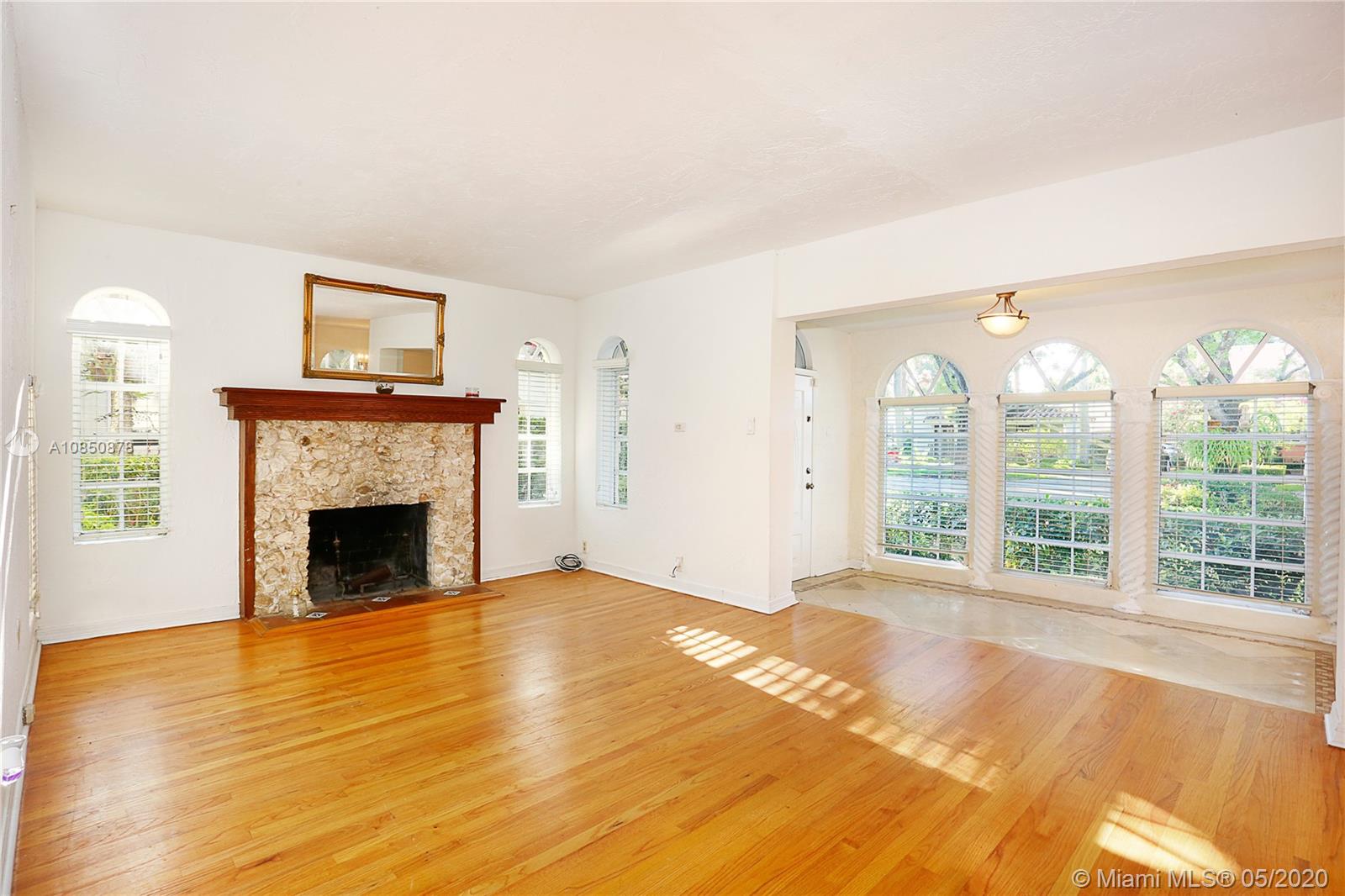 This Coral Gables 1926 Old Spanish style 3 bedroom/2 bathroom home with pool is a fabulous opportunity just 2 blocks from the Granada Golf Course & Country Club on a lovely tree-lined street. With traditional characteristics such as original swirled Corinthian columns in the foyer, French windows, a working fireplace & beautiful hardwood floors give this home a great balance for its modern features. Other features include updated bathrooms, an ample kitchen with s/s appliances, custom built-in closets & a newer roof under warranty. The fenced backyard features a lush tropical garden with a great pool as its focal point, brick pavers, a sizeable covered tiled bar & room for plenty more. This home truly transports you to another era with lots of potential in a great location.