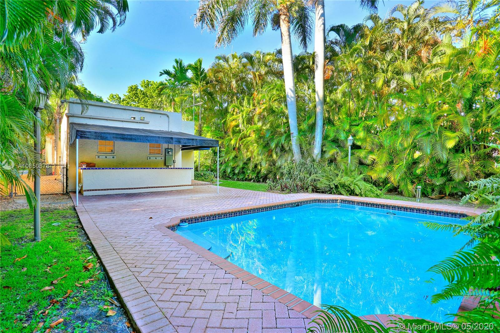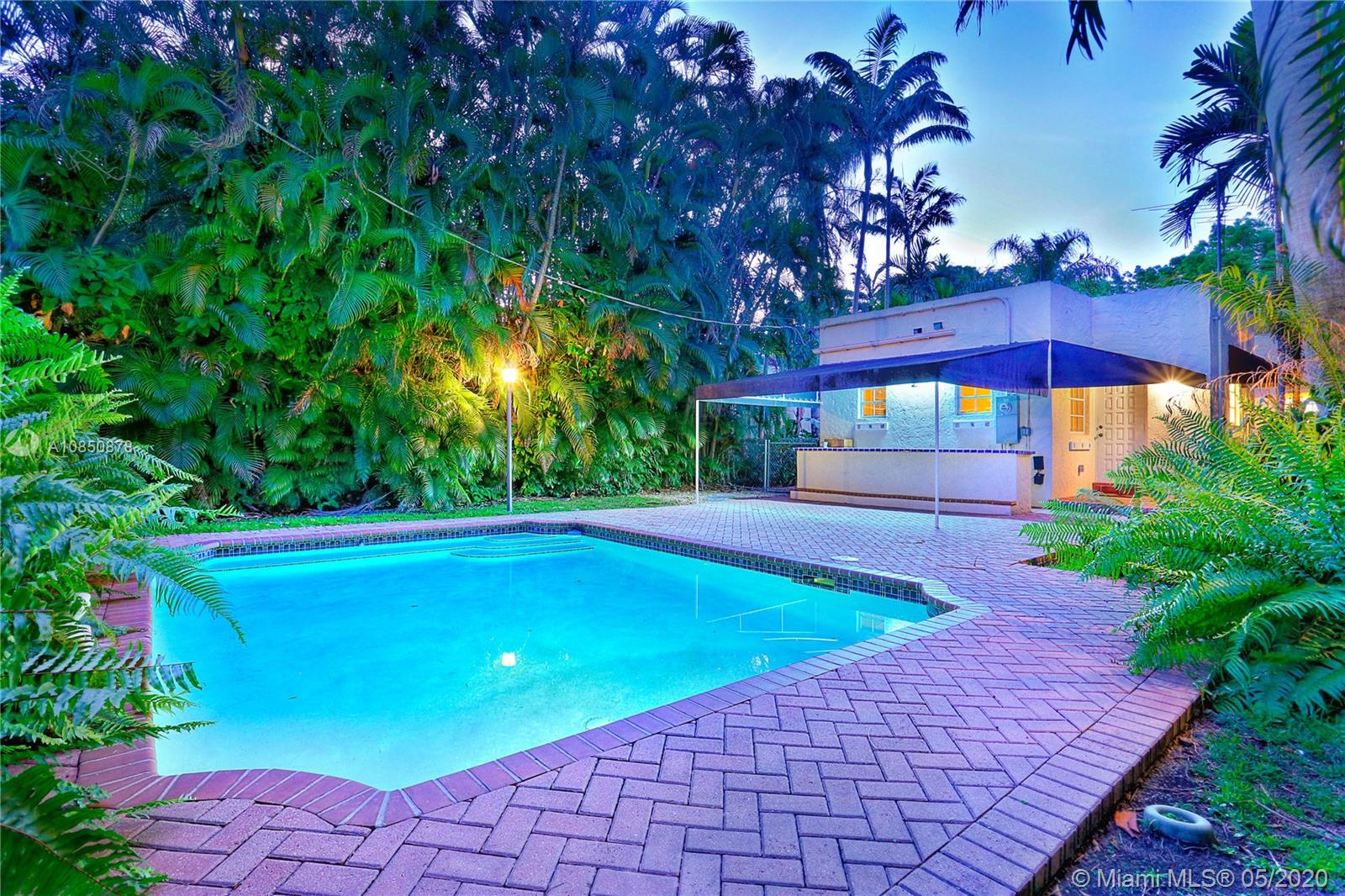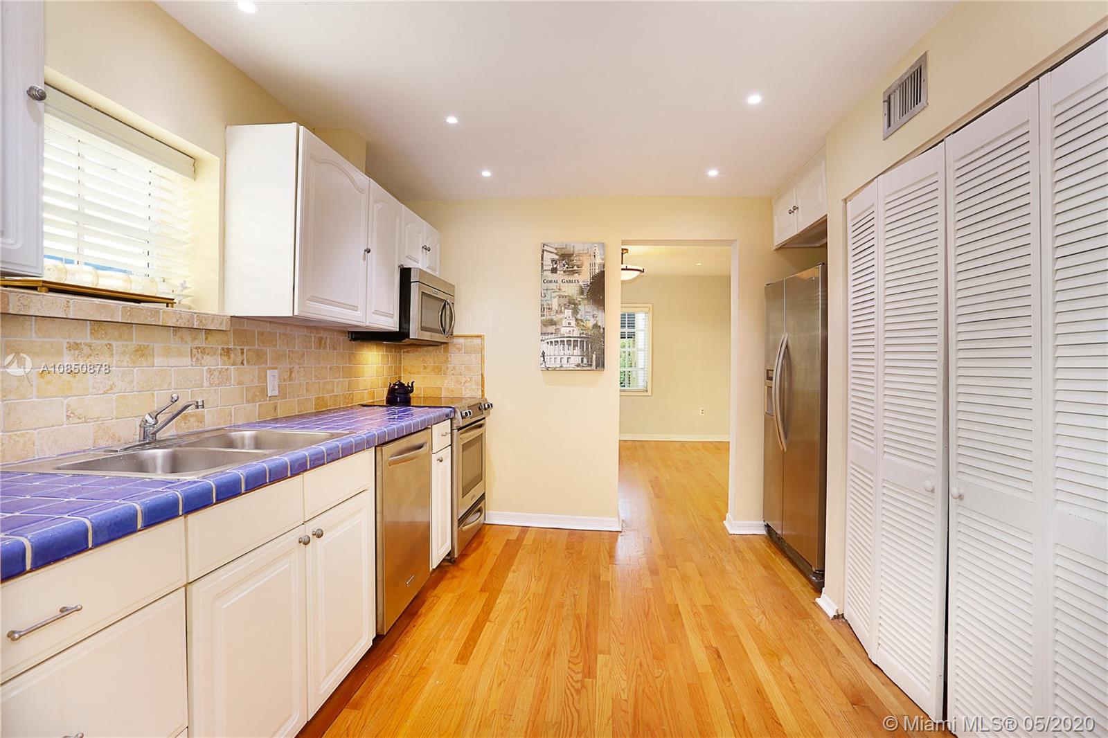 This Coral Gables 1926 Old Spanish style 3 bedroom/2 bathroom home with pool is a fabulous opportunity just 2 blocks from the Granada Golf Course & Country Club on a lovely tree-lined street. With traditional characteristics such as original swirled Corinthian columns in the foyer, French windows, a working fireplace & beautiful hardwood floors give this home a great balance for its modern features. Other features include updated bathrooms, an ample kitchen with s/s appliances, custom built-in closets & a newer roof under warranty. The fenced backyard features a lush tropical garden with a great pool as its focal point, brick pavers, a sizeable covered tiled bar & room for plenty more. This home truly transports you to another era with lots of potential in a great location.