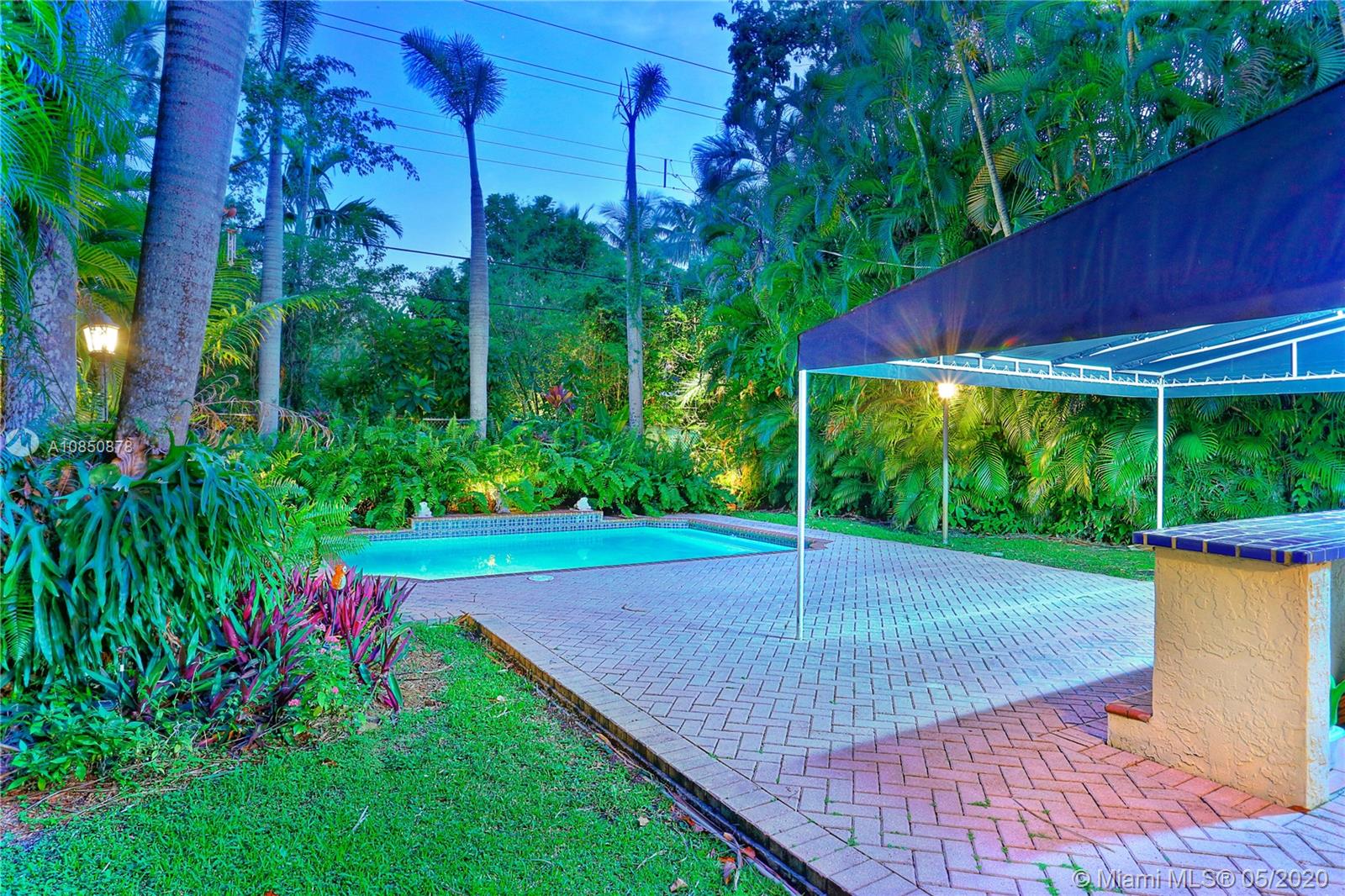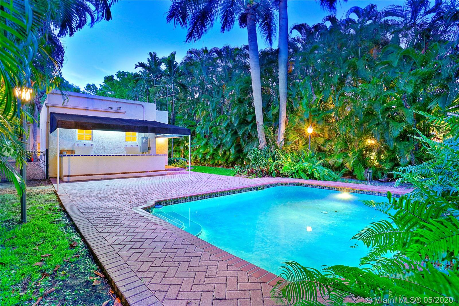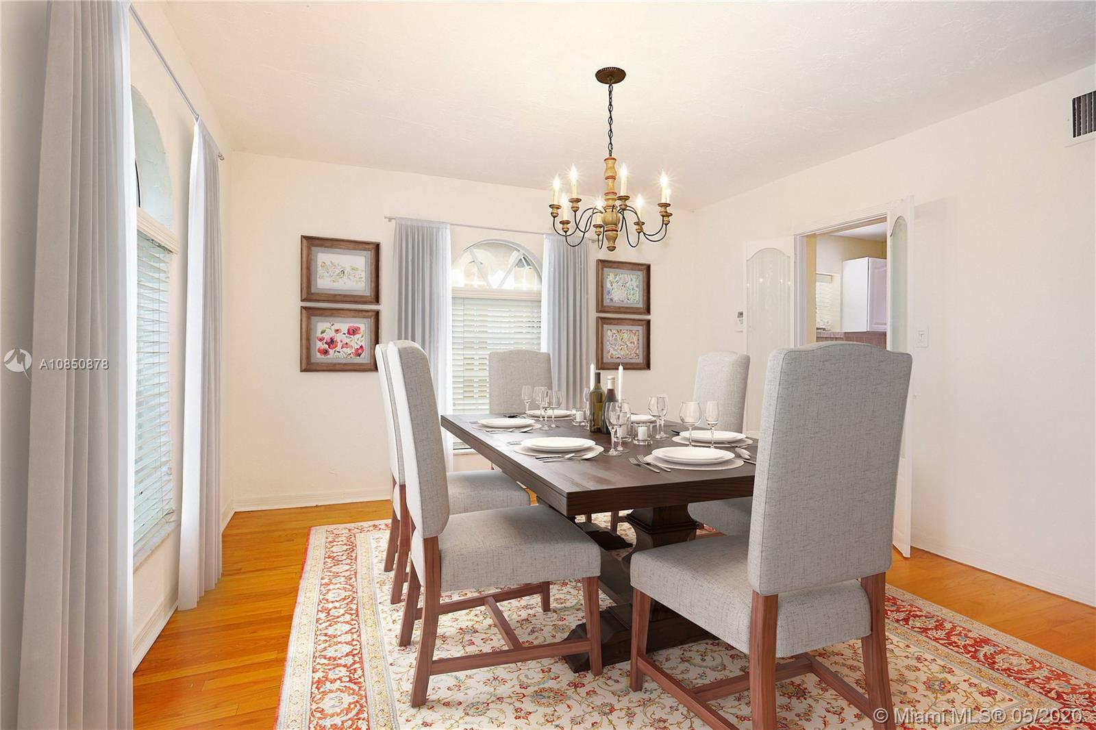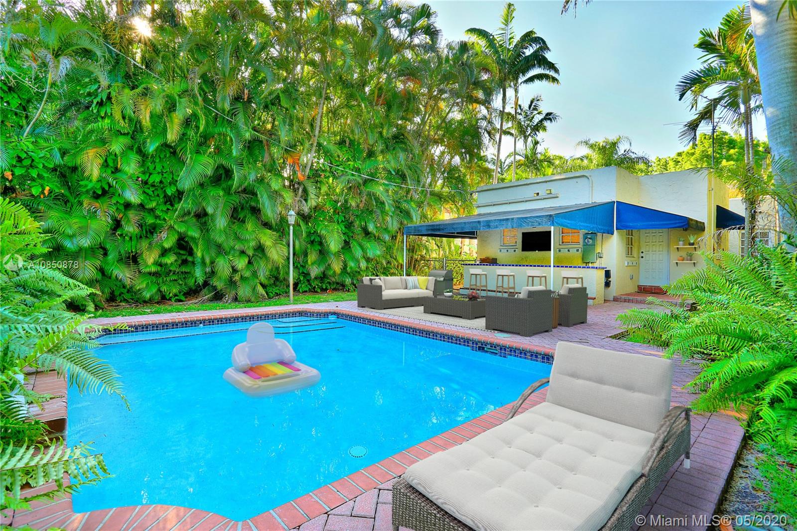 This Coral Gables 1926 Old Spanish style 3 bedroom/2 bathroom home with pool is a fabulous opportunity just 2 blocks from the Granada Golf Course & Country Club on a lovely tree-lined street. With traditional characteristics such as original swirled Corinthian columns in the foyer, French windows, a working fireplace & beautiful hardwood floors give this home a great balance for its modern features. Other features include updated bathrooms, an ample kitchen with s/s appliances, custom built-in closets & a newer roof under warranty. The fenced backyard features a lush tropical garden with a great pool as its focal point, brick pavers, a sizeable covered tiled bar & room for plenty more. This home truly transports you to another era with lots of potential in a great location.
