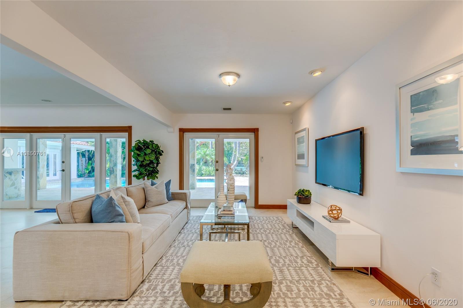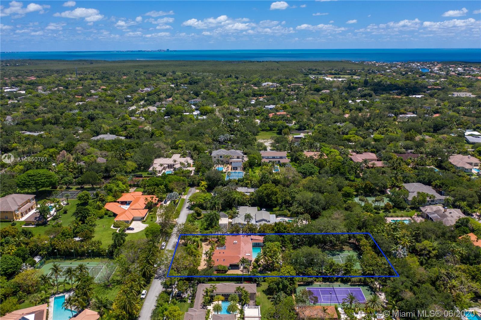 Enjoy a relaxed luxury lifestyle in this Pinecrest family oasis on a deep, private & lushly landscaped acre on a fabulous no-through street. This is the open floor plan you’ve been searching for w effortless flow between living, dining & family rooms & views of the pool & garden thru an expanse of French doors. A fireplace & sky lights add to the warmth & ambiance. This home was fully renovated in 2000 to include new plumbing, stunning travertine floors, an office + great kitchen w granite counters & huge butler’s pantry w extra frig & storage. The split floor plan has 2 masters w custom closets, built-ins and baths w jacuzzi’s. The quintessential entertainer’s dream w/ heated pool, covered patio, lit tennis court, koi pond, wet bar, bbq & fruit trees. New roof 2019, all Pinecrest schools.