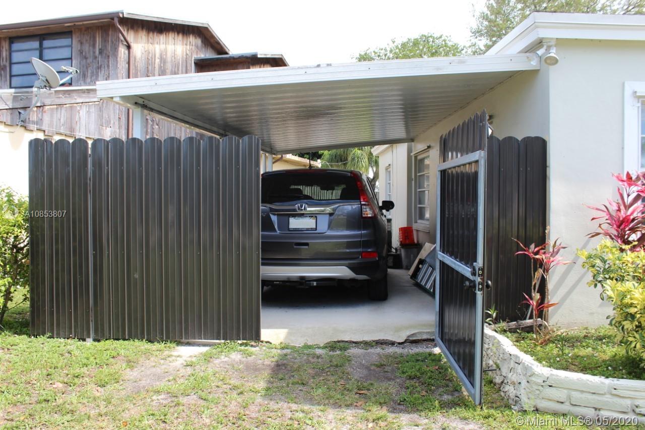 Welcoming and bright North Miami Beach single family home with a desirable split floor plan. 4 bedrooms, 2 bathrooms gem on an oversize (8,900+ sq.ft.) corner lot with plenty room for a pool and an addition. Newly renovated kitchen with new stainless steel appliances, granite countertops, and wood cabinetry. Also featuring tile throughout the house and hurricane panels for all windows and doors. 1 car open garage with brand new garage door, replaced 6 months ago. Newer a/c, new water heater, new gutters and new washer/dryer combo. Storage outside shed stays, securely placed on a slab of concrete. Complete sprinkler system throughout. Great income producing property,can be slip into a 1/1, 3/1. Master bedroom has a private side entrance.