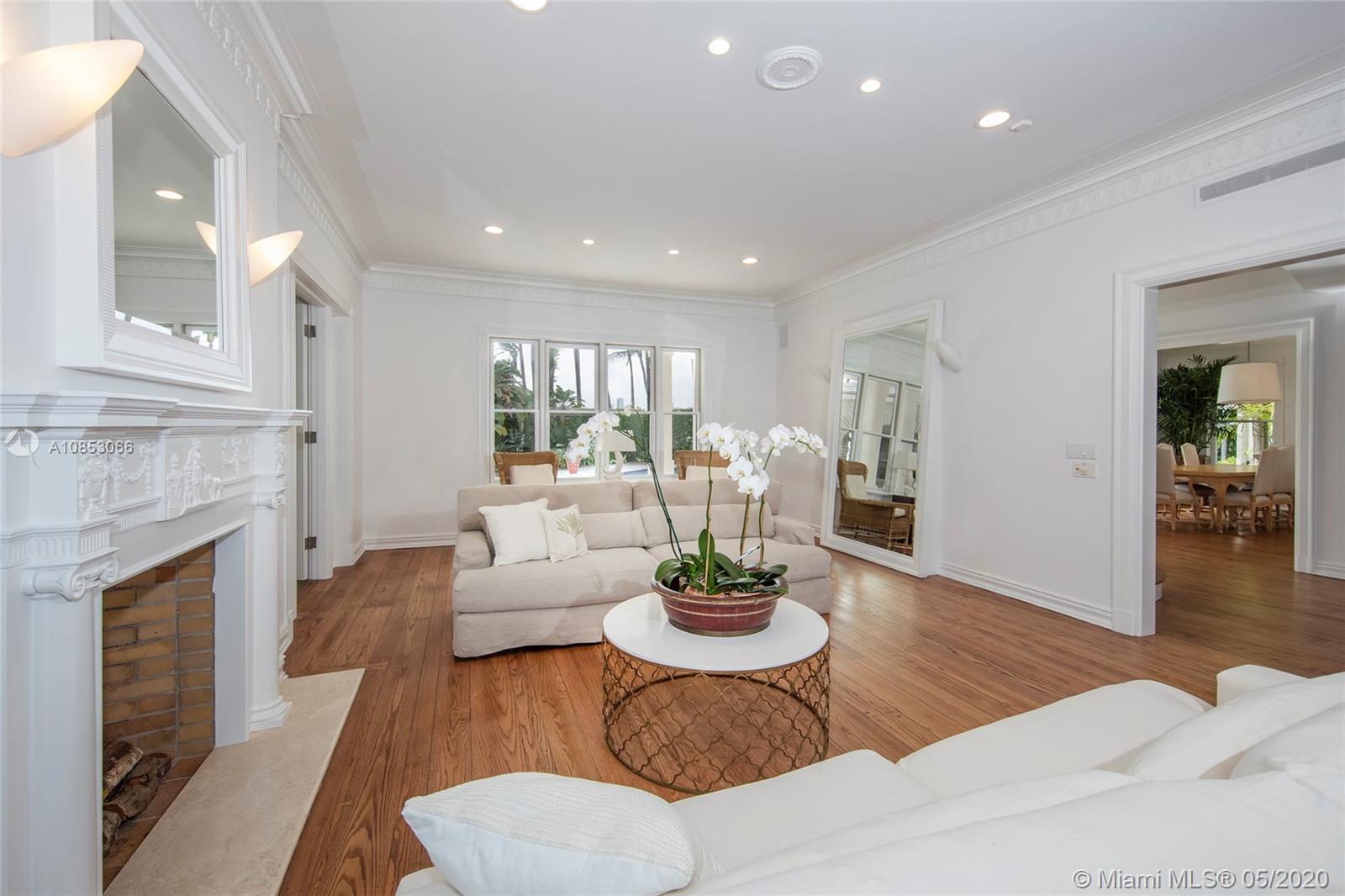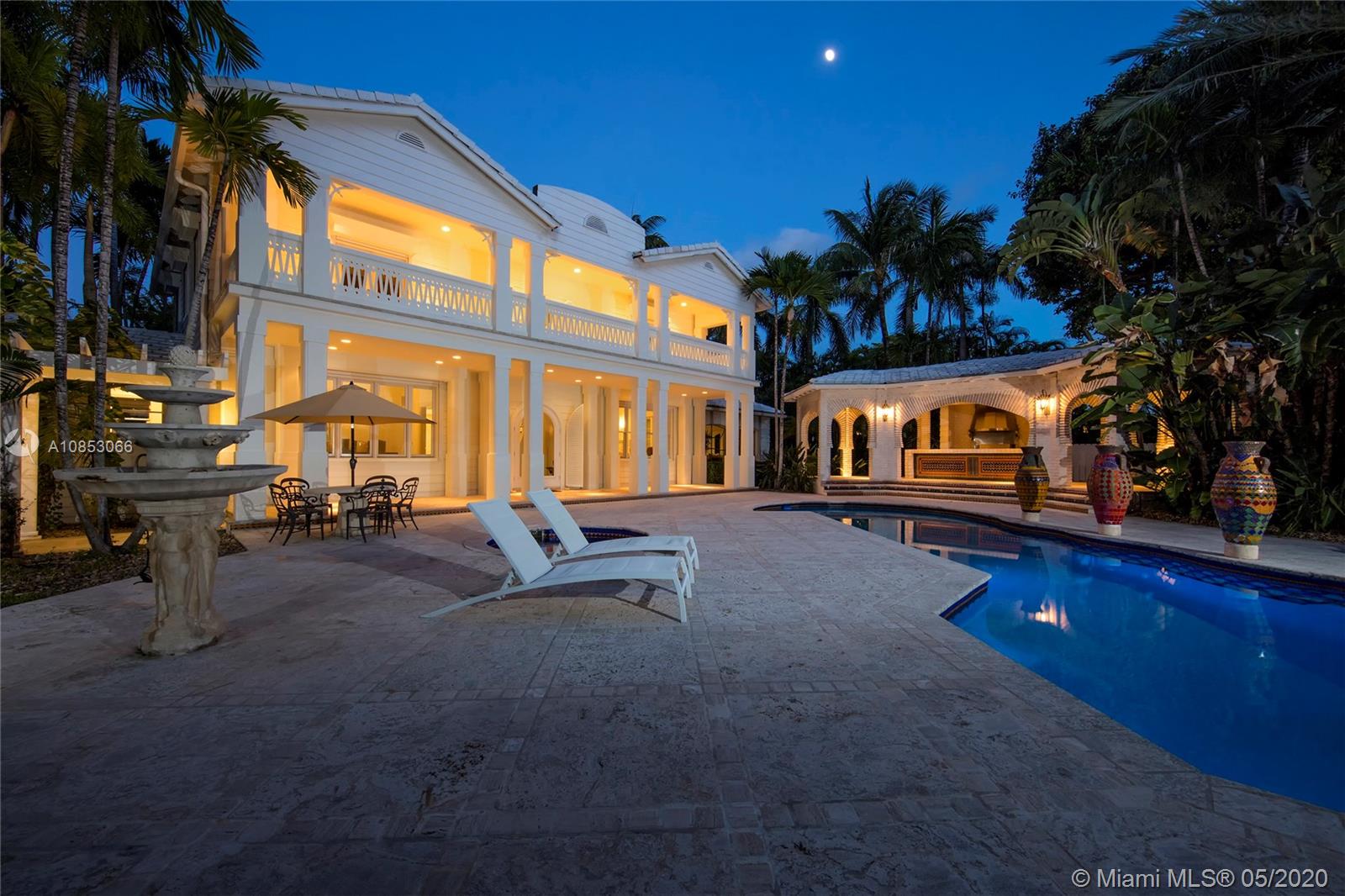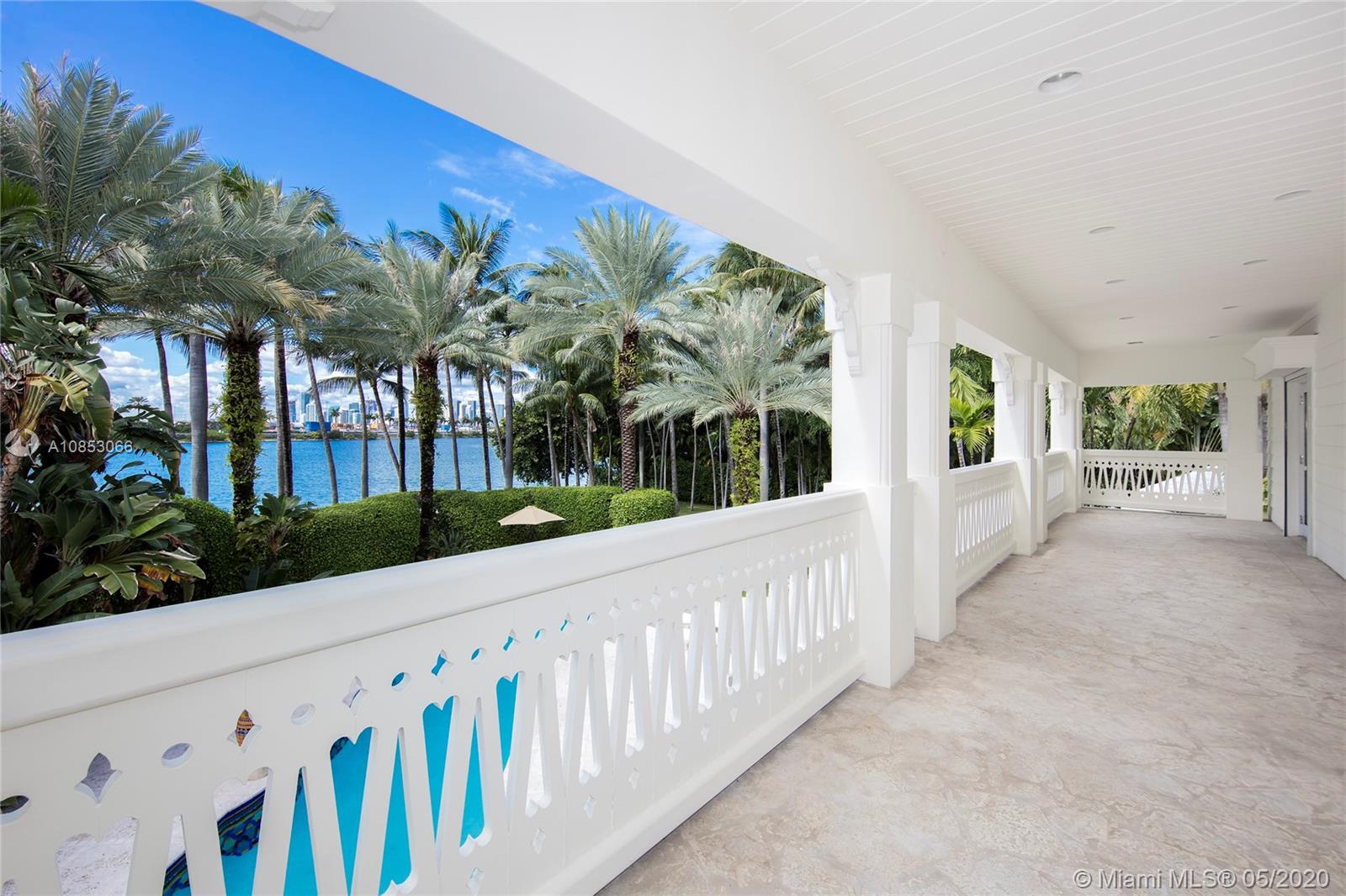 Located on exclusive guard-gated Star Island, this magnificent Bayfront estate rests upon an impressive 58,332 SQ FT corner lot w/240’ of sparkling waterfront & unobstructed views to Biscayne Bay & the Downtown Miami skyline. The estate boasts a beautiful 2-story, 3BR/6+1BA Floridian-style villa w/open verandas that face the bay, rich hardwood & marble floors, arched doorways, living room w/fireplace, private dining room, graceful piano room & a large kitchen all with water views. At the front of the home is a separate & private 3BR/2+1BA Guest House. The lushly landscaped grounds feature tropical foliage, palms, a resort-style pool/spa, private dock & amazing sunset views. This estate is truly one-of-a-kind. Location, lot size & amenities this residence is like no other on Star Island.
