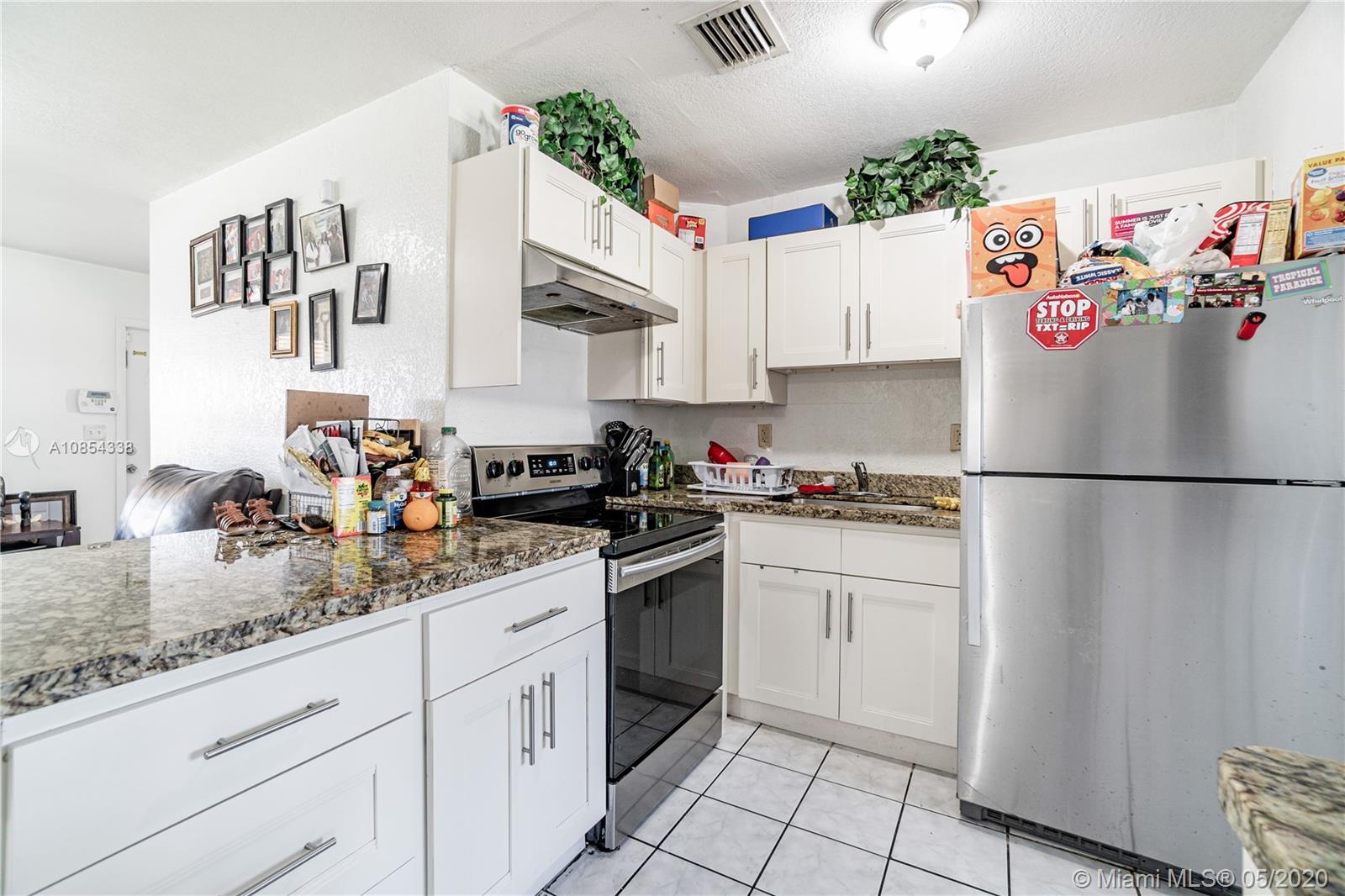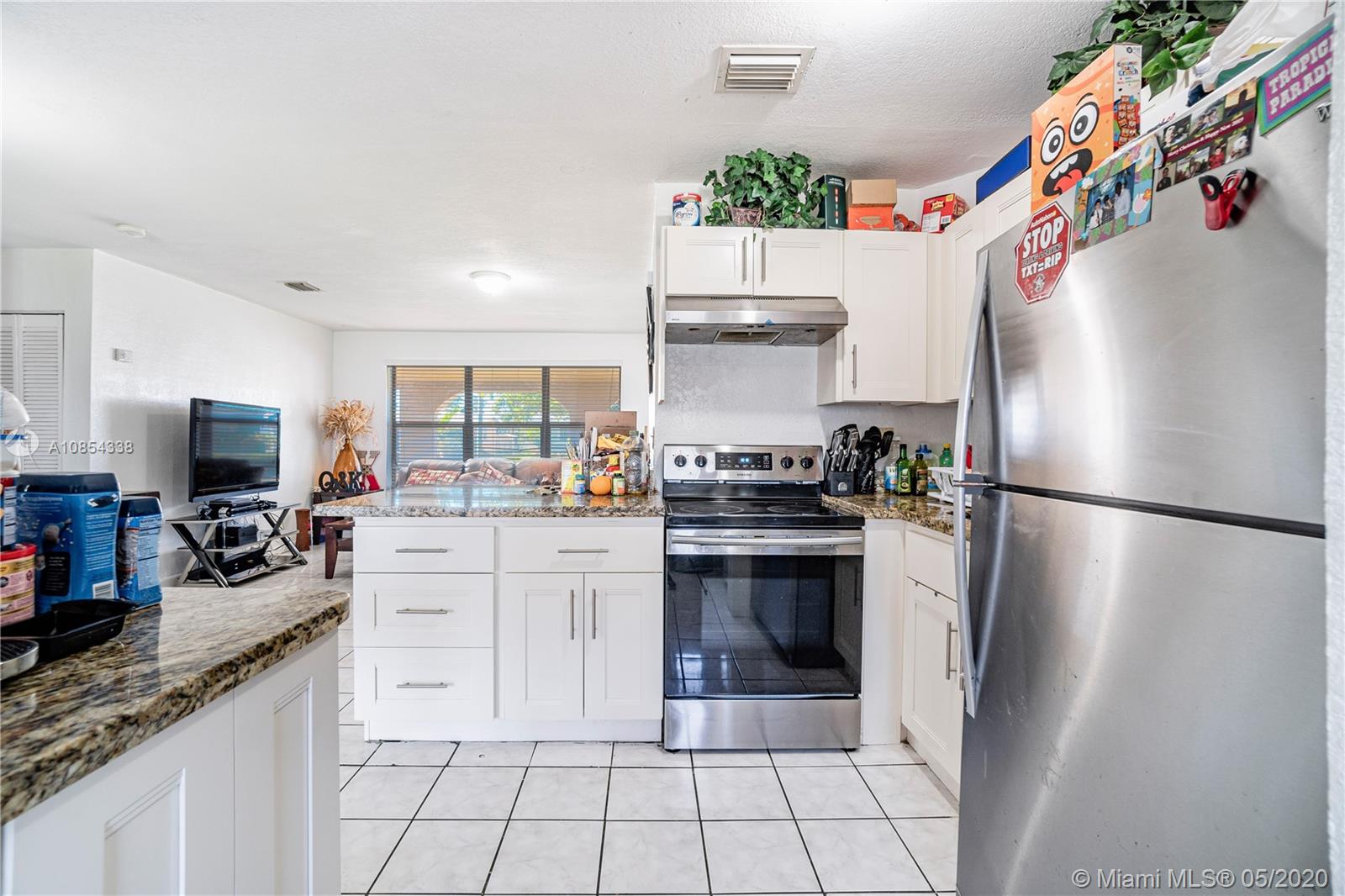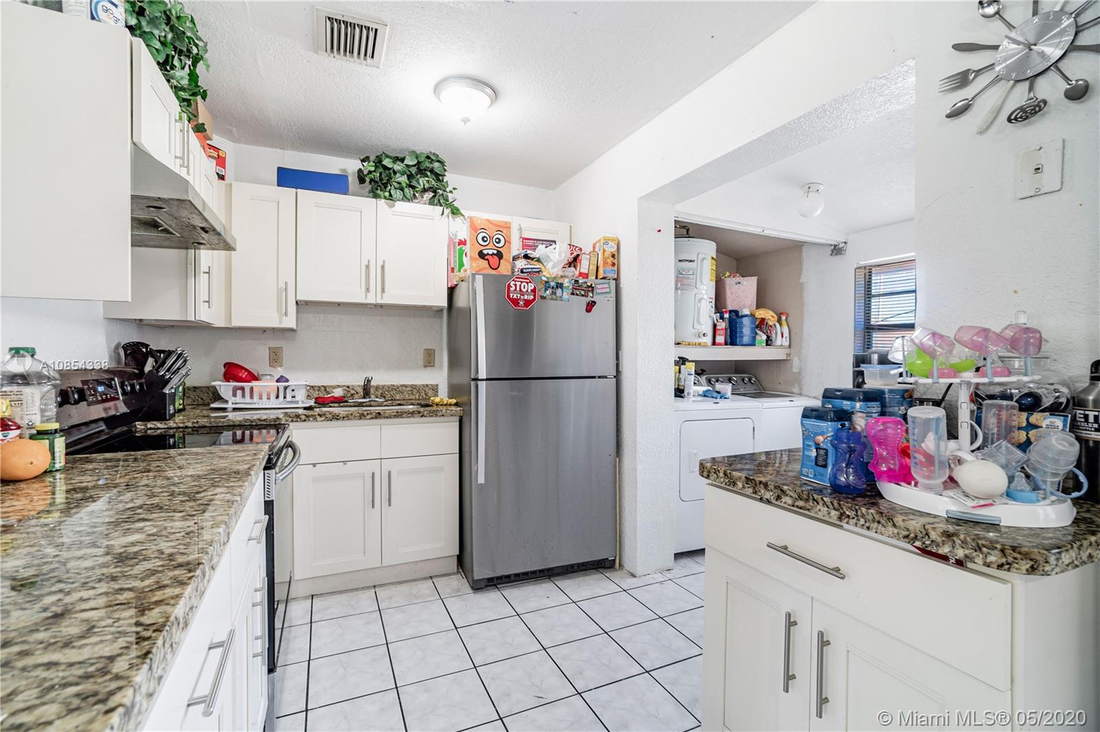 Updated single family home with 3 bedrooms and 2 bathrooms. Covered patio and great space in the backyard for kids or entertainment. Additional concrete patio that can be either painted or titled for more usable outdoor space. Circular driveway and additional parking on the side. Open concept kitchen updated with granite countertops, white cabinets with modern and stylish hardware, stainless steel appliances. Washer and dryer with above storage shelving conveniently located in the back of the kitchen. Kitchen is in the back of the house with easy access to backyard. Home has a dining room right next to the kitchen and separate living room. There is ceramic tile throughout the home with laminate floors in the bedrooms. Home is fenced and located close to major highways.