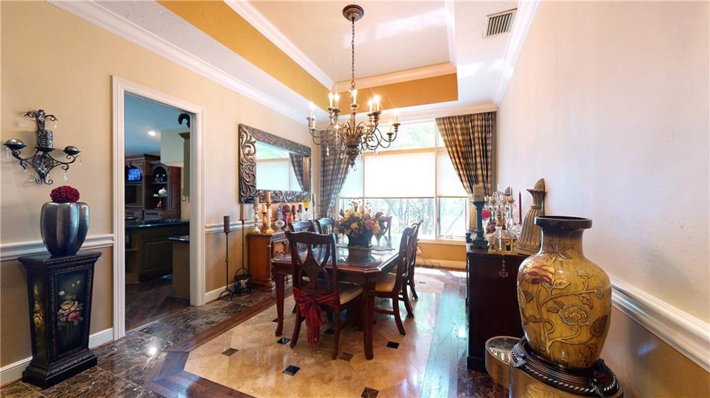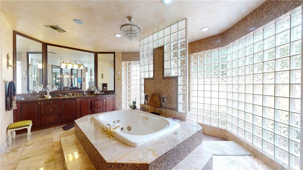 • Característica Interior:BuiltinFeatures, BedroomonMainLevel, BreakfastArea, ClosetCabinetry, DiningArea, SeparateFormalDiningRoom, EatinKitchen, Fireplace, GardenTubRomanTub, KitchenIsland, MainLevelMaster, SittingAreainMaster, Bar, WalkInClosets