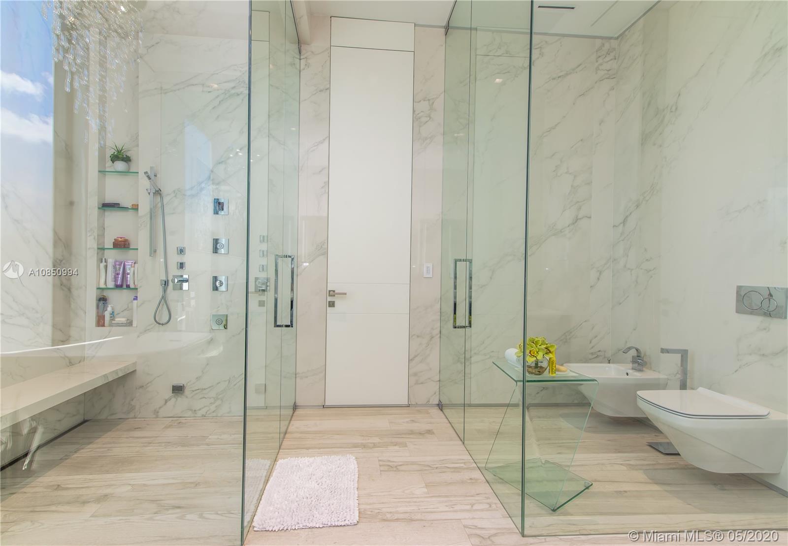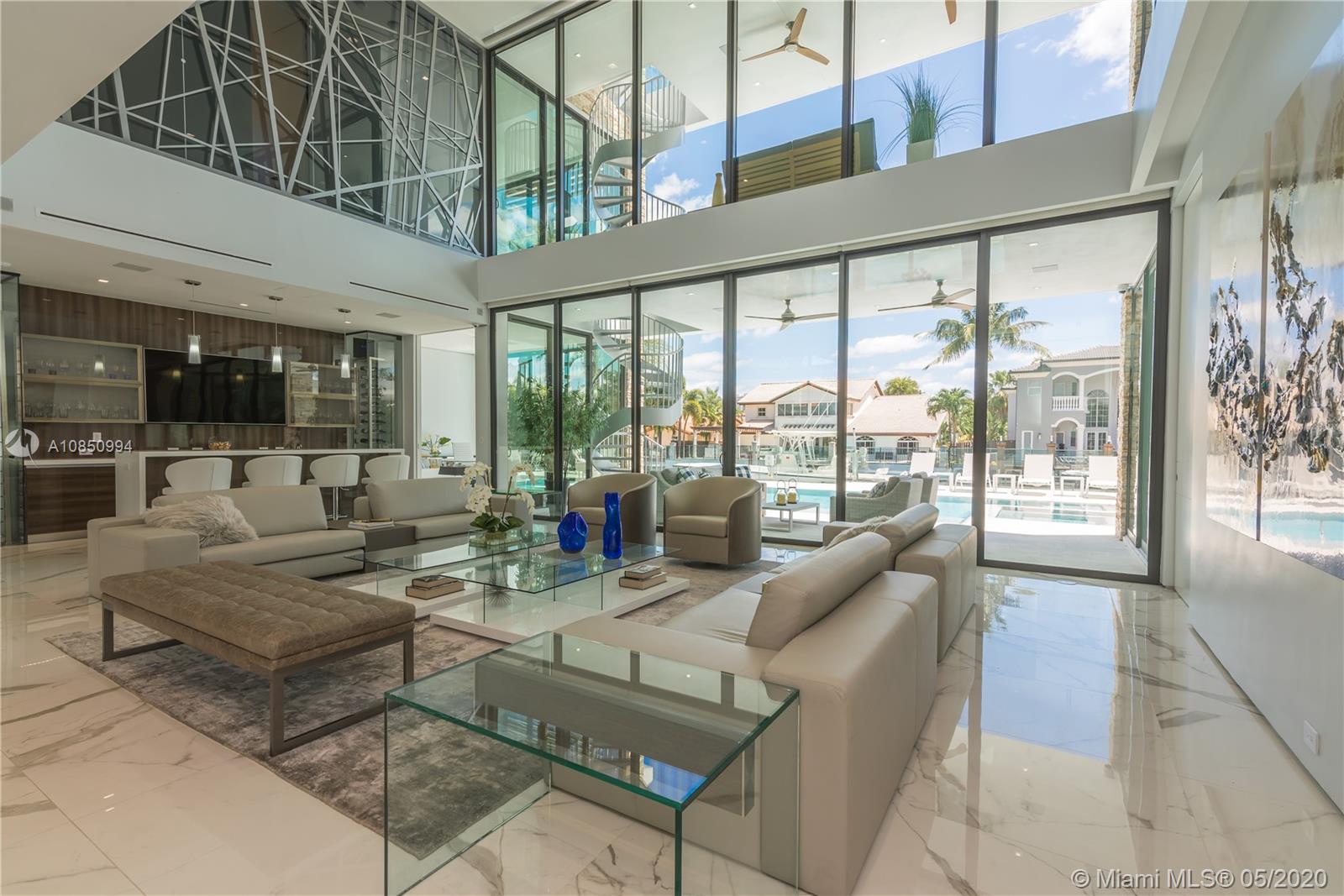 Spectacular Ultra Modern custom-built waterfront home in the upscale community of Eastern Shores. Built 2018. Top-of-the-line line craftsmanship with concrete floors, roof and sun deck. Amazing High ceilings with floor-to-ceiling windows and sliding doors. Entrance has pivot door. Elevator car with glass. Porcelain floors thru-out. 80 kilowatt emergency generator. Home has many full automation features. Electric shades throughout. Built-in bar with floor to ceiling wine cooler. Designer state of the art kitchen with Caesarstone quartz countertops and backsplash w/Antolini black marble slabs. Outdoor patio gazebo features stainless cabinets and appliances w/ barbecue. Large wet edge pool with Spa. Dock up to 80-foot yacht. Spacious Master has a large sitting area with a huge terrace.
