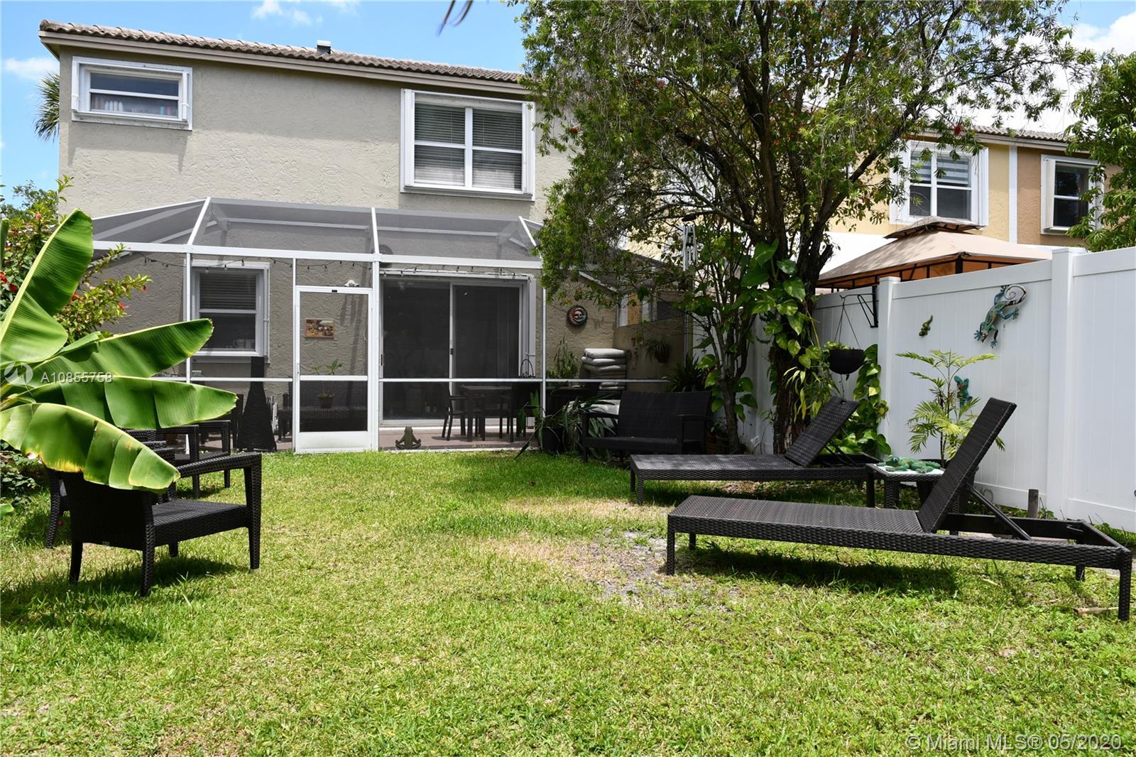 Beautiful corner townhouse in desirable community of Park Crossing in Towngate. Great location in west Pembroke Pines, with easy access to I-75, I-595, Turnpike and Sawgrass Expressway. Property is on an oversized lot with no neighbors behind the large backyard. Home has tile downstairs, laminate floors upstairs, new A/C and the roof was replaced 2-3 years ago.