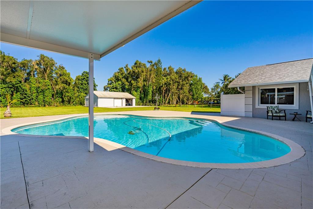 A MUST SEE! Spectacular home in Southwest Ranches with many upgrades and space! The home has been completely remodeled. Gourmet kitchen with granite countertops, custom cabinetry, and stainless steel appliances! Relax in either of two livings rooms and enjoy a cozy night by the fireplace! Large free standing garage, which can be converted into a stable! Impact windows, roof is only two years old, along with new hot water heater, washer and dryer! Custom tiles and flooring throughout the home. Large covered outdoor sitting area overlooking the pool and fenced yard.