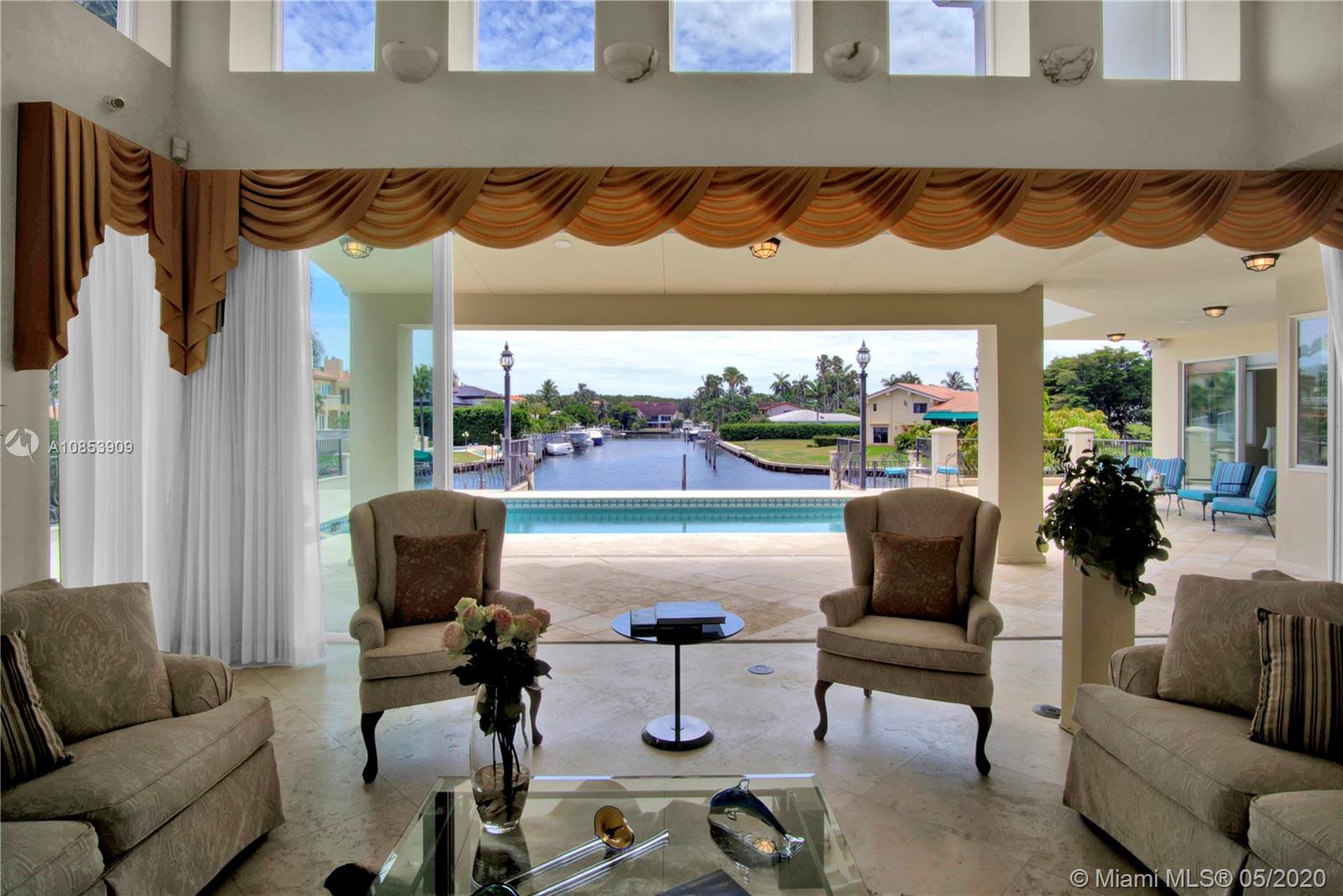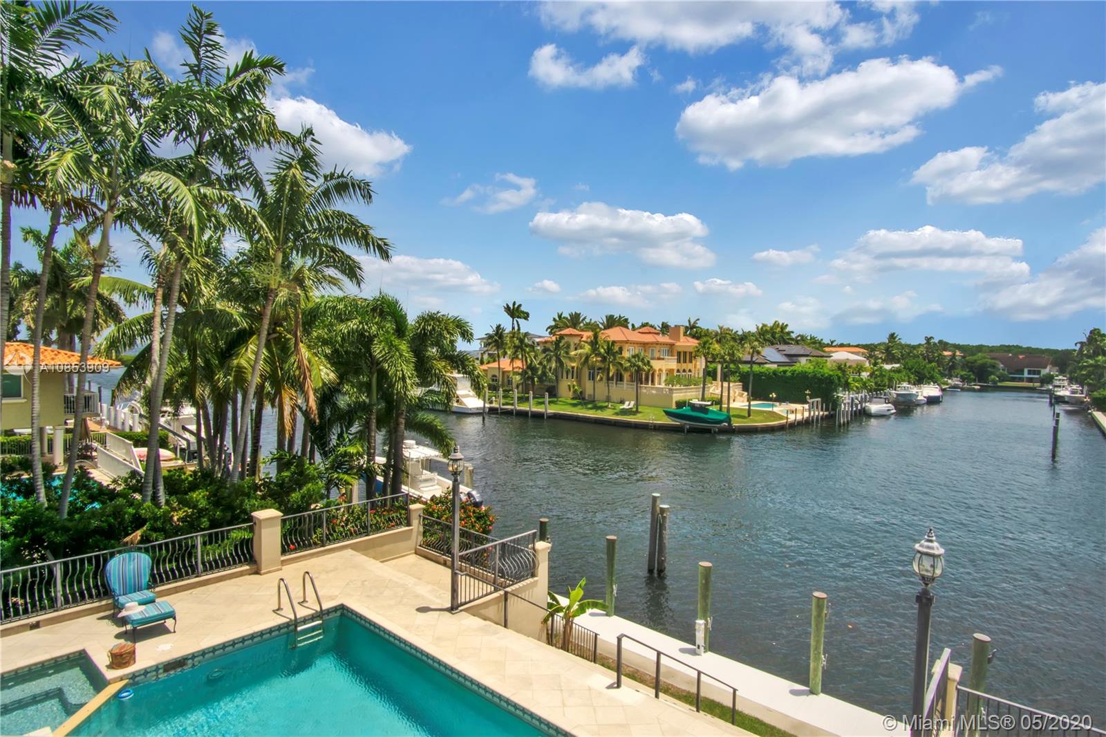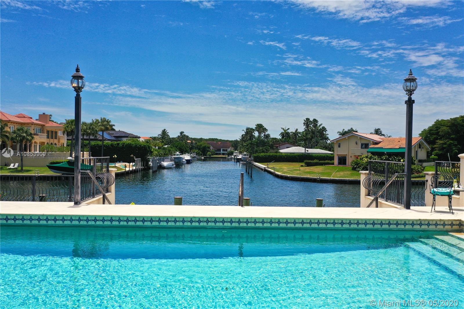 WELCOME TO A TRUE YACHTMAN'S PARADISE! DIRECT OCEAN ACCESS!Luxurious & spacious 4,412 sq ft. home has two stories & an open floor plan, boasts spectacular views from every room taking your breath away. This high elevated waterfront residence is located in the widest and most desired canal at Gables by the Sea, w/a 100-foot dock. Gorgeous volume ceiling in the elegant living room, opens up to the pool deck, spa, canal & it's perfect for bbq w/family & friends.The elegant dining room has a custom designed bar! Integrate breakfast area, kitchen & media room all overlooking the canal & pool.The upstairs master bedroom has its own private office, huge marble bath & spacious walk-in closet & spectacular waterway view of Biscayne Bay! Elevator & Marble floor thru out & Impact Windows-Doors & CCT.