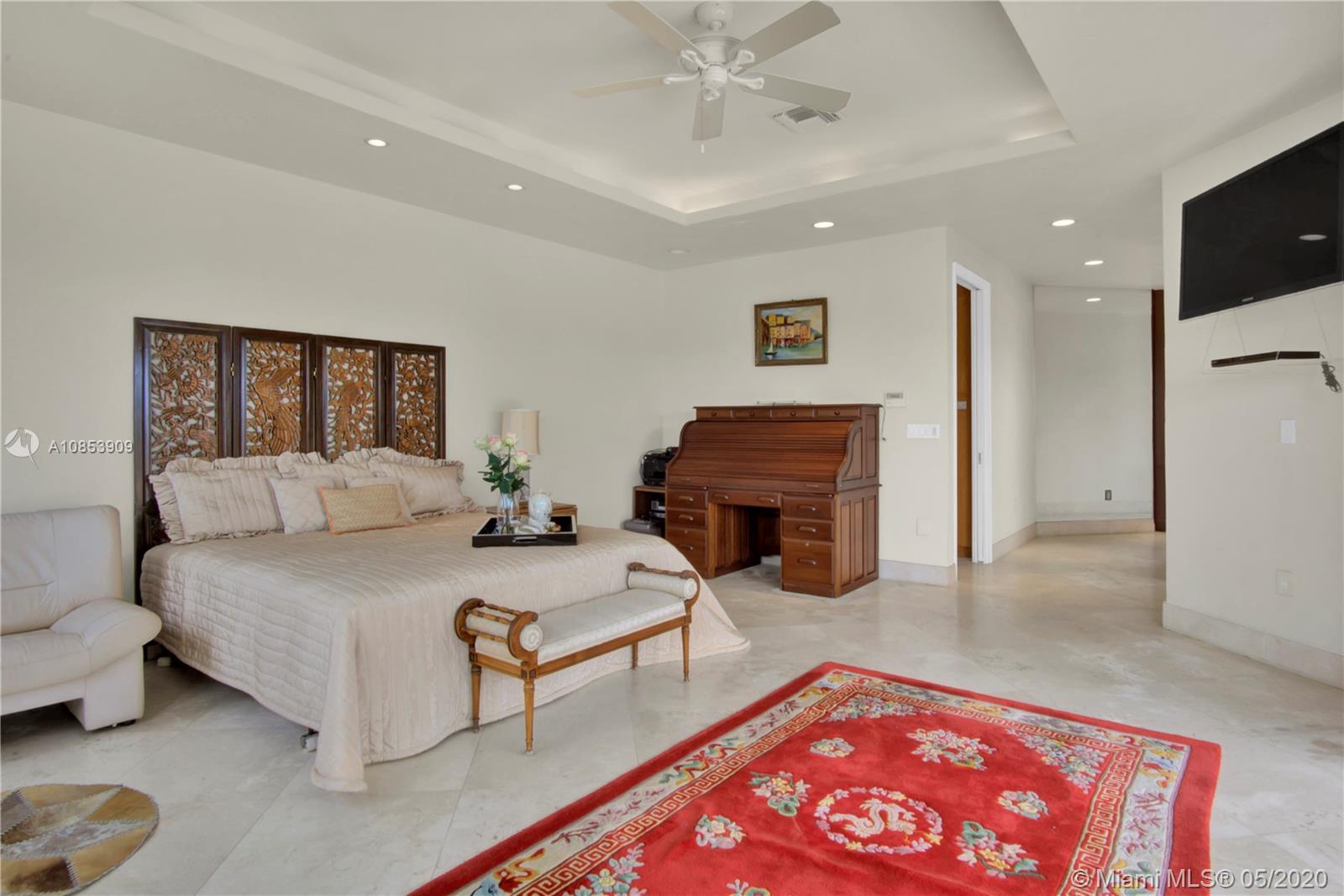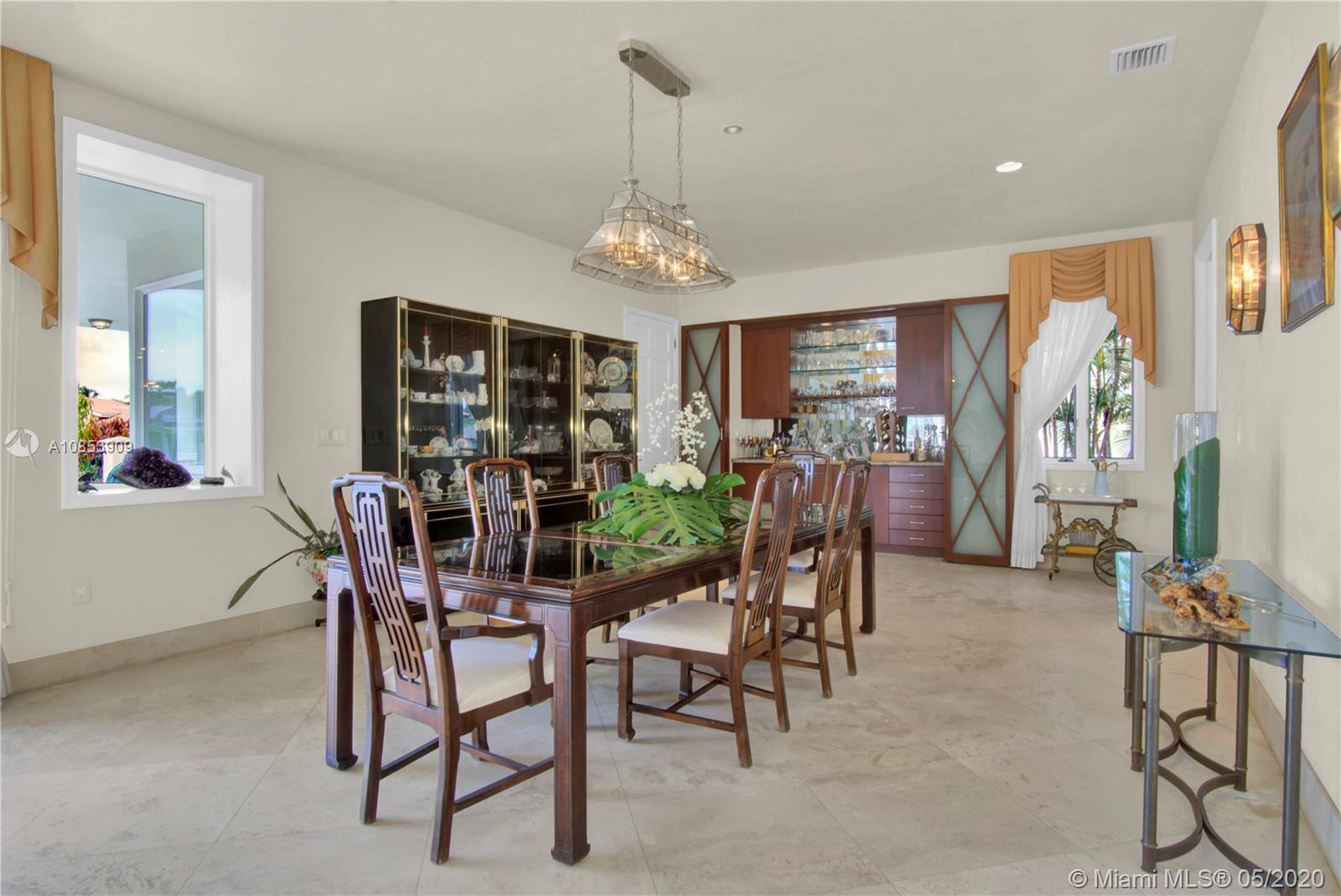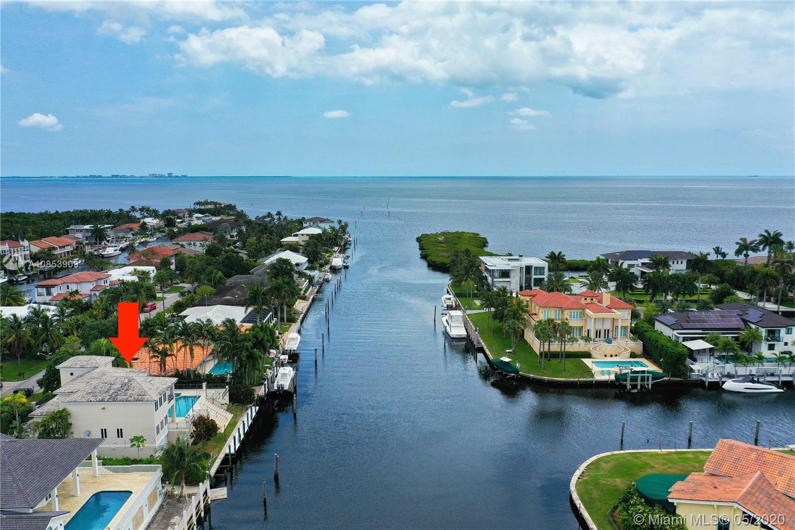 WELCOME TO A TRUE YACHTMAN'S PARADISE! DIRECT OCEAN ACCESS!Luxurious & spacious 4,412 sq ft. home has two stories & an open floor plan, boasts spectacular views from every room taking your breath away. This high elevated waterfront residence is located in the widest and most desired canal at Gables by the Sea, w/a 100-foot dock. Gorgeous volume ceiling in the elegant living room, opens up to the pool deck, spa, canal & it's perfect for bbq w/family & friends.The elegant dining room has a custom designed bar! Integrate breakfast area, kitchen & media room all overlooking the canal & pool.The upstairs master bedroom has its own private office, huge marble bath & spacious walk-in closet & spectacular waterway view of Biscayne Bay! Elevator & Marble floor thru out & Impact Windows-Doors & CCT.