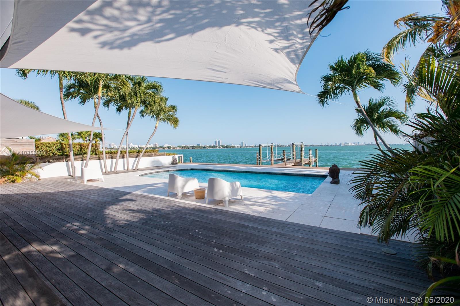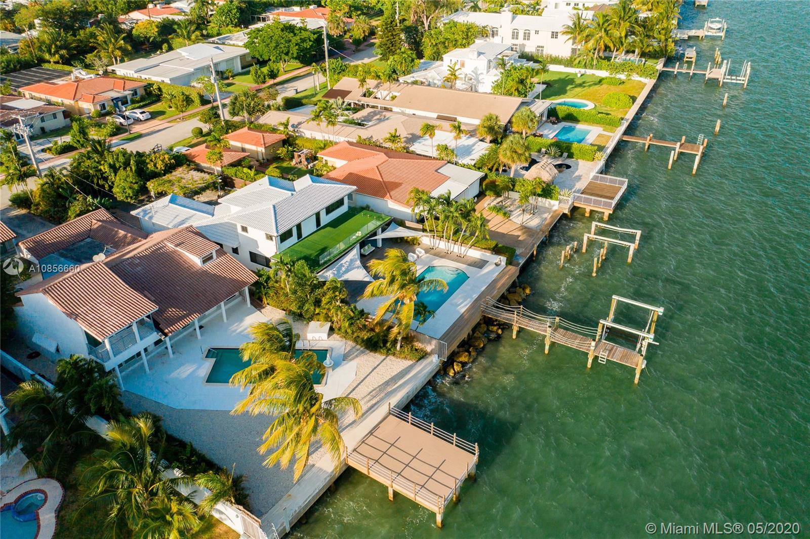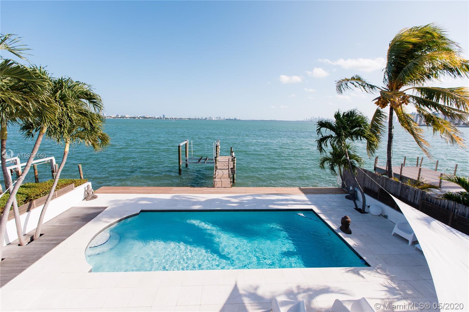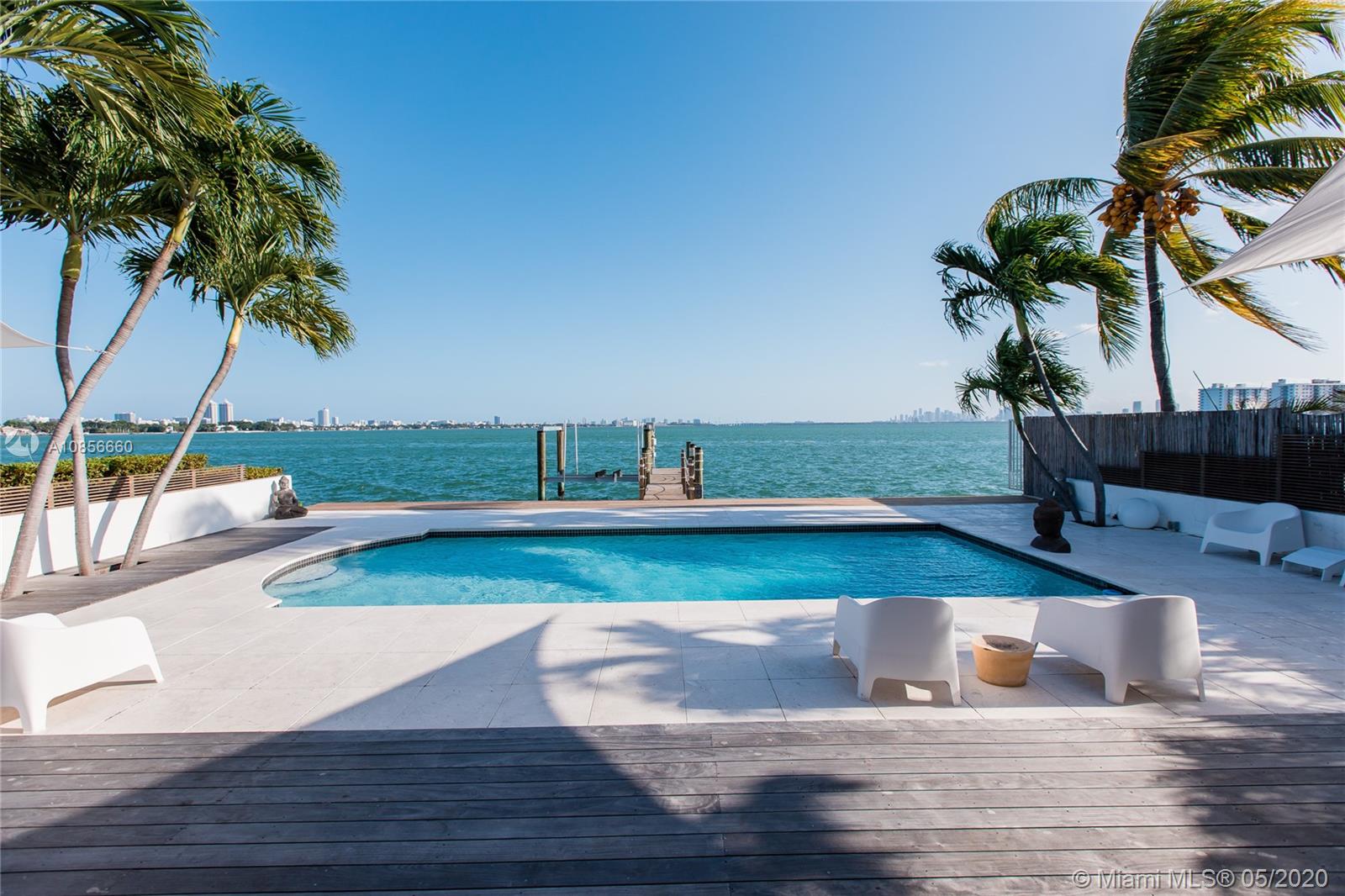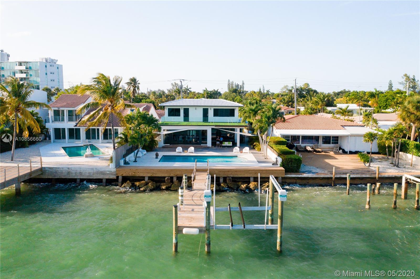 Beautifully renovated home with exceptional direct wide water views of Biscayne bay & Miami skyline, don't miss this opportunity! This two story waterfront home sits on a large lot with brand new dock and boat lift. The layout of main room is open & bright. The large sliding glass windows allows views of the pool & water. A lovely master suite & a second bedroom in the second level leads to a large terrace overlooking the bay. Some of the other features include: designer kitchen, one car covered garage, 2006 new seawall, large ipe wood deck, salt water pool, hurricane proof windows all around.
