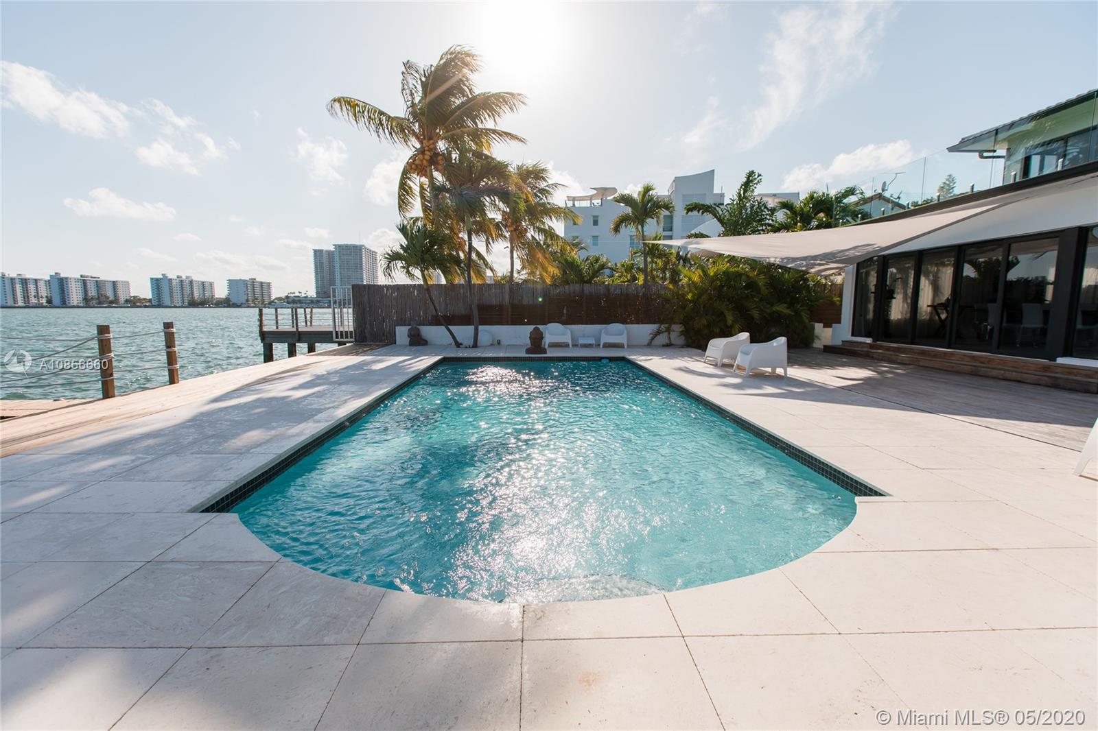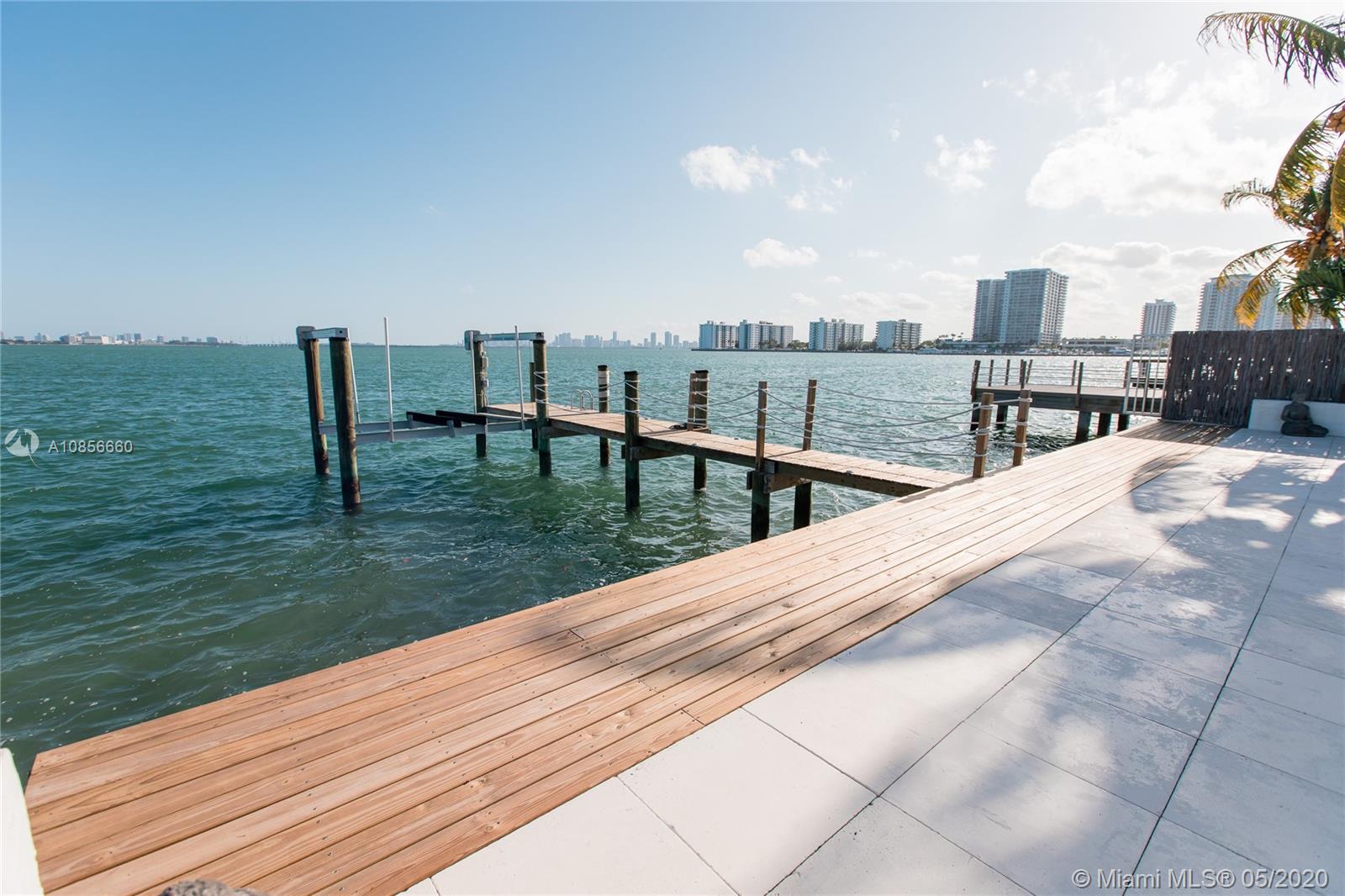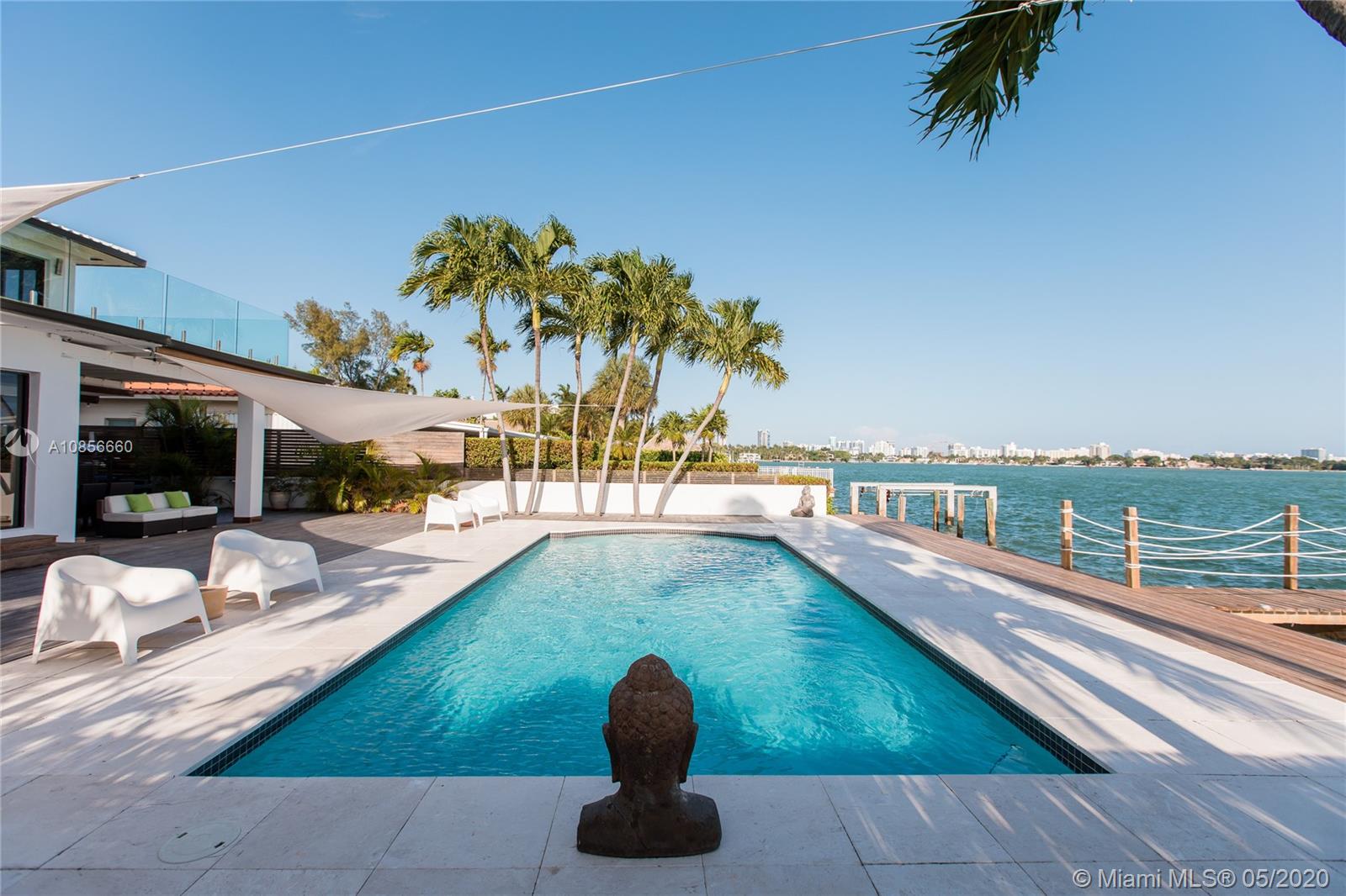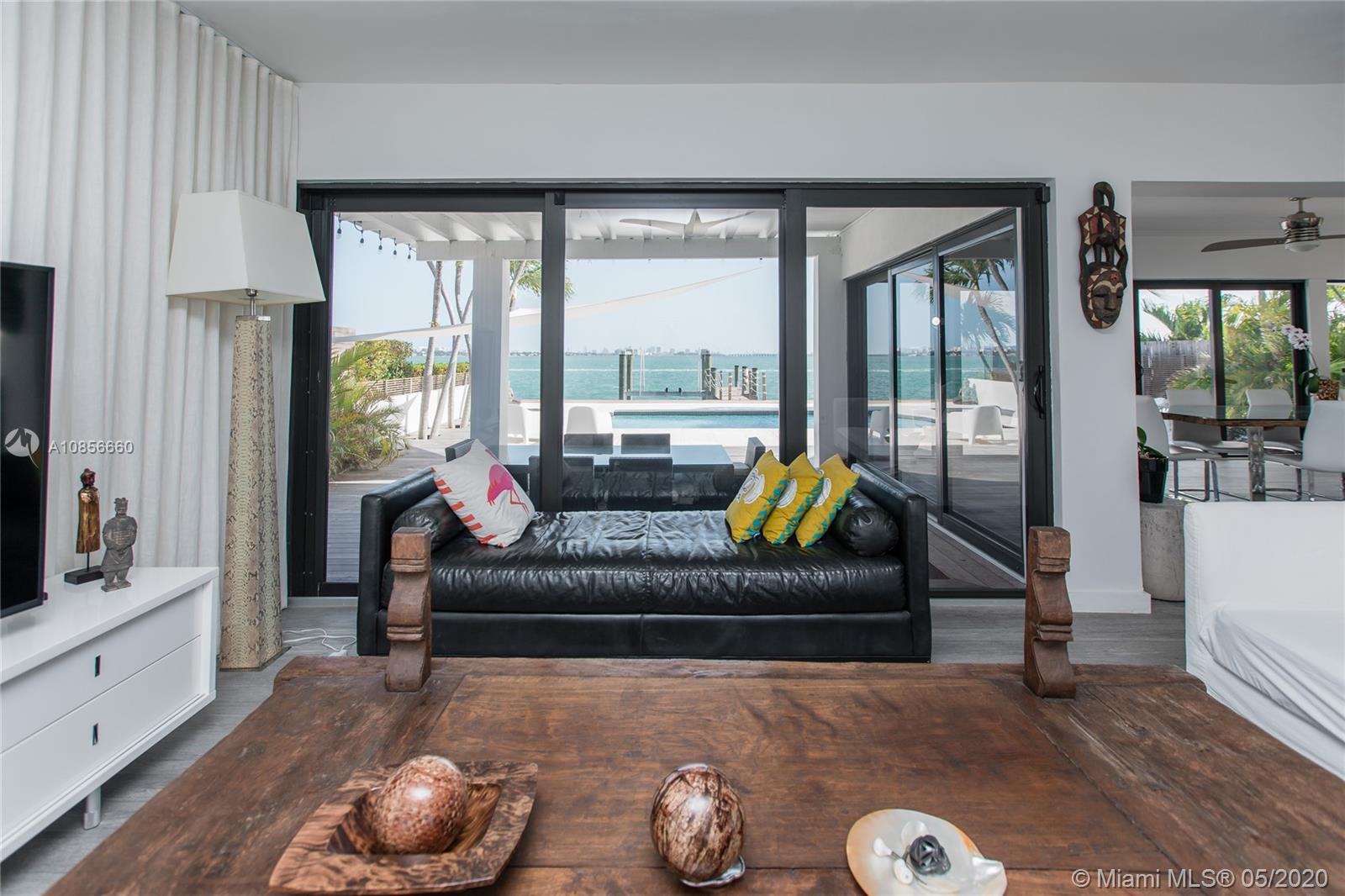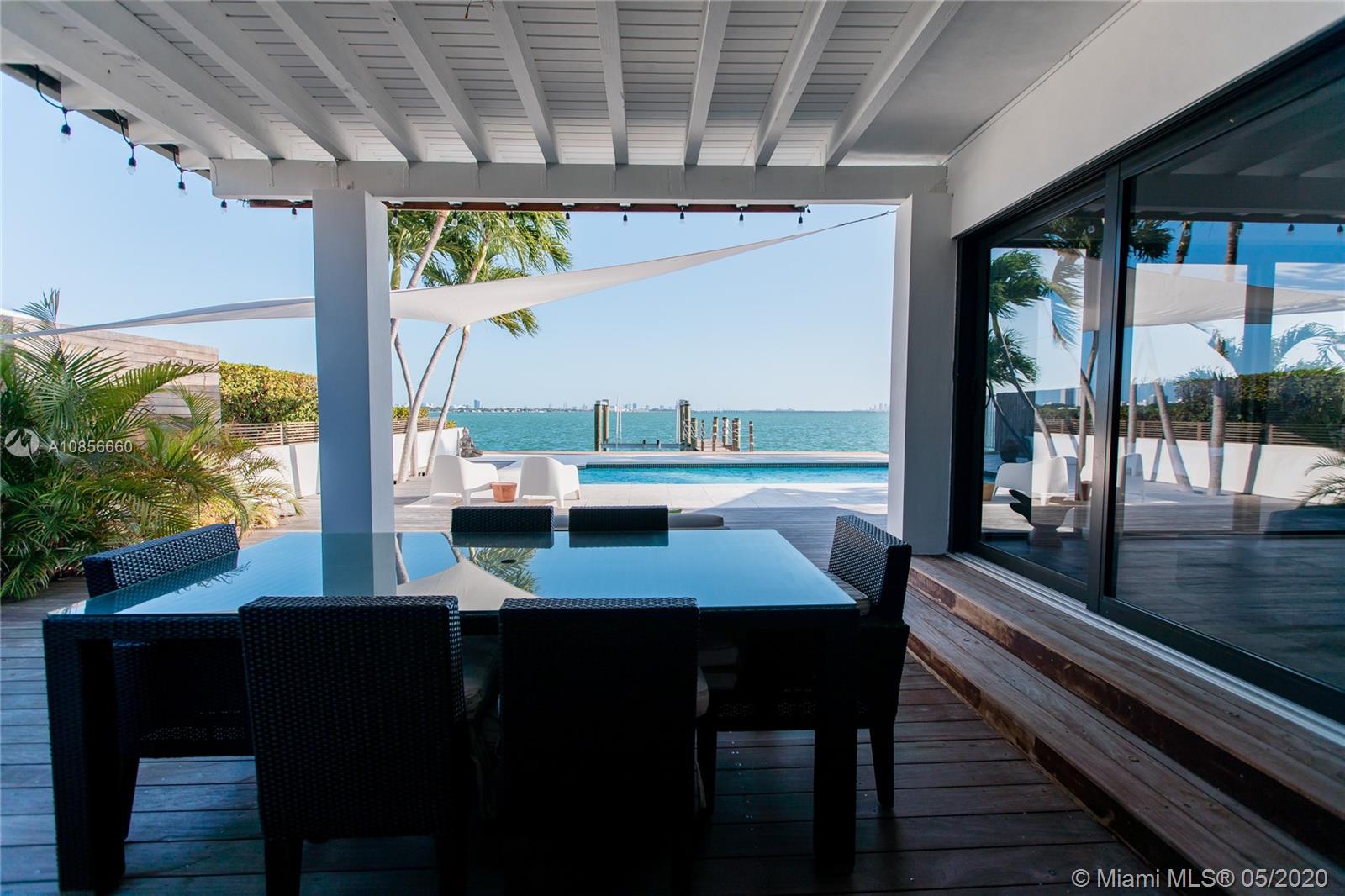 Beautifully renovated home with exceptional direct wide water views of Biscayne bay & Miami skyline, don't miss this opportunity! This two story waterfront home sits on a large lot with brand new dock and boat lift. The layout of main room is open & bright. The large sliding glass windows allows views of the pool & water. A lovely master suite & a second bedroom in the second level leads to a large terrace overlooking the bay. Some of the other features include: designer kitchen, one car covered garage, 2006 new seawall, large ipe wood deck, salt water pool, hurricane proof windows all around.