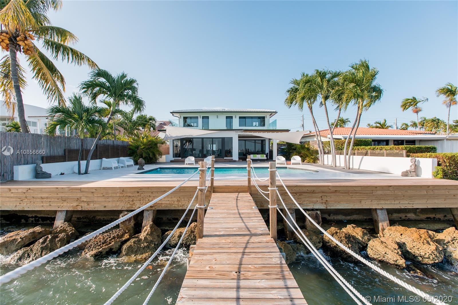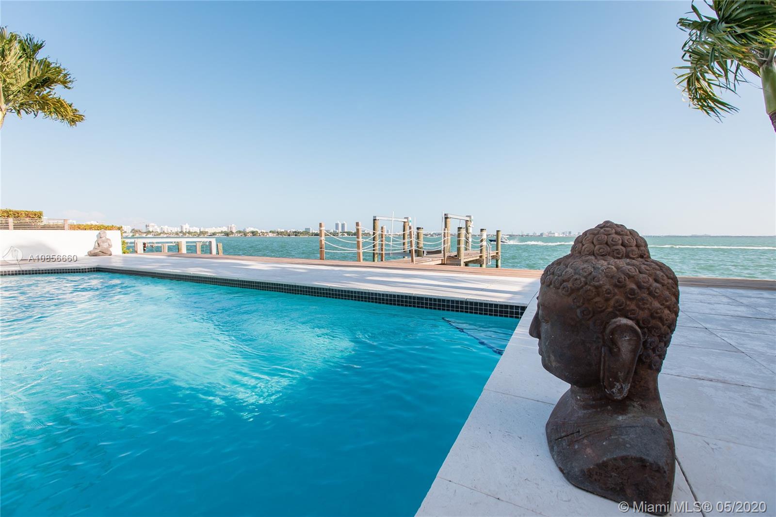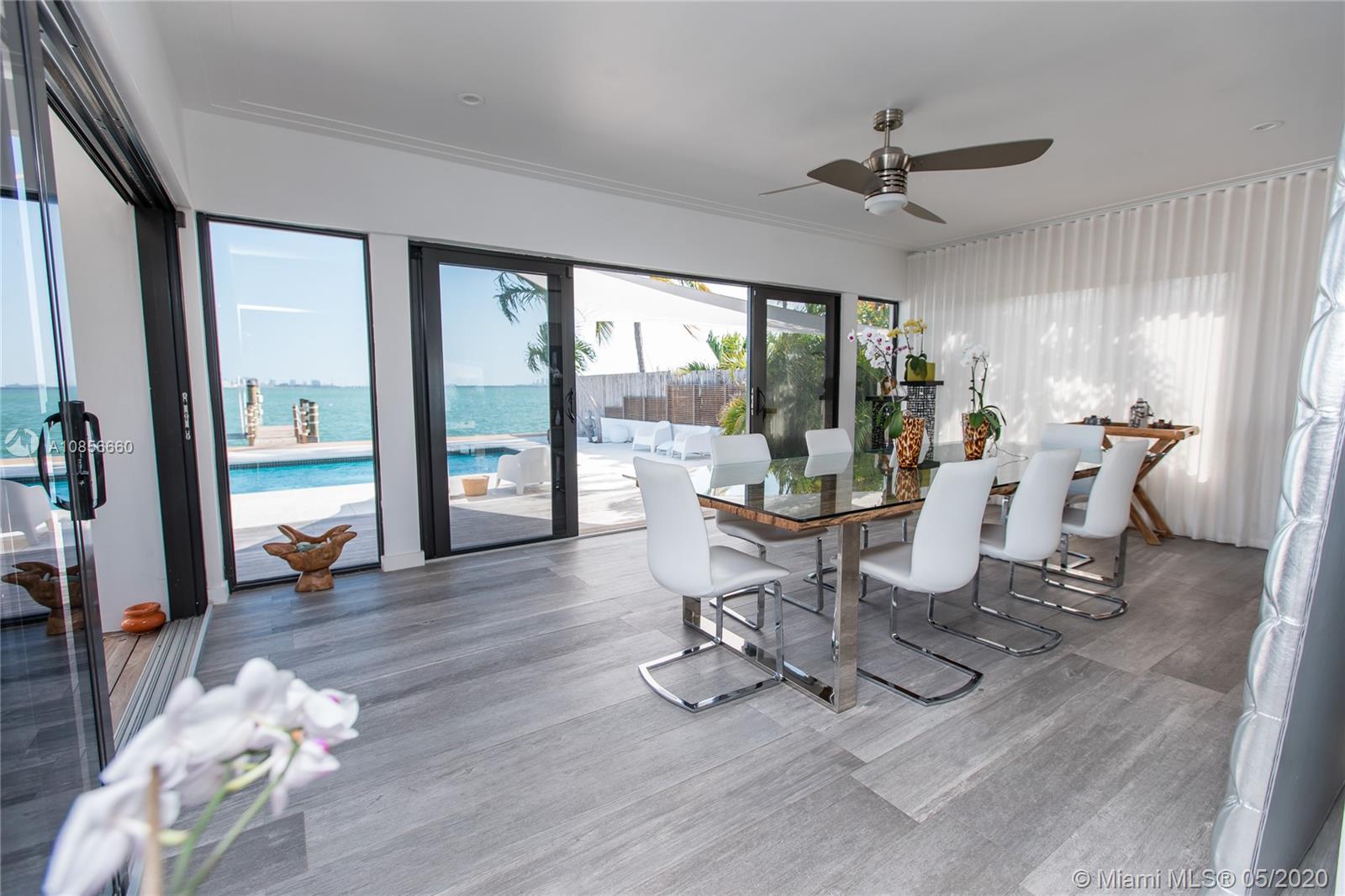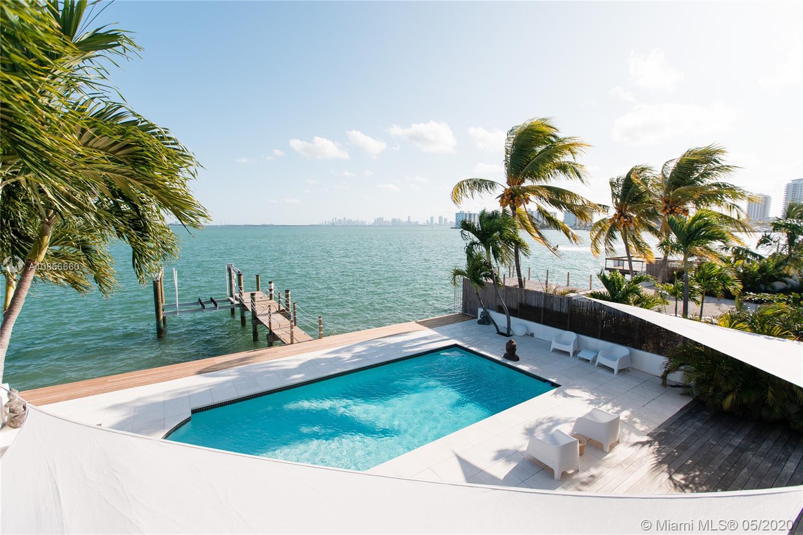 Beautifully renovated home with exceptional direct wide water views of Biscayne bay & Miami skyline, don't miss this opportunity! This two story waterfront home sits on a large lot with brand new dock and boat lift. The layout of main room is open & bright. The large sliding glass windows allows views of the pool & water. A lovely master suite & a second bedroom in the second level leads to a large terrace overlooking the bay. Some of the other features include: designer kitchen, one car covered garage, 2006 new seawall, large ipe wood deck, salt water pool, hurricane proof windows all around.