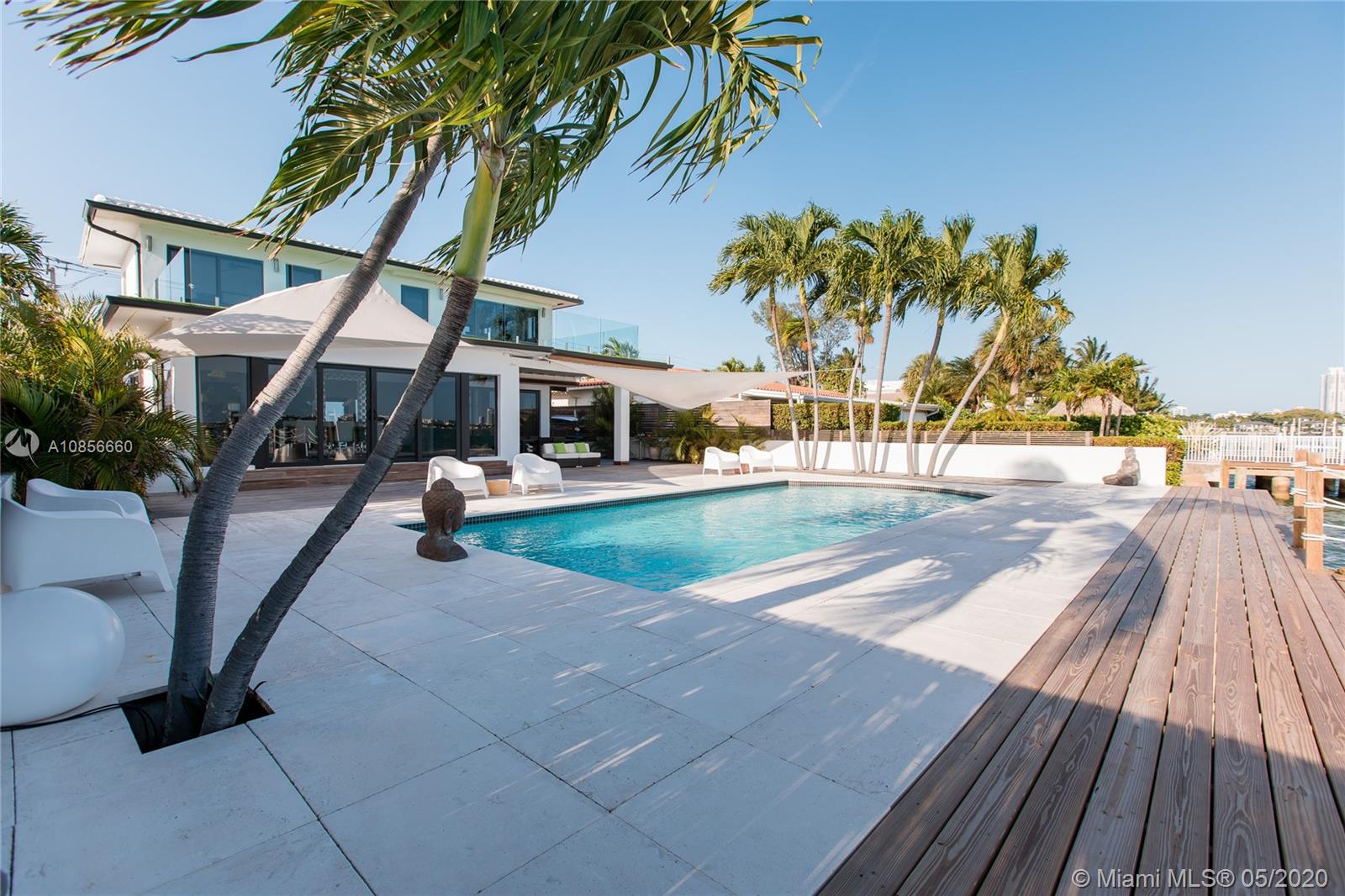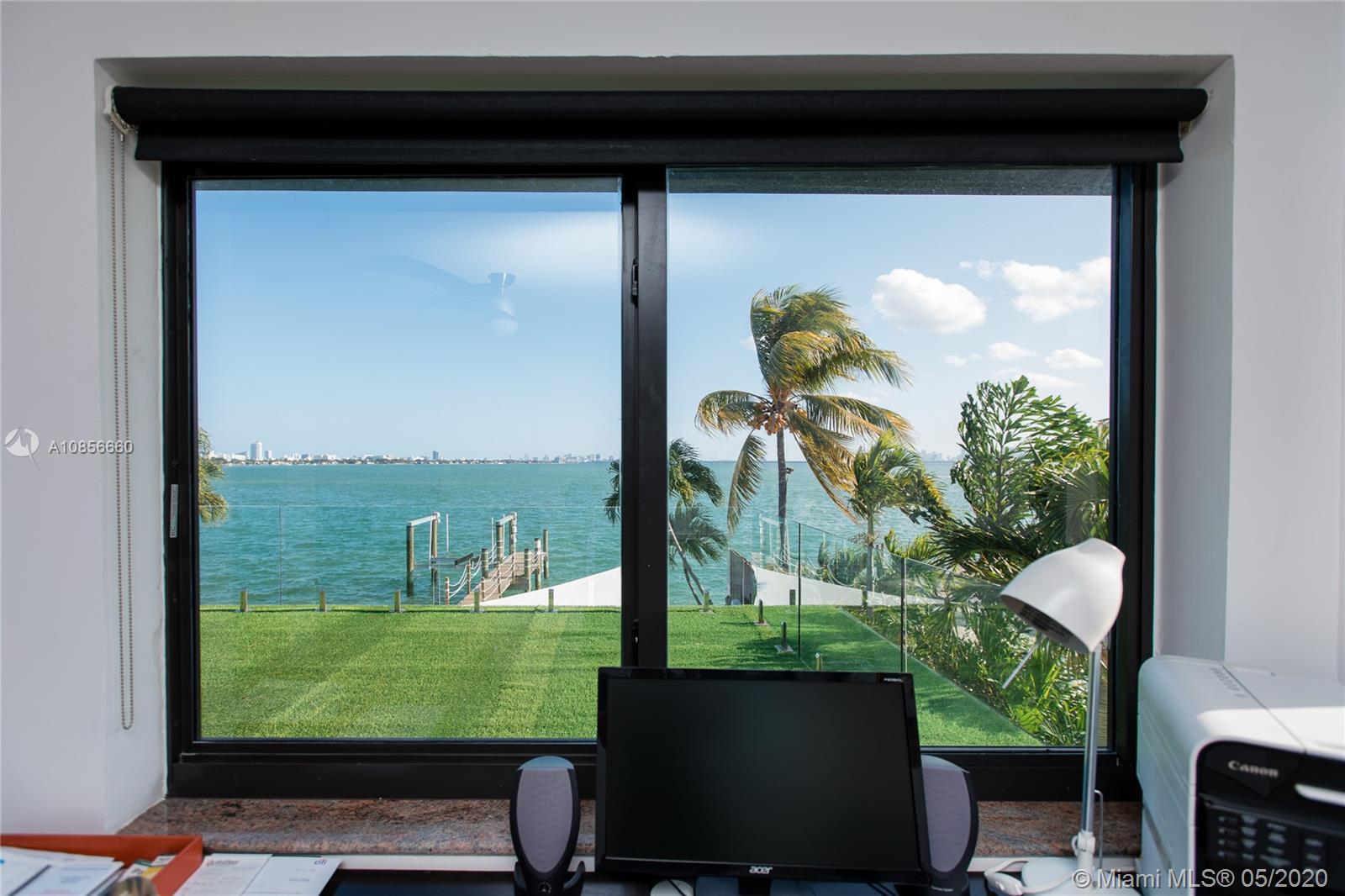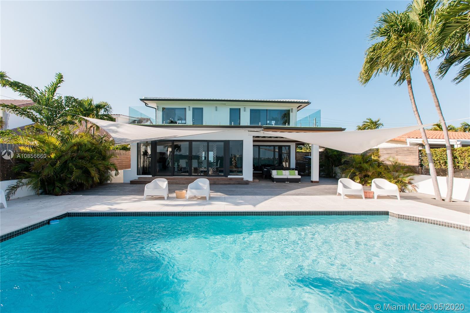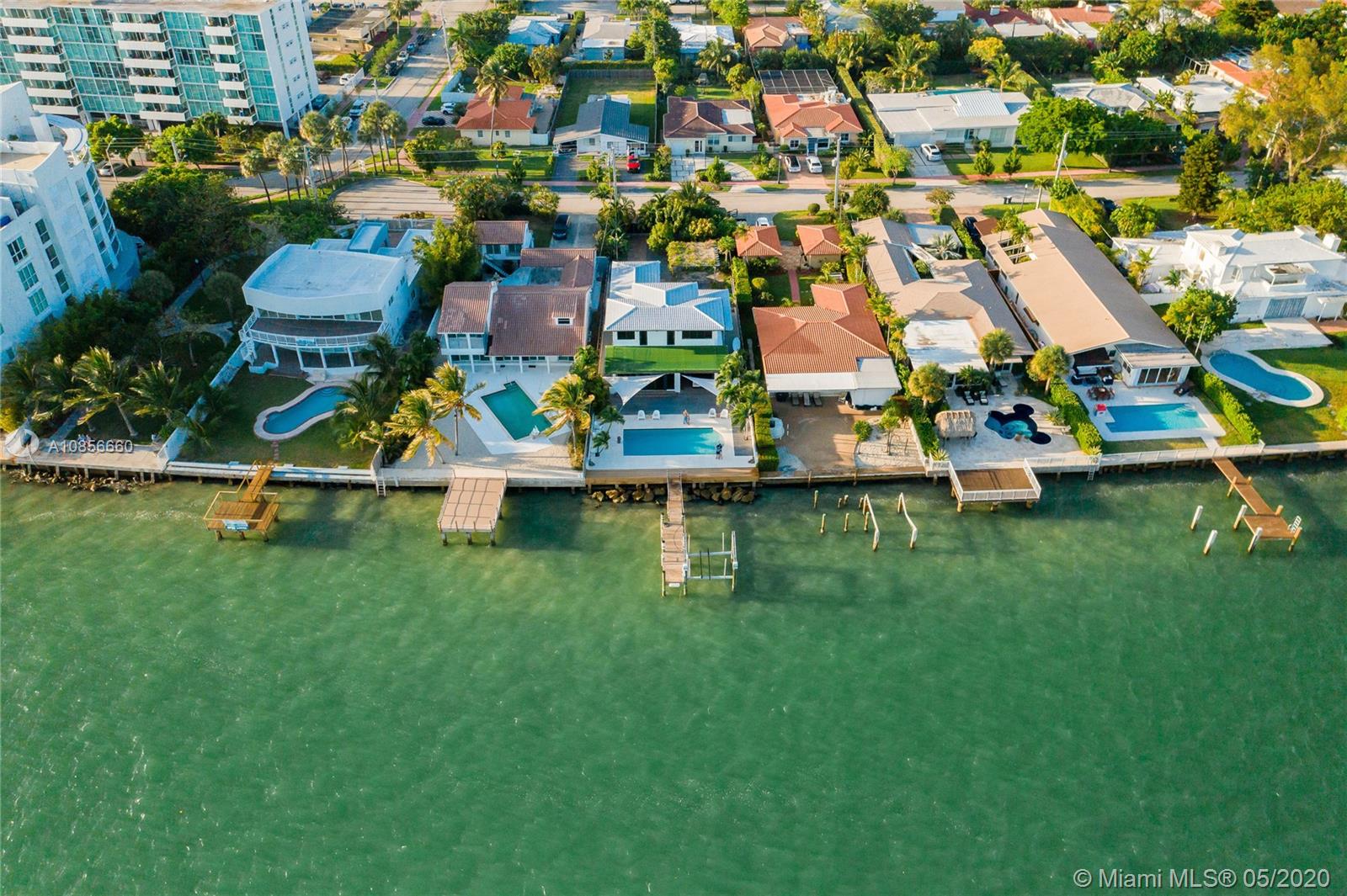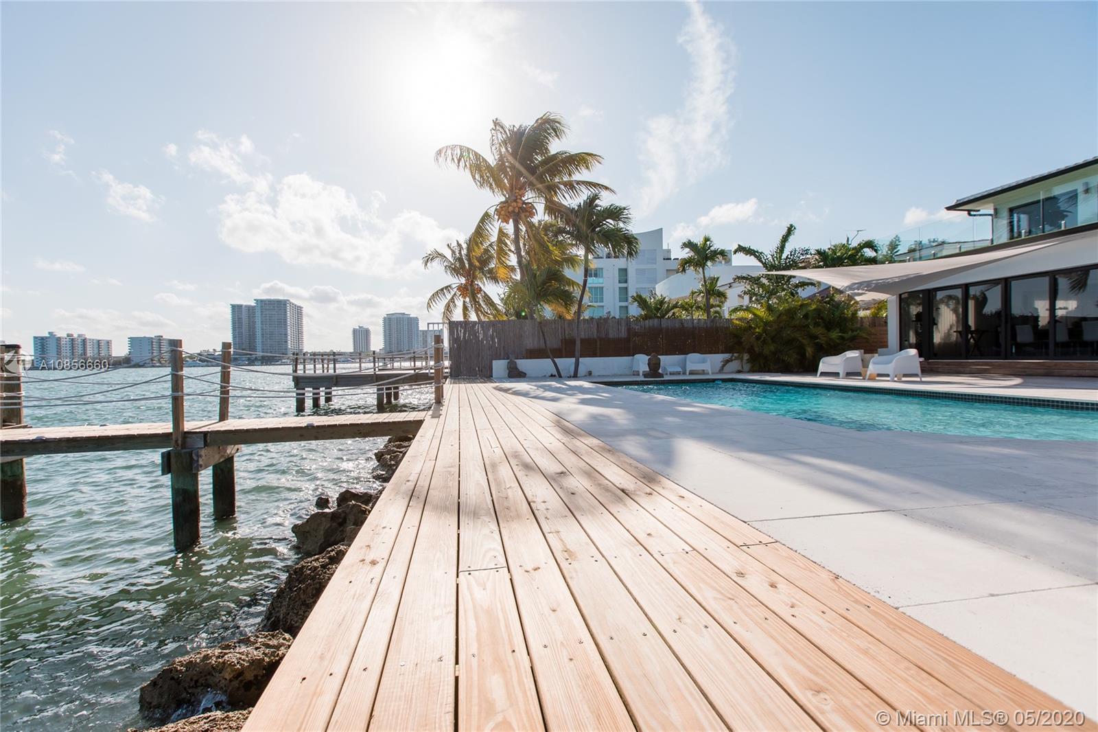 Beautifully renovated home with exceptional direct wide water views of Biscayne bay & Miami skyline, don't miss this opportunity! This two story waterfront home sits on a large lot with brand new dock and boat lift. The layout of main room is open & bright. The large sliding glass windows allows views of the pool & water. A lovely master suite & a second bedroom in the second level leads to a large terrace overlooking the bay. Some of the other features include: designer kitchen, one car covered garage, 2006 new seawall, large ipe wood deck, salt water pool, hurricane proof windows all around.