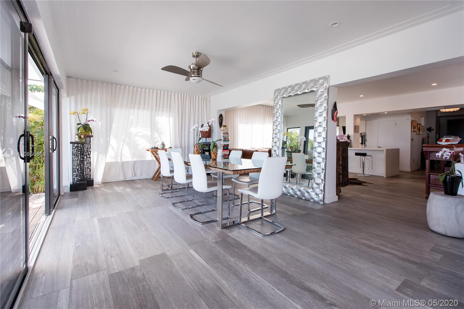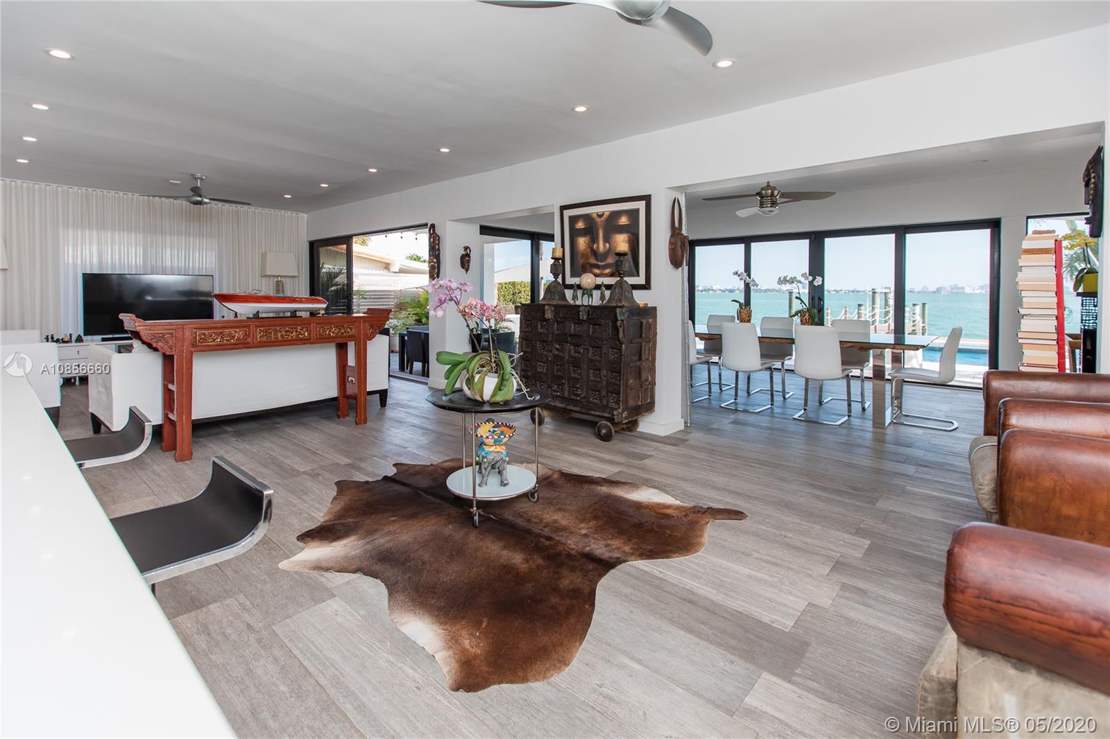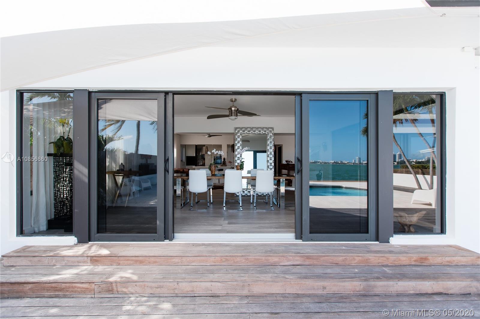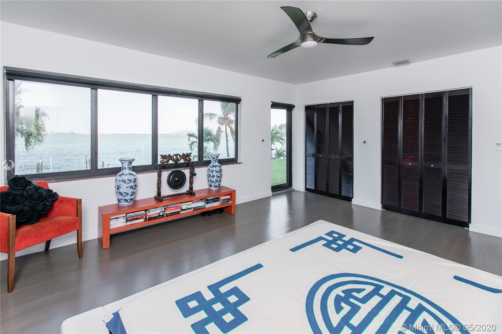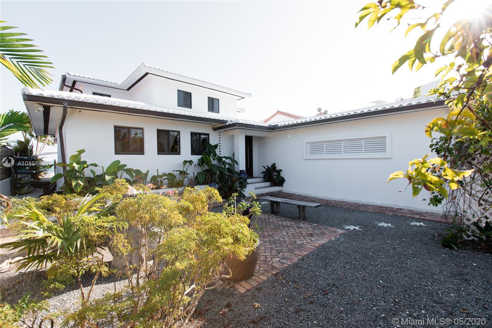 Beautifully renovated home with exceptional direct wide water views of Biscayne bay & Miami skyline, don't miss this opportunity! This two story waterfront home sits on a large lot with brand new dock and boat lift. The layout of main room is open & bright. The large sliding glass windows allows views of the pool & water. A lovely master suite & a second bedroom in the second level leads to a large terrace overlooking the bay. Some of the other features include: designer kitchen, one car covered garage, 2006 new seawall, large ipe wood deck, salt water pool, hurricane proof windows all around.