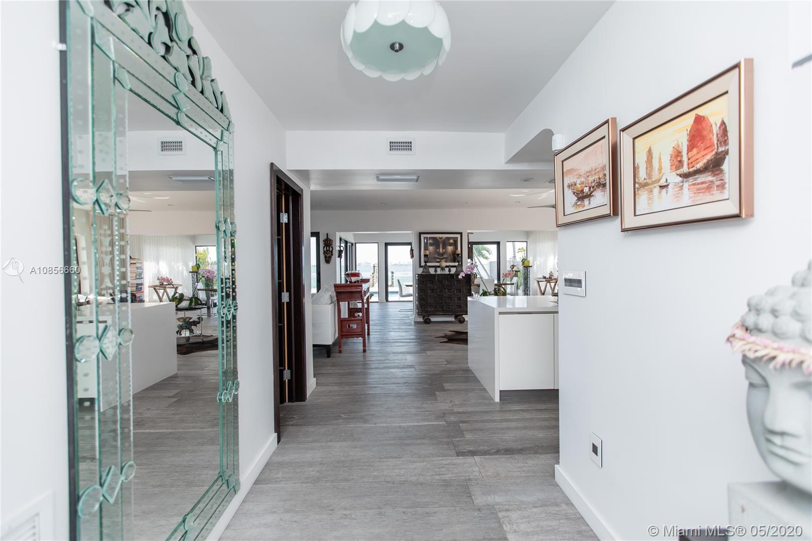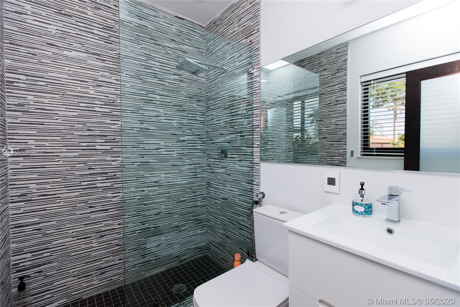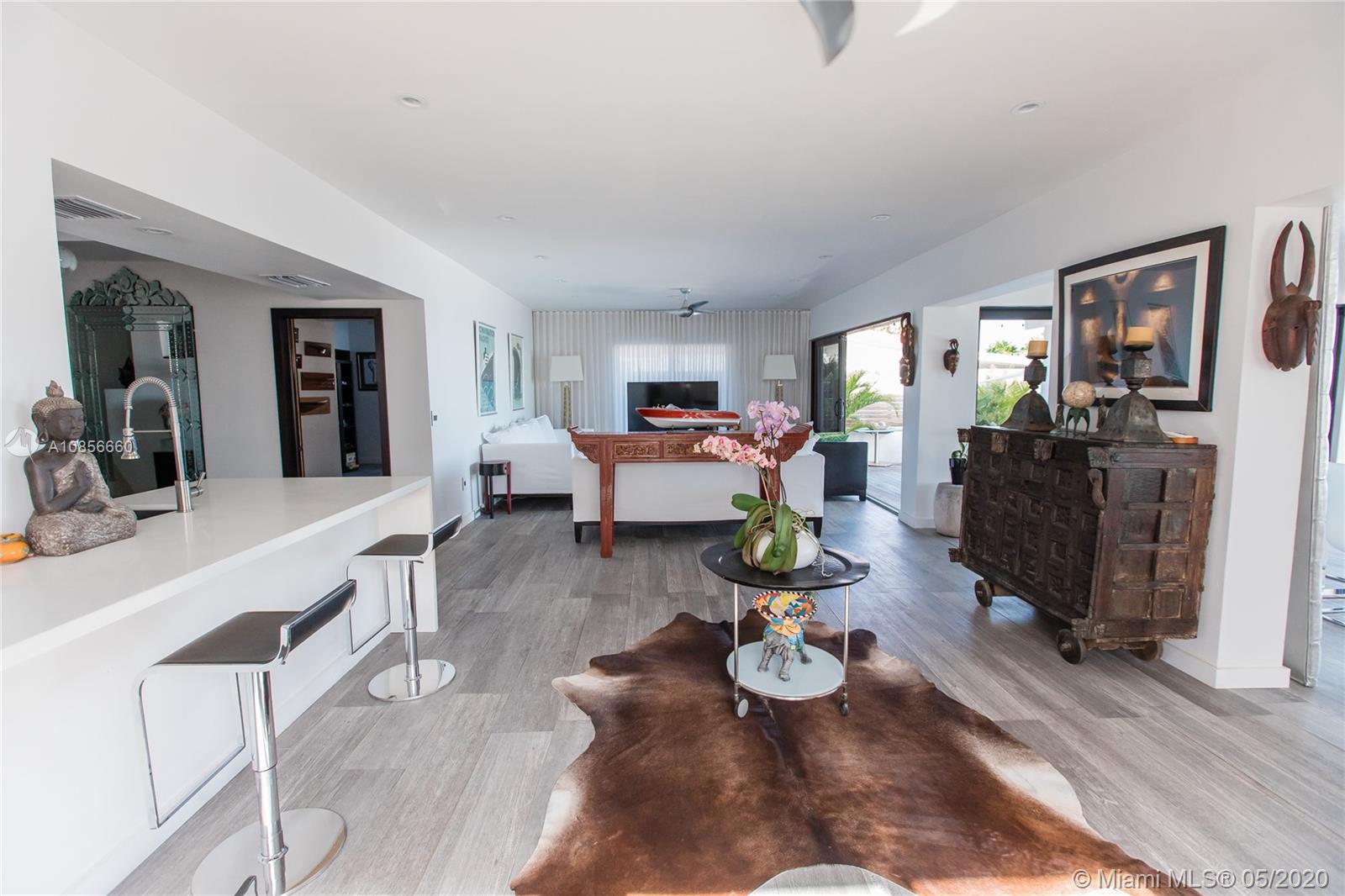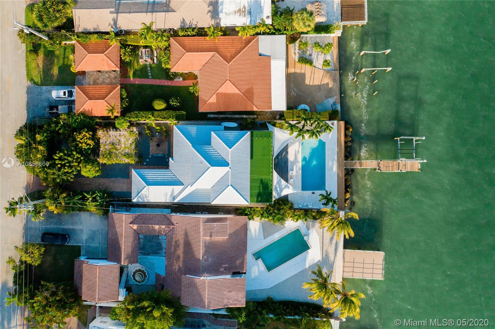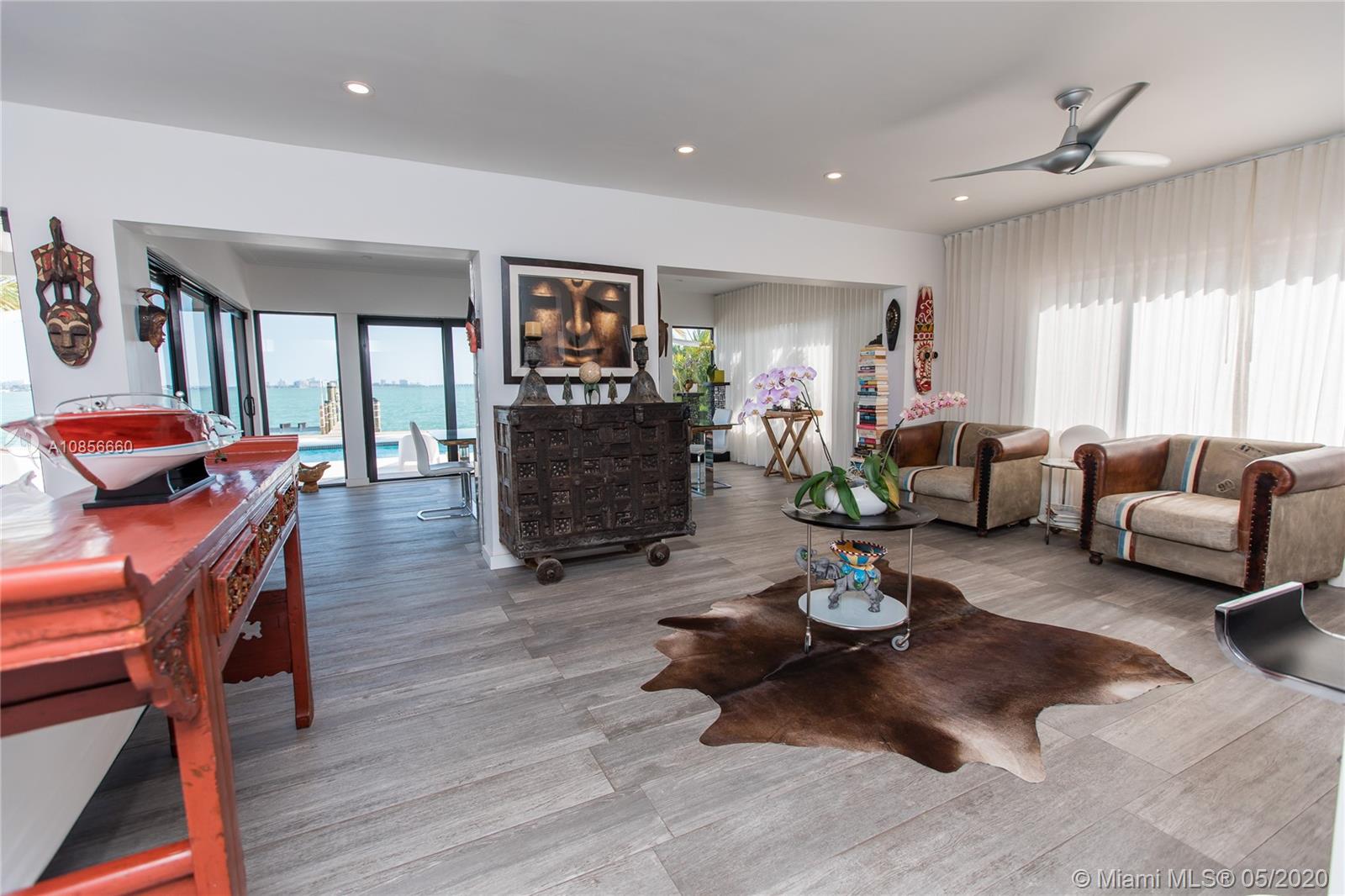 Beautifully renovated home with exceptional direct wide water views of Biscayne bay & Miami skyline, don't miss this opportunity! This two story waterfront home sits on a large lot with brand new dock and boat lift. The layout of main room is open & bright. The large sliding glass windows allows views of the pool & water. A lovely master suite & a second bedroom in the second level leads to a large terrace overlooking the bay. Some of the other features include: designer kitchen, one car covered garage, 2006 new seawall, large ipe wood deck, salt water pool, hurricane proof windows all around.