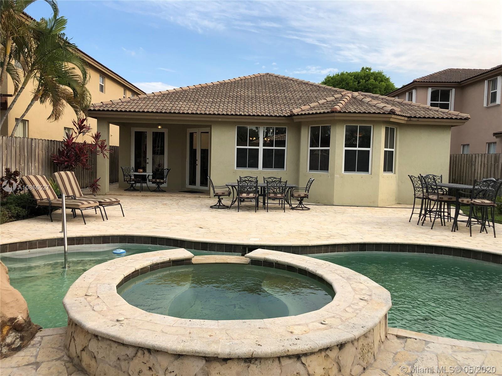 OVERSIZED LOT***GORGEOUS FREE-FORM POOL & JACUZZI, beautiful fenced backyard, very private. Immaculate single ONE-STORY house (GENOVESE MODEL used as second home), featuring tile floors throughout, open kitchen, space-full dining-living area, built-in California closets, window treatments, hurricane accordion shutters, ceiling fans (4), 2-car garage, laundry room, freshly painted. Fabulous location, walking distance to A-rated Doral schools, parks and Islands at Doral Clubhouse (community pool, gym, tennis, basketball, etc)...................a "must see home"......PRICED TO SELL FAST!!!
