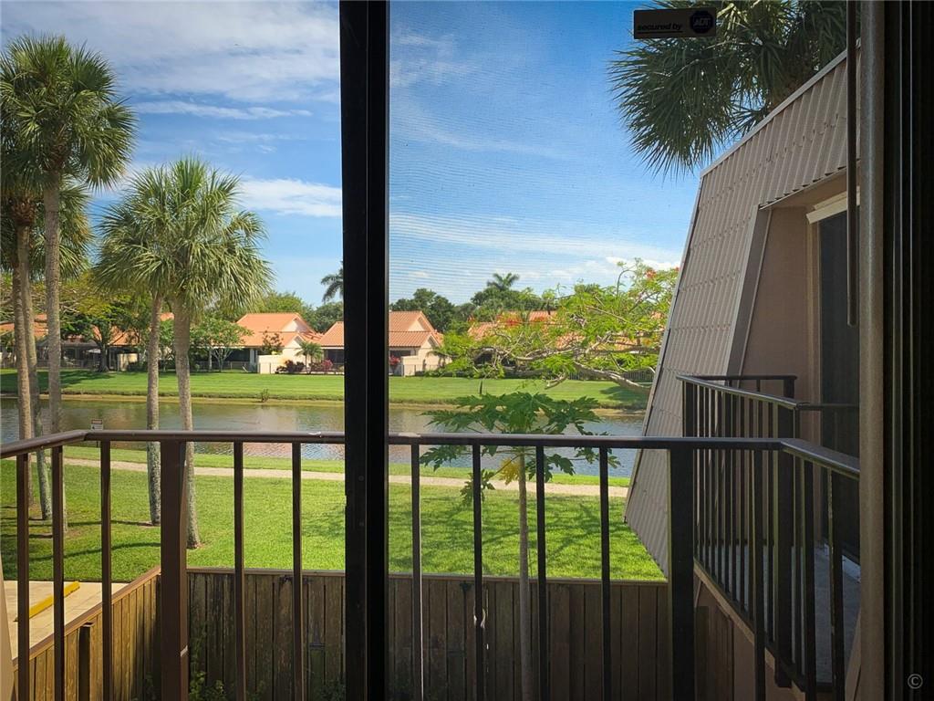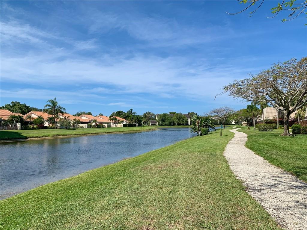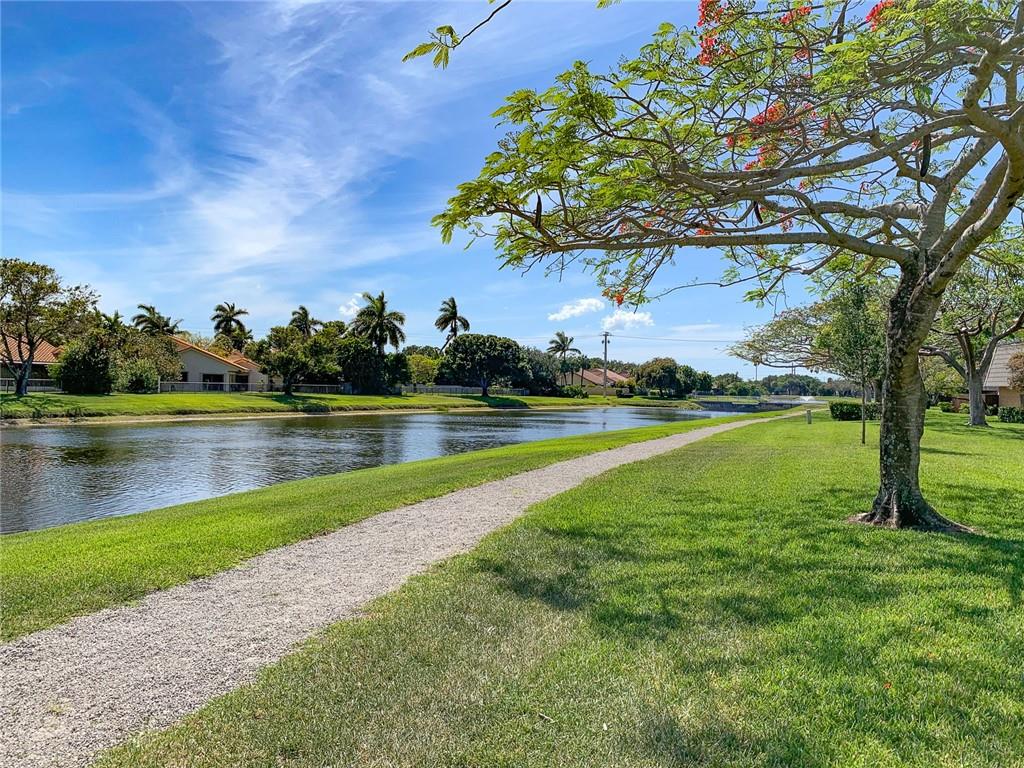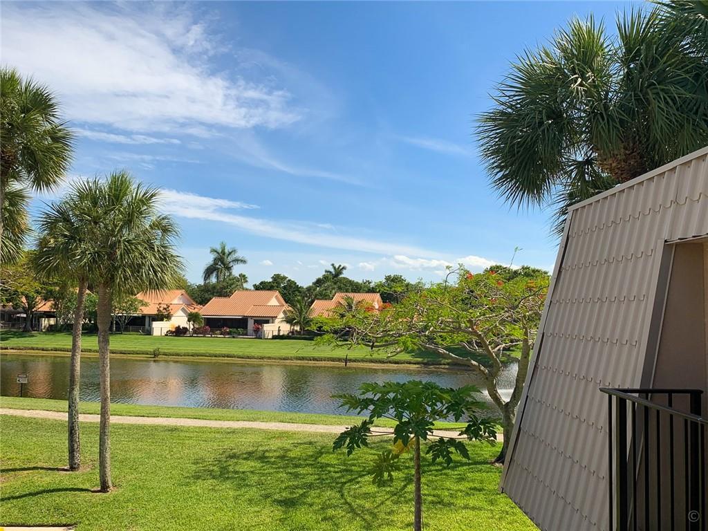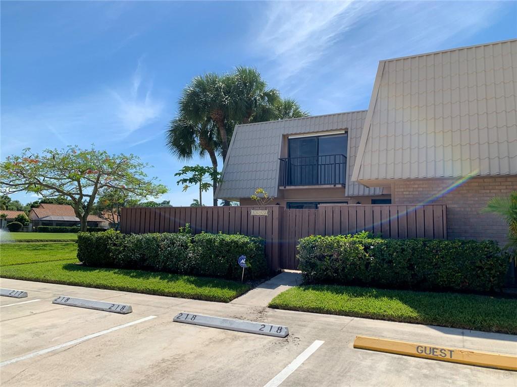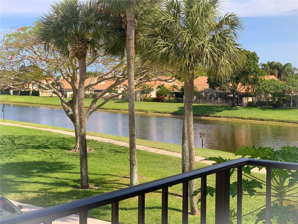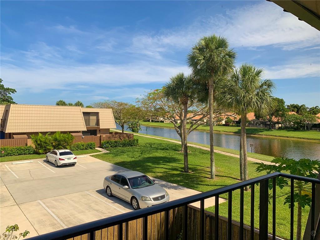GREAT OPPORTUNITY Location, Location, Location. Beautiful waterfront views from both 2nd floor bedrooms. This Townhouse needs some updating and is priced accordingly. Tons of potential and Seller is offering a $1,500. credit towards new flooring. Large private fenced patio for entertaining, metal roof, two assigned parking spaces right outside your door. Full size washer & dryer, and each bedroom has their own ensuite bathroom and plenty of closet space. The recreation facilities include the Olympic sized pool, kiddie pool, tennis, racquetball & basketball courts, playgrounds & scenic exercise trails. The HOA covers water, lawn care, exterior pest control, trash pickup, exterior building insurance, roof & fence maintenance. You are minutes to downtown WPB, PB Int'l airport and the beaches