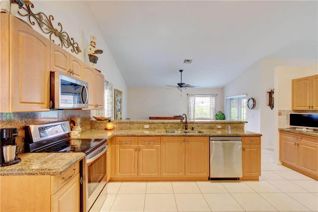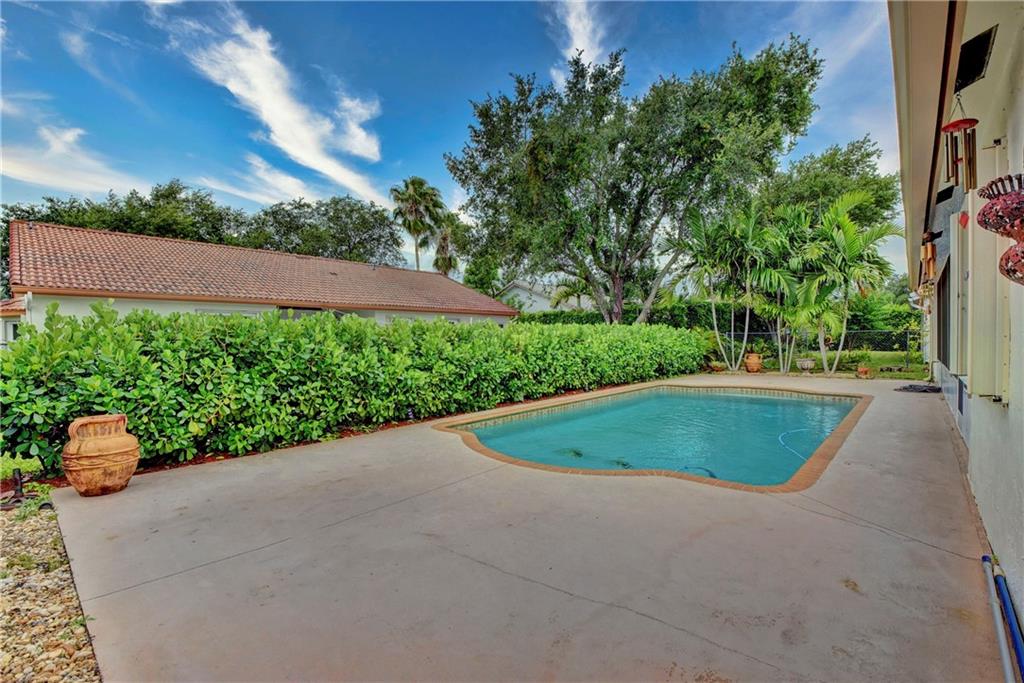 Spectacular single story 3bedroom 2 bathroom home in a private 49 home community of Addison Estates. This lush landscaped pool home was updated with newer stainless steel appliances & a big kitchen with 14ft+12ft long granite counter tops, maple kitchen cabinets with marble backsplash. Bathrooms are nicely upgraded. Master bath has a separate shower and tub; Master bedroom has a large walk-in closet. This home has a separate family room, a dinning room, a living room that leads to an enclosed large outdoor tiled porch overlooking a beautiful pool. The NEW salt-system pool has a self cleaning sweeper that comes with a NEW motor & pump assembly (2019). NEW Malibu Barrel ROOF with wide gutters, accordion shutters & an outdoor surveillance system visible on a hand-held device. By Appt only.