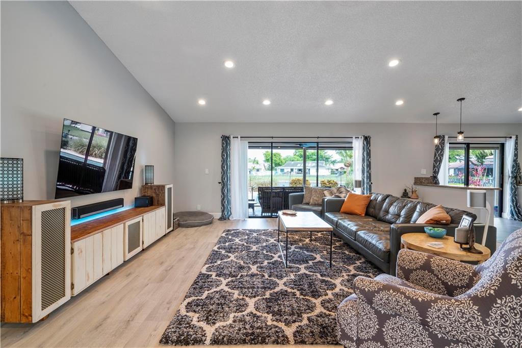 GORGEOUS WATERFRONT HOME SHOWCASING A BRIGHT AND OPEN FLOOR PLAN. VAULTED CEILINGS, SKYLIGHTS, AND FRESHLY PAINTED. BRAND NEW FLOORING, AC, AND APPLIANCES. UPDATED KITCHEN AND BATHROOMS. BEAUTIFUL LAKE VIEWS WILL DRAW YOU INTO THE OUTDOOR LIVING SPACE, WITH PHANTOM MOTORIZED SCREEN ENCLOSURE THAT OPENS OR CLOSES IN THE PATIO SEATING AREA WITH A PUSH OF A BUTTON. SALTWATER POOL, WITH NEW HEATER. LUTRON LIGHTING, SECURITY SYSTEM AND INTERGRADED SMART HOME TECHNOLOGY ALLOWS YOU TO CONTROL AND MONITOR THE HOME FROM ANYWHERE. BEAUTIFUL LANDSCAPE AND EXTERIOR LIGHTING PROVIDE AMAZING CURB APPEAL, AND BACKYARD FUN!