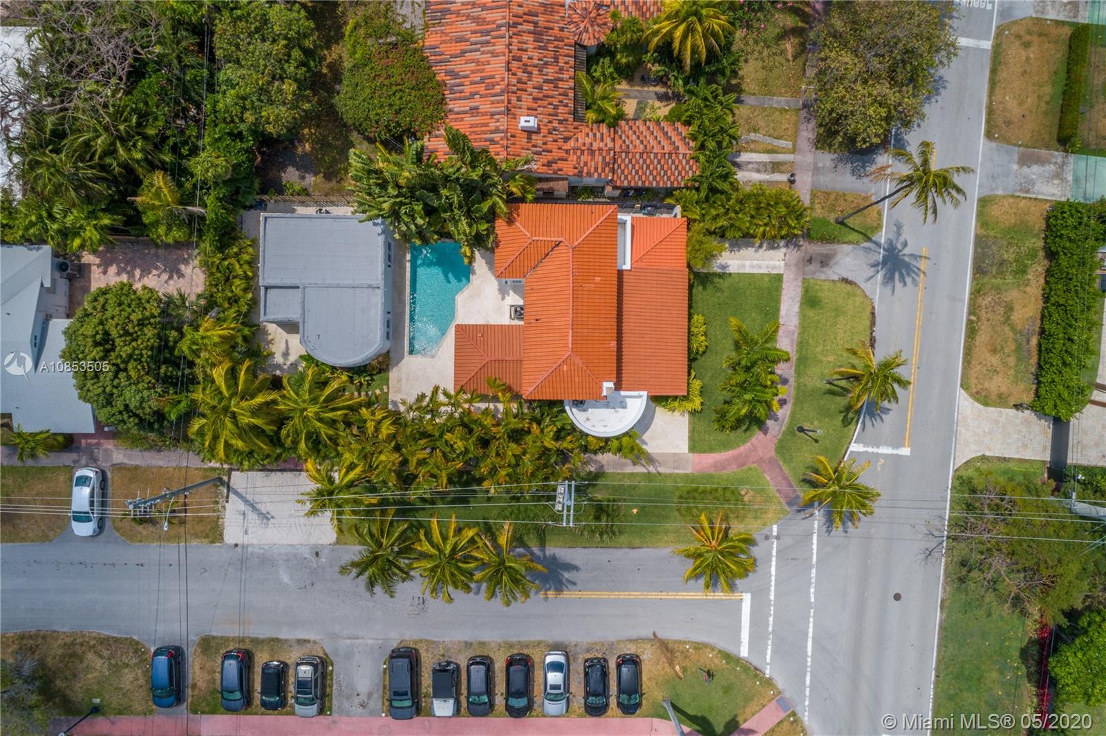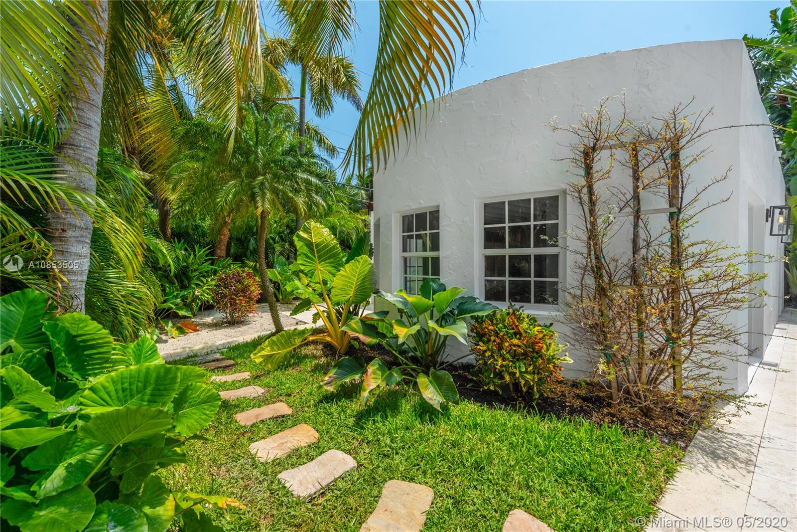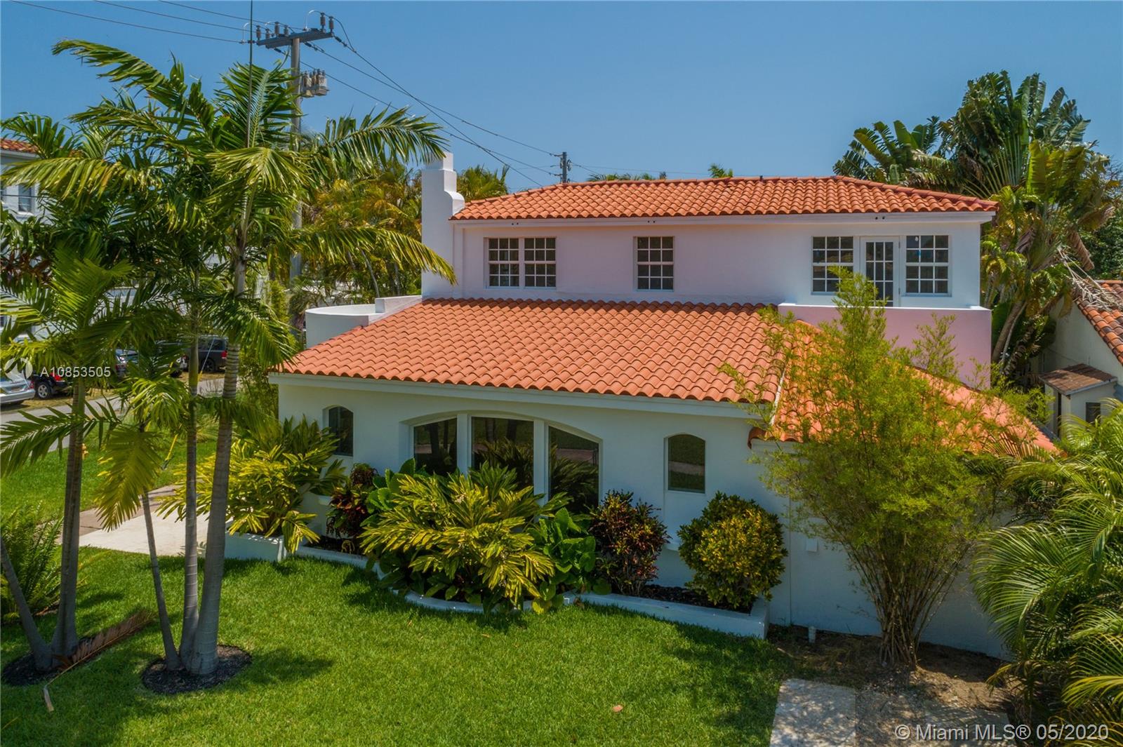 Built in 1936, this 2-story, 3,590 SF home sits on a corner lot, just minutes from parks, schools & cafes. From the ground up, it has been totally rebuilt into a classic & elegant masterpiece. The turn-key 5BD/3.5BA home includes a detached 2BD/1BA guest house w/ kitchen & private entrance, perfect for guests, in-laws or an office. The 3BD/2.5BA main house highlights include an abundance of natural light; high, vaulted ceilings; open, gourmet kitchen outfitted with Viking appliances; and living & dining room. The master bedroom is joined by a grand built-in closet and is complemented by a master bath with floating tub & oversized marble steam shower. Upstairs is anchored by original Miami Pinewood floors. Hurricane impact windows, lush landscaping & a new pool complete the outdoors.