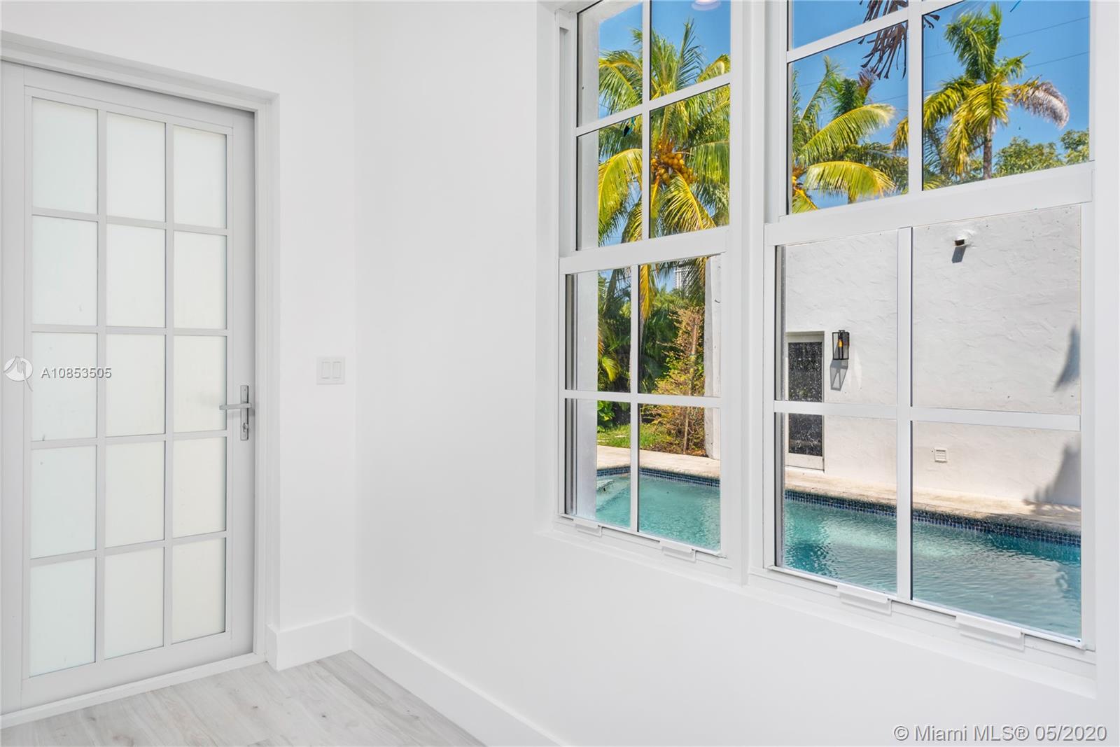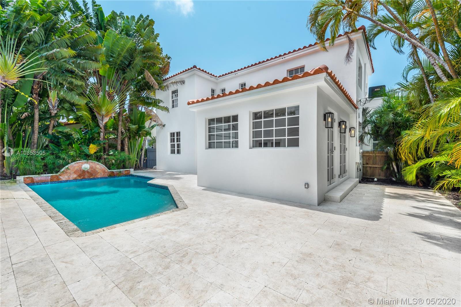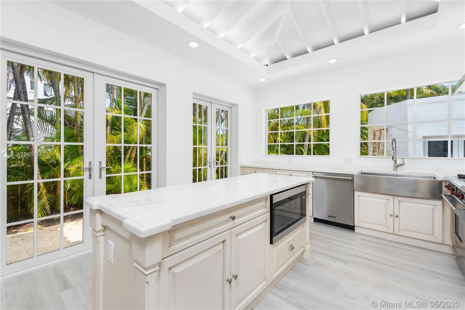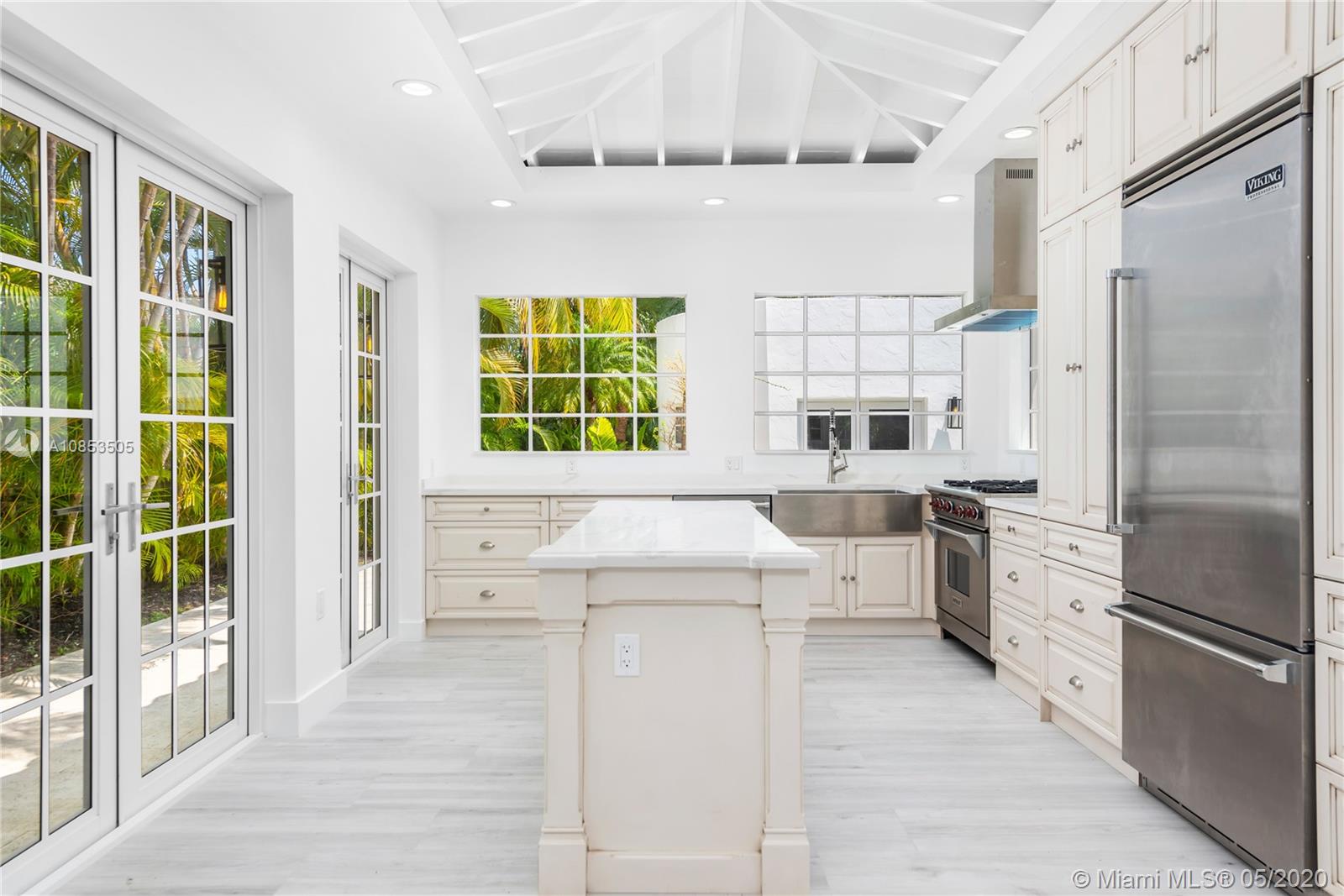 Built in 1936, this 2-story, 3,590 SF home sits on a corner lot, just minutes from parks, schools & cafes. From the ground up, it has been totally rebuilt into a classic & elegant masterpiece. The turn-key 5BD/3.5BA home includes a detached 2BD/1BA guest house w/ kitchen & private entrance, perfect for guests, in-laws or an office. The 3BD/2.5BA main house highlights include an abundance of natural light; high, vaulted ceilings; open, gourmet kitchen outfitted with Viking appliances; and living & dining room. The master bedroom is joined by a grand built-in closet and is complemented by a master bath with floating tub & oversized marble steam shower. Upstairs is anchored by original Miami Pinewood floors. Hurricane impact windows, lush landscaping & a new pool complete the outdoors.