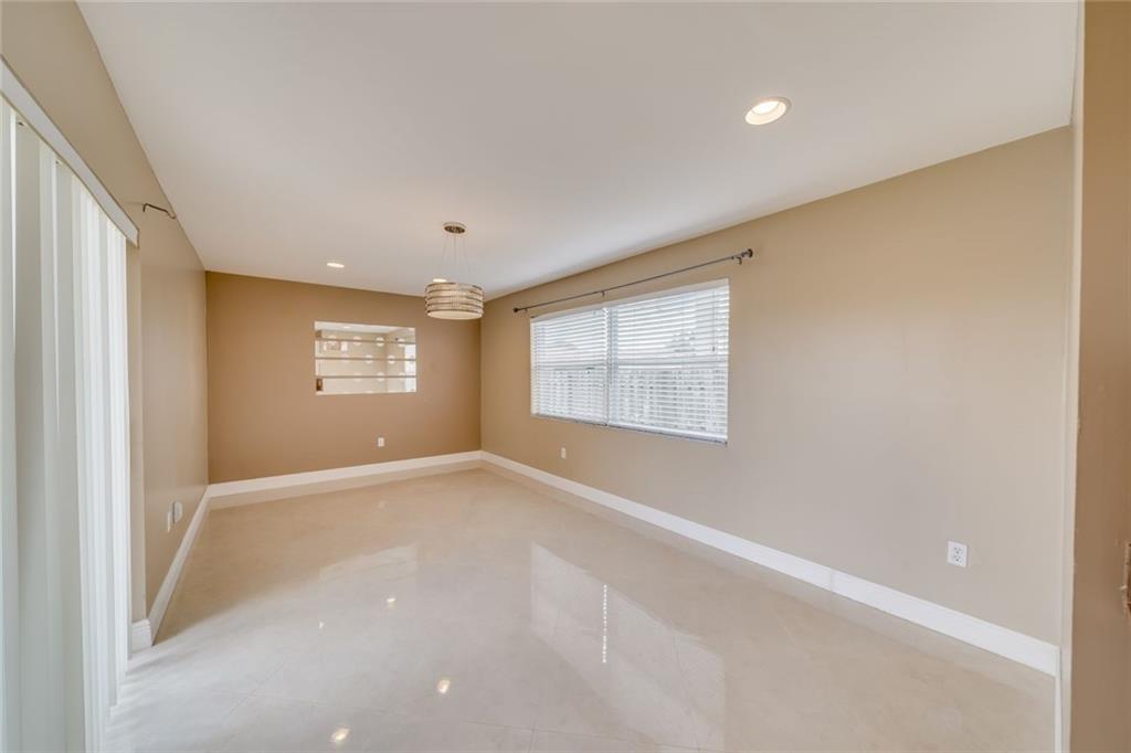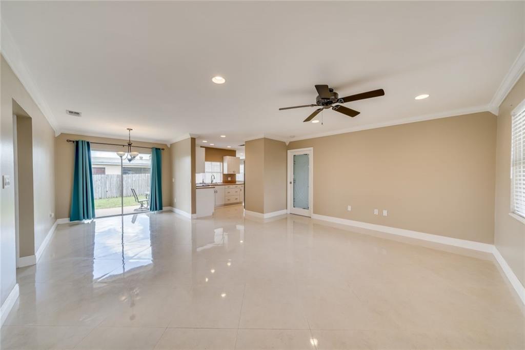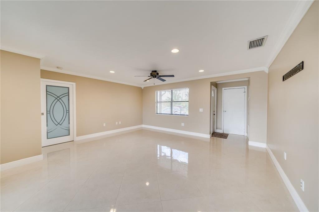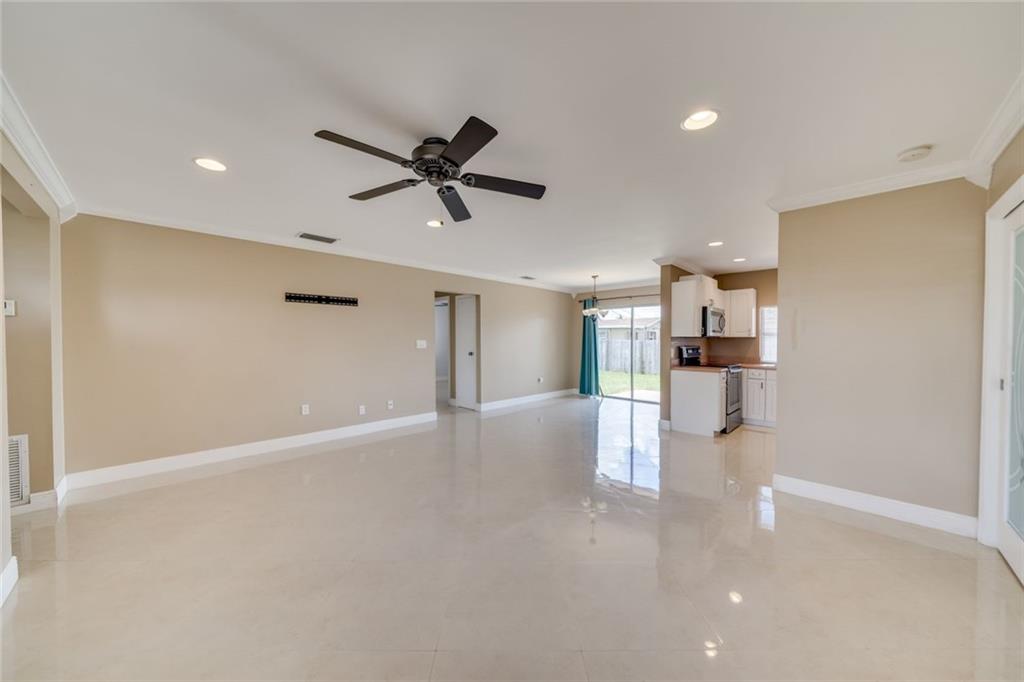 Beautiful and spacious 3 bedroom 2 bathroom in the heart of Sunrise. Walk into a large ample living room with neutral tile throughout the house, modern crown molding and a large window for natural light. Head to the alluring formal dining room with sliding doors for more natural light. Kitchen has modern white cabinets and stainless steel appliances. Comfortable family room for entertaining guest. Master bedroom features a completely remodeled master bathroom. Split bedroom layout and every bedroom features a ceiling fan. Relaxing patio to enjoy breezy evenings outside. Huge fenced backyard, enough to put a pool if desired. No HOA. No carpet. No rental restrictions. Close to the Sawgrass Mills Mall and major shopping centers and restaurants. Priced to sell.