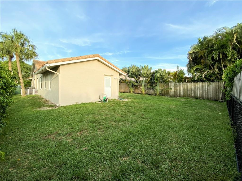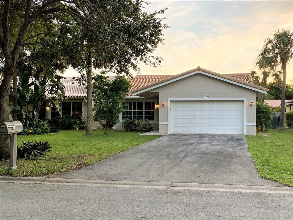 Beautiful 3 bedrooms, 2 bathrooms, 2 car garage home in the heart of Coral Springs! Desirable open floor plan with a living room AND a family room, or easily converted back to a 4th bedroom. Vaulted ceilings and remodeled kitchen counter tops. Large master bedroom features a walk-in closet and cabana bath that leads out to large, completely fenced-in backyard with plenty of room for a pool. Also includes a screened in patio. New A/C (2019) and water heater and a 2007 tile roof! Freshly painted interior. Hurricane shutters included. Quiet neighborhood within walking distance to shops and restaurants on University Drive and No HOA. Ready to move in!