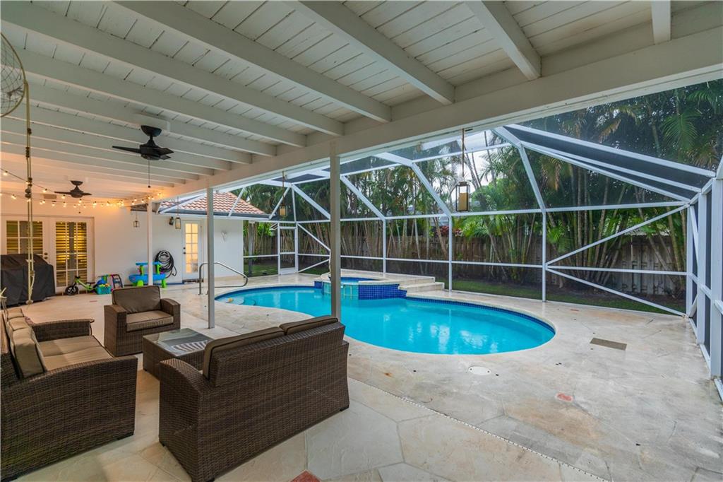 Welcome to the Paseos Community! A wonderful neighborhood tucked away in a great central location. This home boasts a big updated 3 beds, 2 bath and rarely available lot with a large pool. Impact rated windows. New updated kitchen with custom cabinets, new appliances and new natural stone counter tops. New flooring throughout the house, big porcelain tile. Updated bathroom 2018. Vaulted ceilings with recessed lighting, open floor plan leading into back patio. This home is great for entertaining in style. New roof 2018. New A/C 2020. This home is truly unique and the owners have updated & maintained it perfectly. Paseos offers 1/4+ acre lots in this neighborhood. Gated, Tennis Courts, Playground, walking paths, and pond. Great for families and for outdoor entertaining!