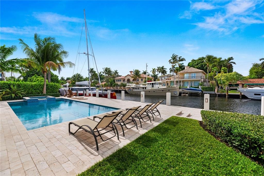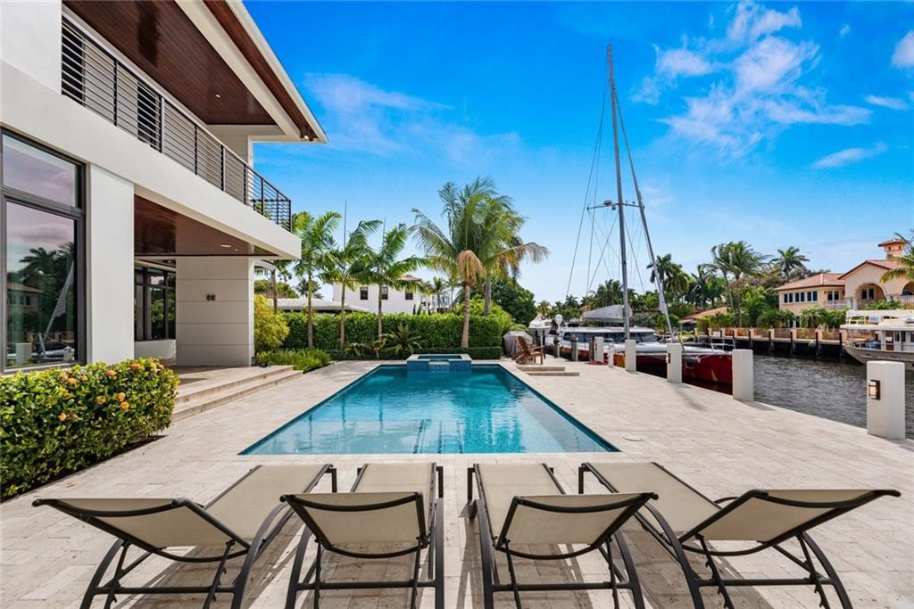 Timeless architecture in this Recently built Randall Stofft designed Waterfront home in Seven Isles! This stunning 4 BR/4.5 BA residence, boasts over 5700k TSF, with impeccably curated interiors and baths, volume ceilings and expansive glass. Chefs kitchen with Thermador appliances, Great Room, Dining and Living areas all open to the water and flow to generous covered loggia, leading to heated salt water pool and spa & 80' concrete dock. Home theater, full cabana bath, plus a dramatic powder room. 2nd level with 4 BRs, 3 face the water, a luxurious Owners suite, with sumptuous Bath, two walk-in closets and a tranquil terrace. Huge Utility area and reading nook complete the floor. Control 4/Lutron, Elevator, Natural Gas, Security Patrolled 7 Isles. Minutes to Beach, Las Olas & DWTN.