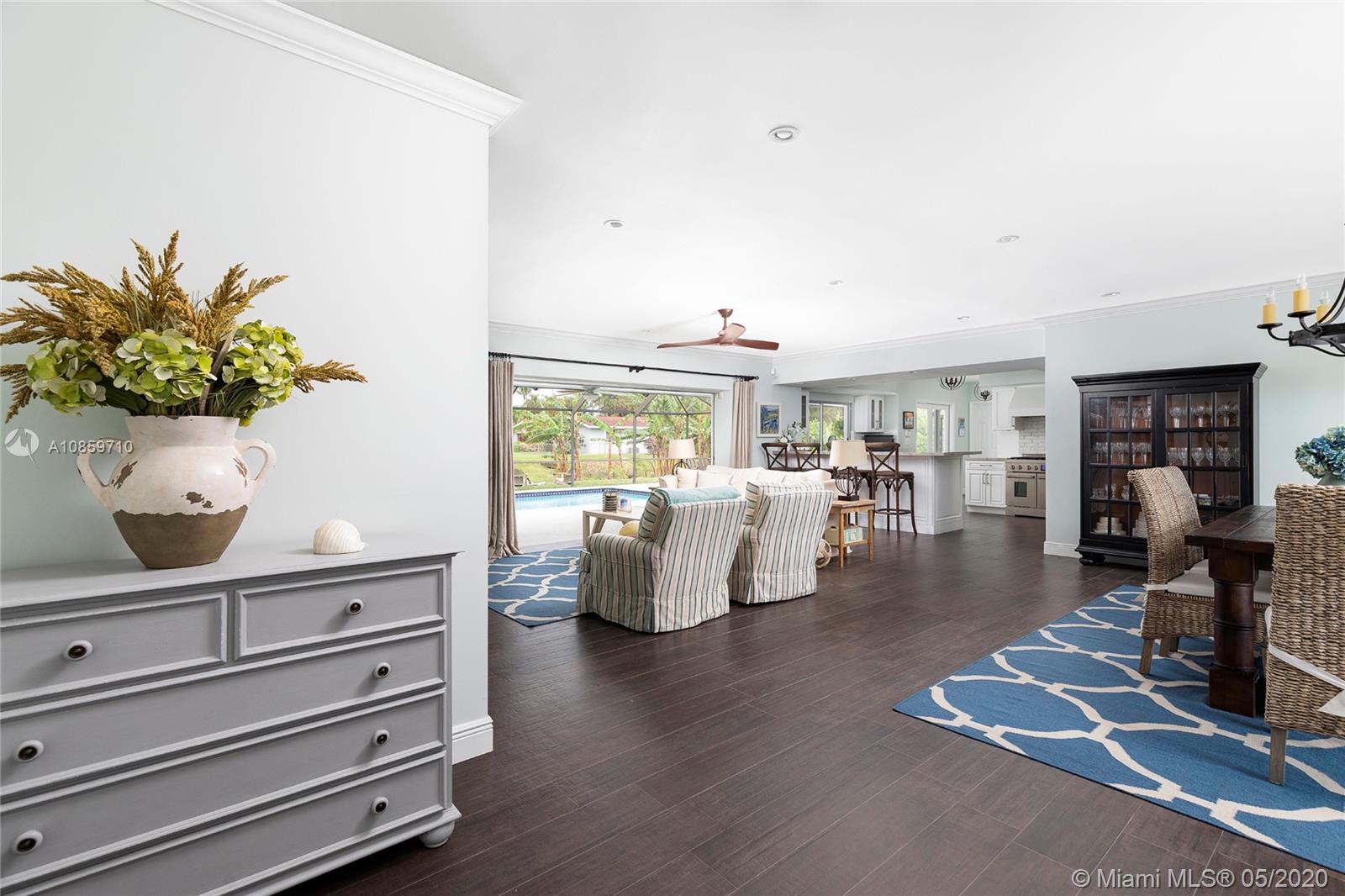 Pinecrest dream home on a peaceful canal. Beautifully renovated by residential designer Cyndi Navarro, known for harmonizing classic style with modern clean lines. Spacious living room, dining room accented by a gorgeous kitchen with custom cabinetry, high end appliances and quartzite countertops. Four large bedrooms plus separate den/office space. Large master bedroom with extra flex space for gym/office. Relax outside in the covered terrace with heated, sparkling pool. 50% of windows upgraded to impact. Top schools. 3,154 SF Adj per Miami-Dade County property records.