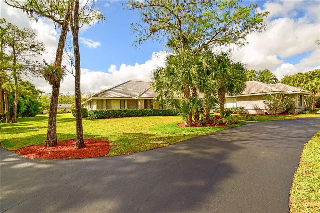 Spacious 4/3 pool home on corner acre homesite in desirable development of Whispering Woods. Quality construction & well maintained. Home site offer a lot of privacy. Too many features to list here: volume & vaulted ceilings, split bedroom floorplan, formal living & dining, renovated kitchen with large eat-in component, extra large family room with stone fireplace & wet bar with kitchen extension, full hurricane shutters (accordion & panels) & hurricane impact garage doors, covered patio with built-in grill, 3-car garage with extra tall doors & attic access, well for main sprinklers, City water for sprinklers next to home... $12,500 buyer credit offered at full price. 24/7 guard gated. Conveniently close to everything: HWYs, plazas w shopping & restaurants, parks, schools, hospital...