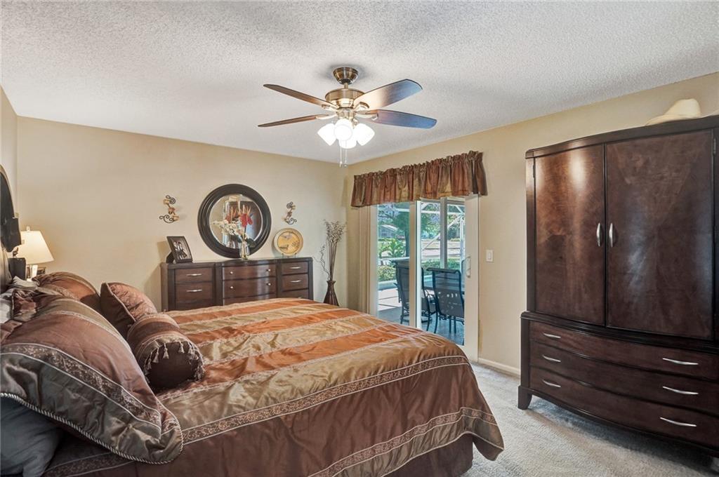 Wow! Come see this spectacular and immaculate 4bed/2 bath home! Formal dining and family rooms greet you on entry. Enjoy the spacious living room and open concept kitchen with twin lake views! Top LG/GE appliances, custom cabinets with lights, granite tops, new disposal, new ceiling lights. Huge master ensuite with lake view, big walk-in closet. Beautiful upgraded double vanities in both baths. Lots of storage. Floors, grout, & carpet cleaned. Roof 2005, WH 2007, AC 2018 5 ton. New thermostat. New attic stairs. Impact windows/sliders! Exterior & driveway painted. New garage opener. Sprinklers off lake. Large screened patio is the best! Relax and enjoy the lakes, bananas, avocados, pineapples, & coconuts! Walk to the park or clubhouse, pool, tennis, gym, playground.