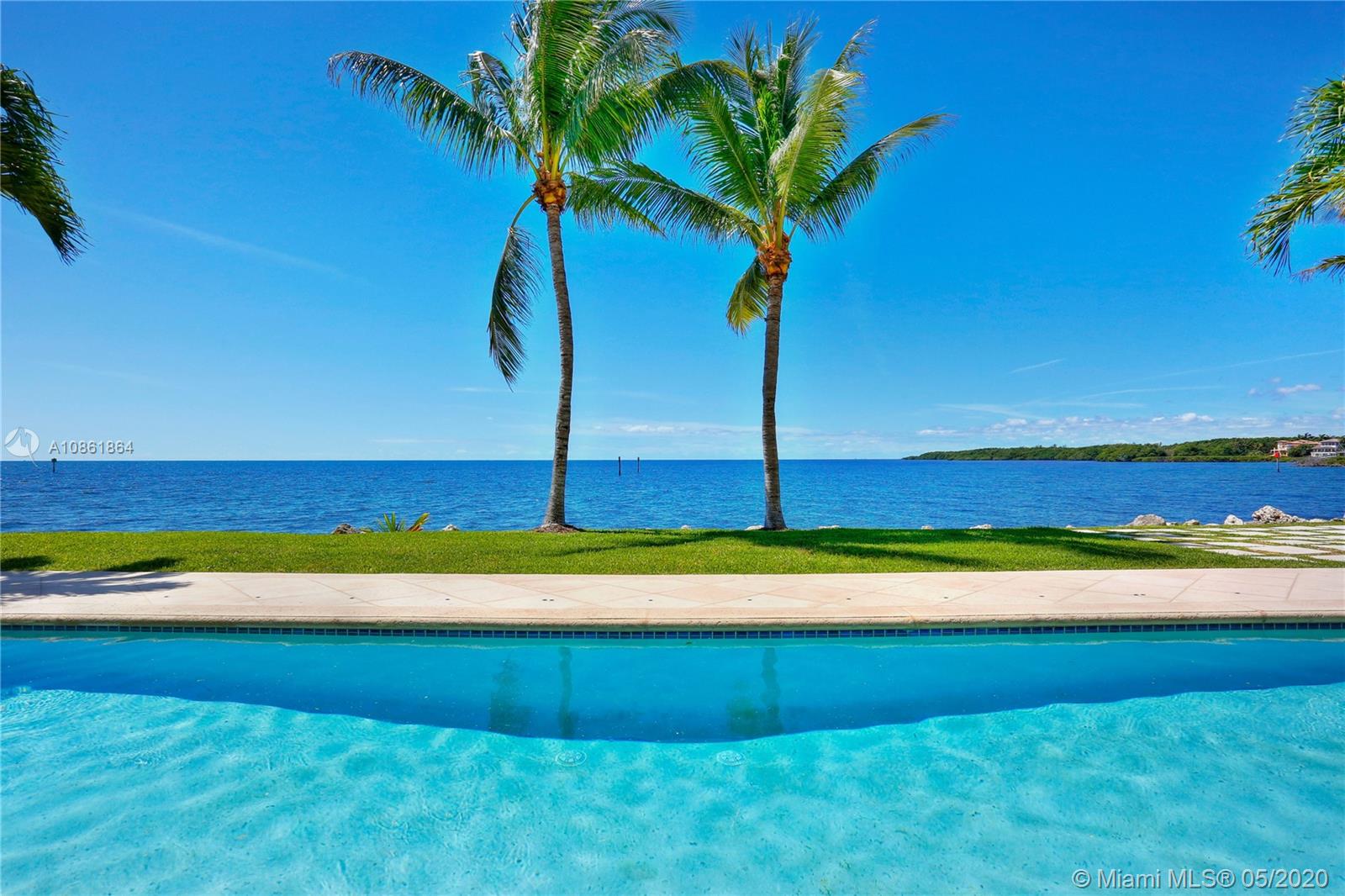 Stunning Palladian style bay front estate commanding the best location in the gated community of Gables By The Sea. Breath-taking views of the bay from the spacious living areas, gourmet eat-in kitchen with top quality appliances, split floor plan with a private balcony access from each bedroom, impressive master suite, marble, wood and slate flooring, open roof top terrace, heated pool, lush landscaping and 2 car garage. New owner can build a dock at this property.