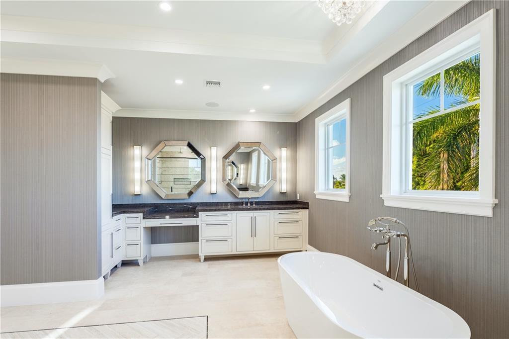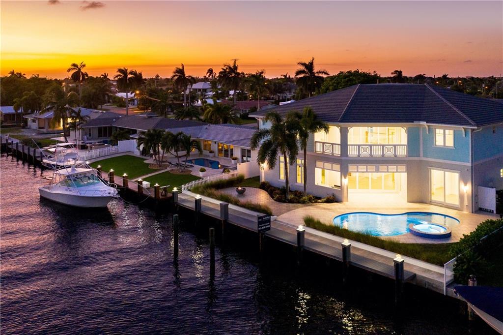 New British West Indies inspired deepwater estate boasting 80+/- feet of water frontage on the Capri Canal in the enclave of Pompano Beach. Double door entry expands to luminous, glassed encased rooms that view the waterway & pool. Smart home automation throughout the entire property including the garages. Classically-Chic Chef's Kitchen, with sub-zero & wolf appliance packages, including a gas range with natural gas hookup. Luxurious master quarters feature spa-like baths, his/hers wardrobes, his/hers water closets, with a makeup vanity & private waterfront balcony. Luxuriate in outdoor entertaining at the resort-style pool with a covered lanai, an outdoor summer kitchen, fire-pit, and a cabana bath with an outdoor shower. Composite made yacht dock with cleats, bumpers, 60 Amp pedestal.