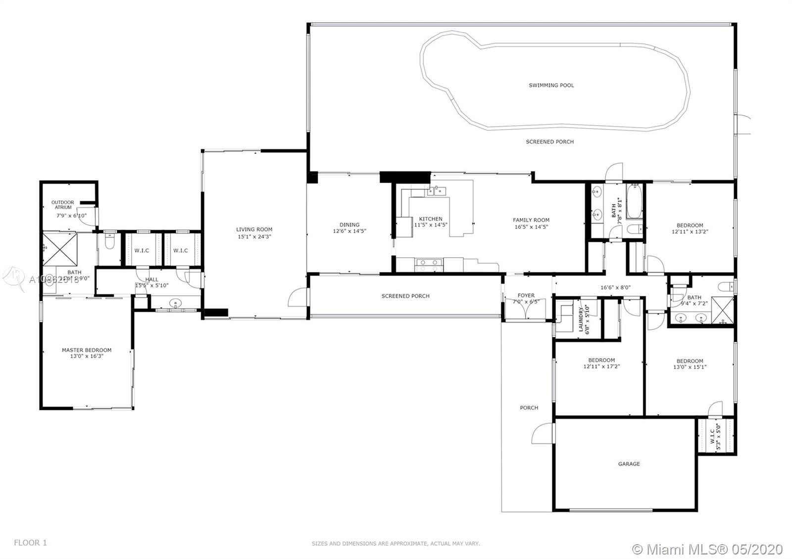 Jewel property in a natural hammock setting in the Devonwood neighborhood of Pinecrest. This was the very first lot/house selected / developed for its wonderful native landscape with rare plants, trees, and coral rock formations including a solution hole serving as a natural playground. Maintained by its original owners, the home is ready for personalization and has a spacious layout & split bedroom plan -SEE FLOOR PLAN IN PHOTOS. Roof is 4 years old. Master suite is flanked by windows, reminiscent of a tree house overlooking the garden. Spacious rooms, including formal living & dining rooms and kitchen with eat-in counter open to family room -All have sliding glass doors cascading over a great screened patio-pool area. Indoor laundry room, spacious 2 car garage and much, much more.