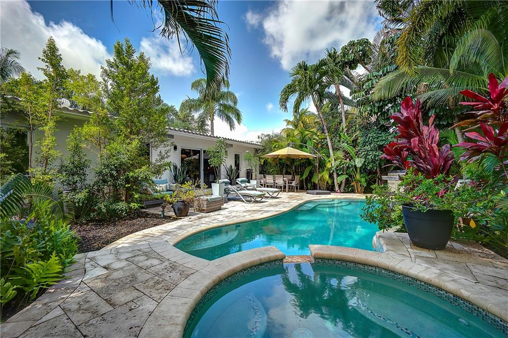 GORGEOUS MID CENTURY STUNNER - 3 BEDS; 2 BATHS; OPEN CONCEPT LAYOUT - THIS HOUSE HAS EVERYTHING AND ALL RECENTLY RENOVATED. EXTREMELY HIGH QUALITY WORKMANSHIP AND MATERIALS USED THROUGHOUT. SPLIT BEDROOM PLAN, ALL IMPACT WINDOWS AND DOORS, GOURMET KITCHEN WITH CUSTOM CABINETS, A 9 FOOT COOKS ISLAND, CHEF QUALITY APPLIANCES, AN UNDERCOUNTER ICE MAKER, BRAZILIAN QUARTZ COUNTERS AND GENEROUS LAUNDRY AND PANTRY. HIGH END WINDOW TREATMENTS THROUGHOUT WITH MOST REMOTE CONTROLLED. THE BACKYARD IS A TROPICAL OASIS - TOTALLY PRIVATE W/MATURE TREES ALL AROUND, GORGEOUS SALT WATER HEATED POOL W/ RAISED JACUZZI. MOSQUITONIX SYSTEM IN BOTH FRONT AND BACKYARDS TO KEEP THE PESKY MOSQUITOS AWAY. THIS HOUSE IS A DREAM.