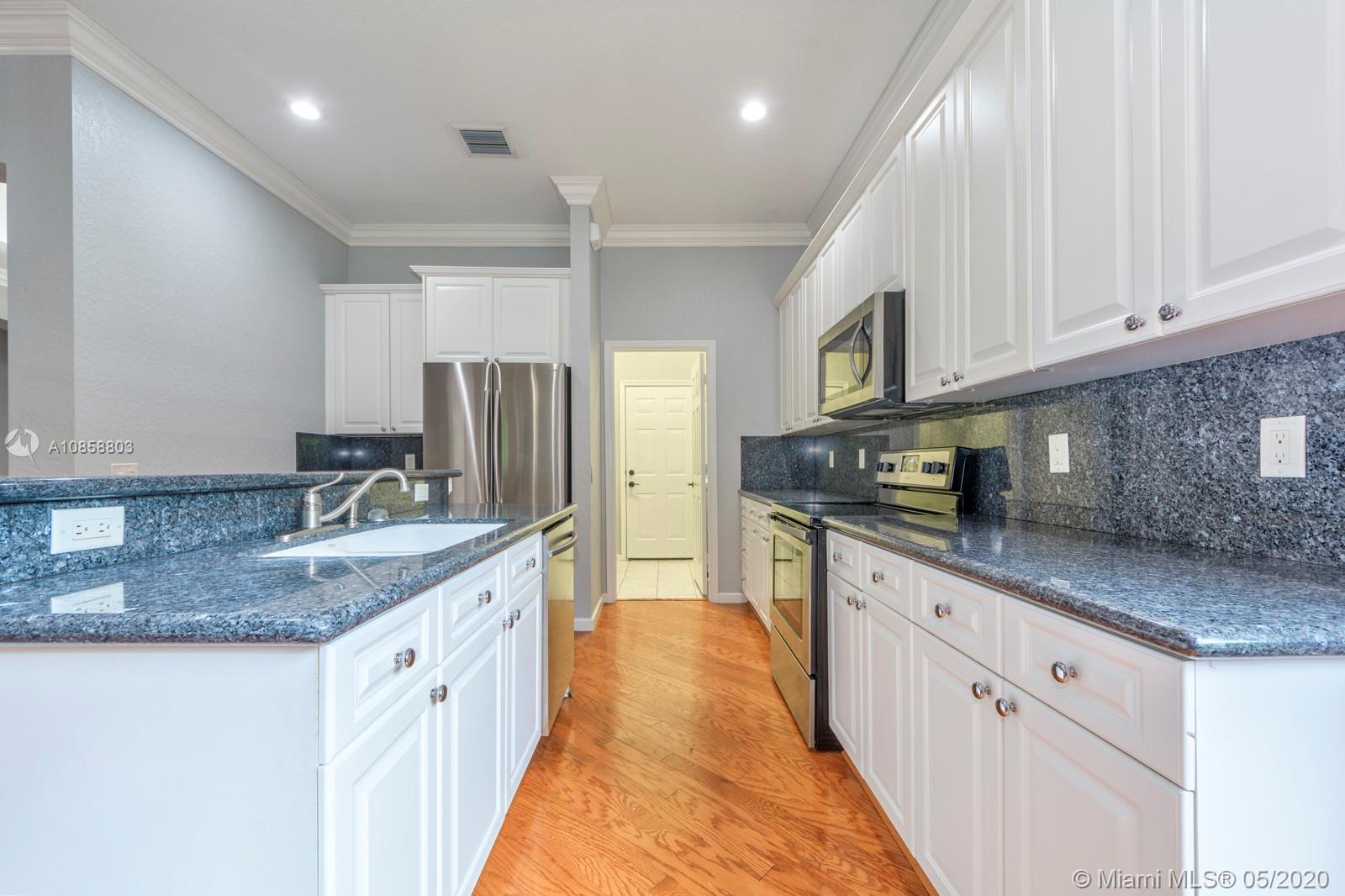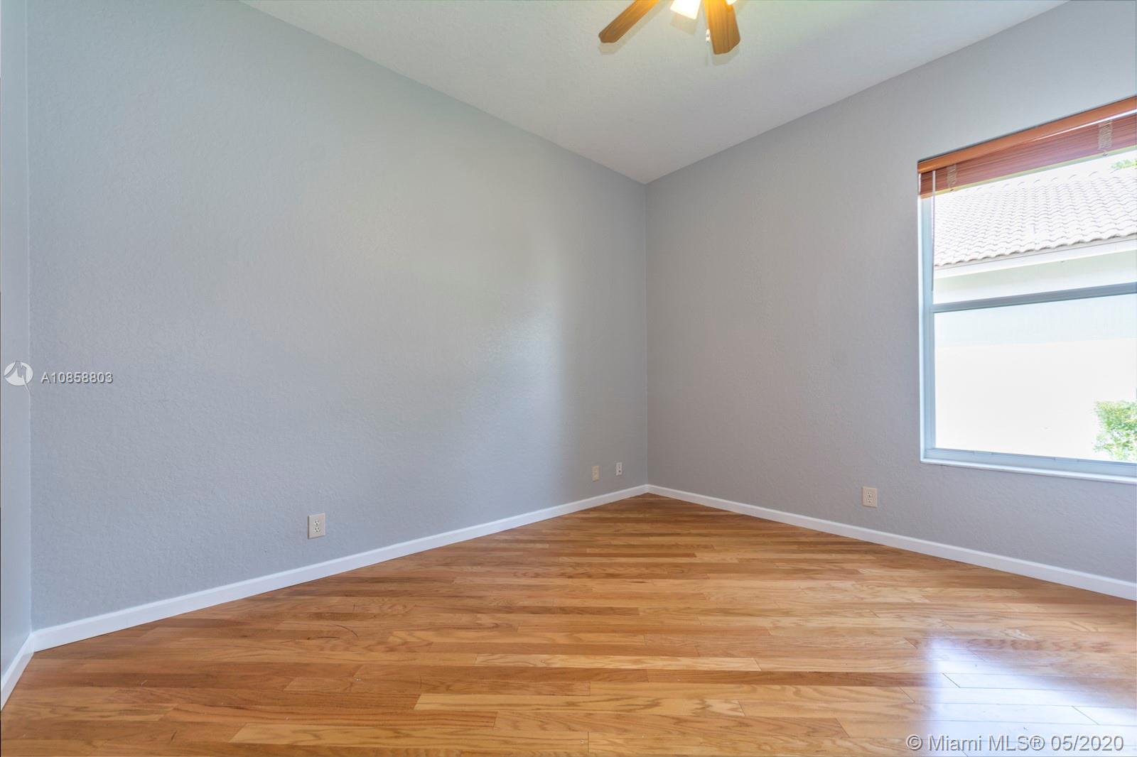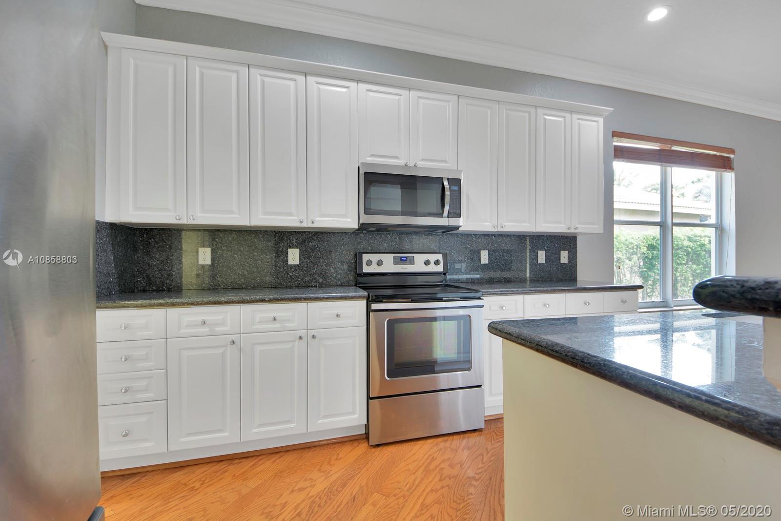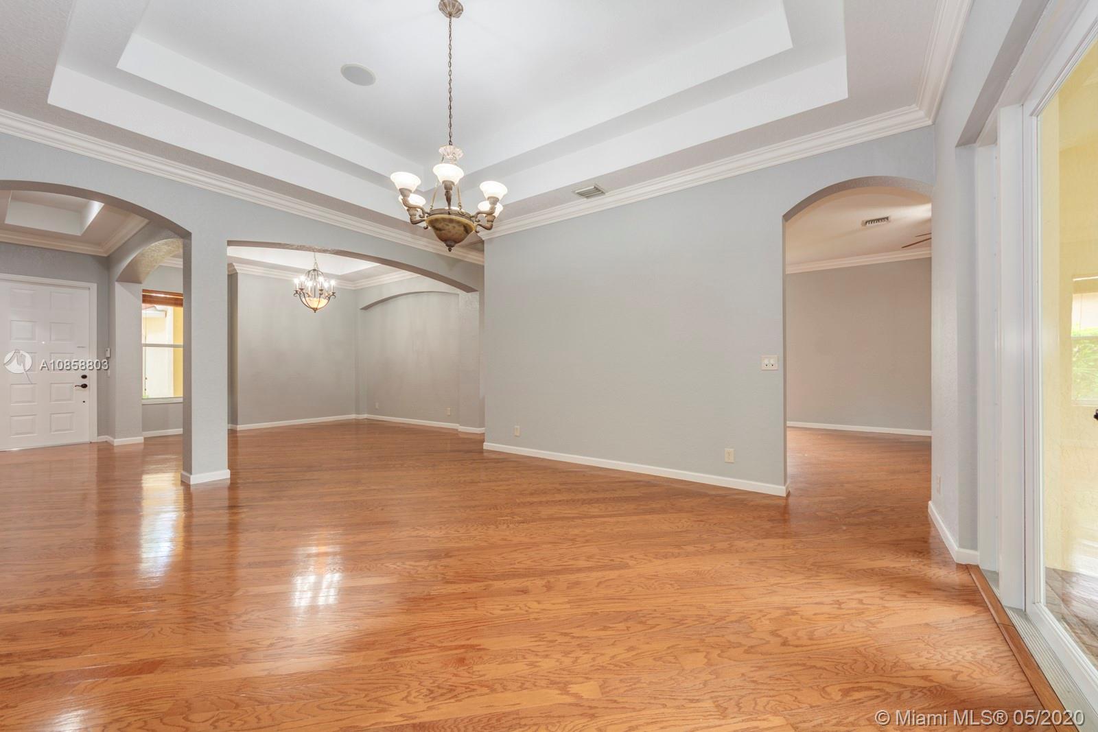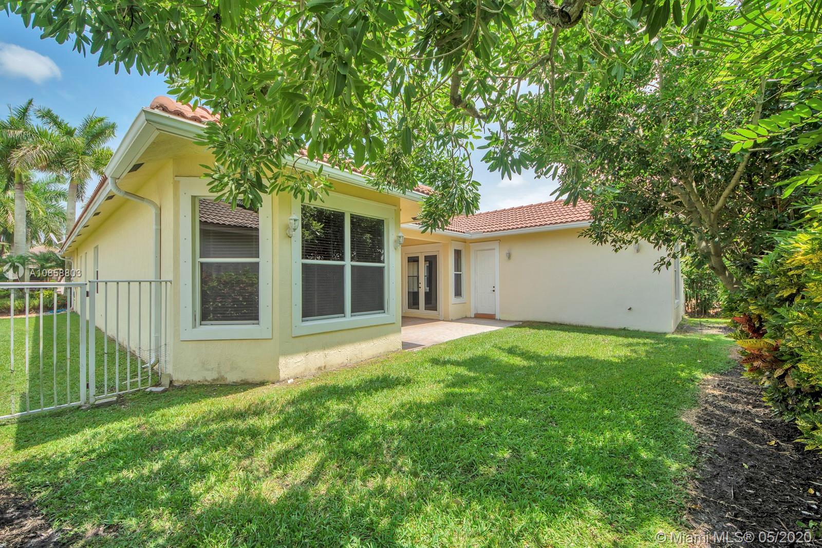 Fabulous four bedroom three bathroom one story home in Weston Hills Country Club. Upgrades include wood floors throughout, center island kitchen with stainless steel appliances, granite counter tops and snack bar overlooking family room. French doors open to covered patio for outdoor enjoyment and fenced yard surrounded by lushly landscaped for ultimate privacy. Triple split floor plan. Recently painted. AC 2017. Two car garage and circular driveway for easy parking. Guard gated community in the heart of Weston.