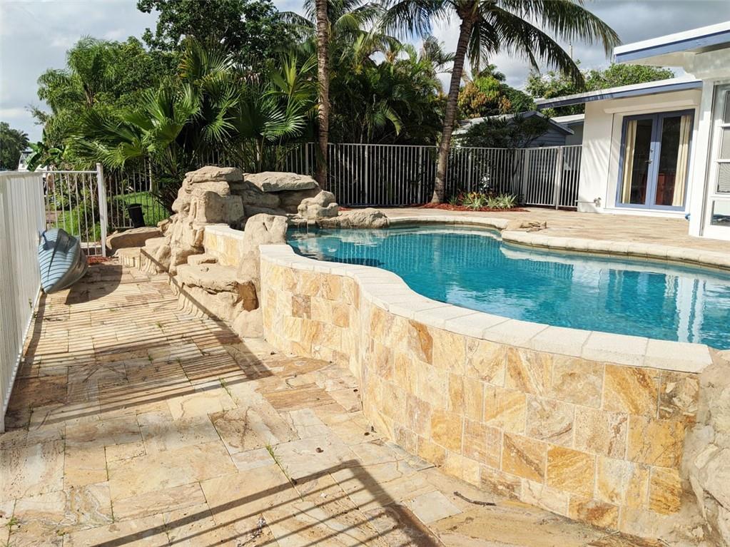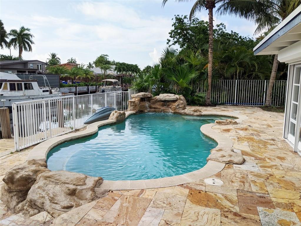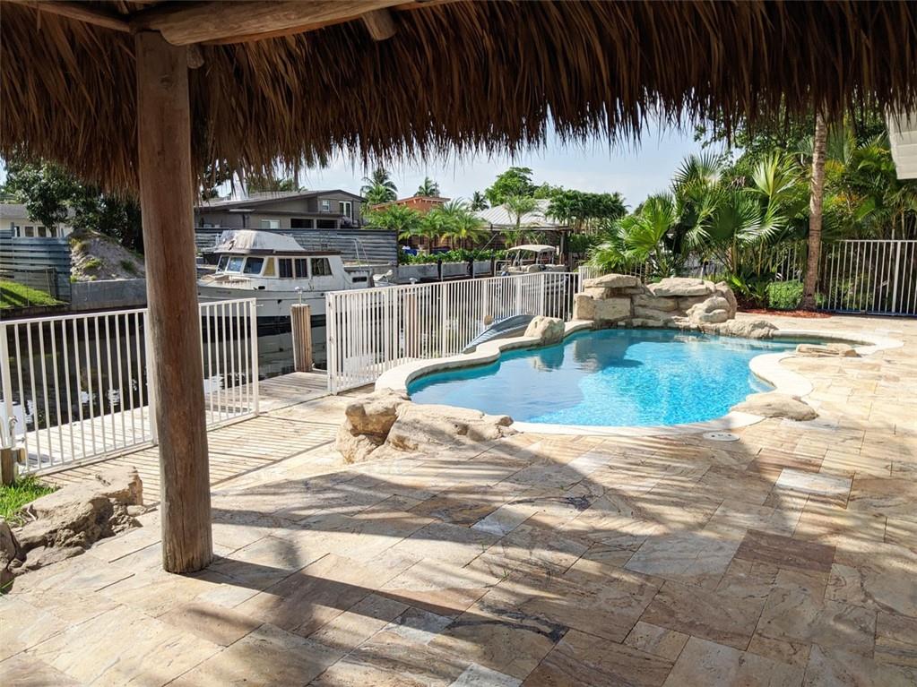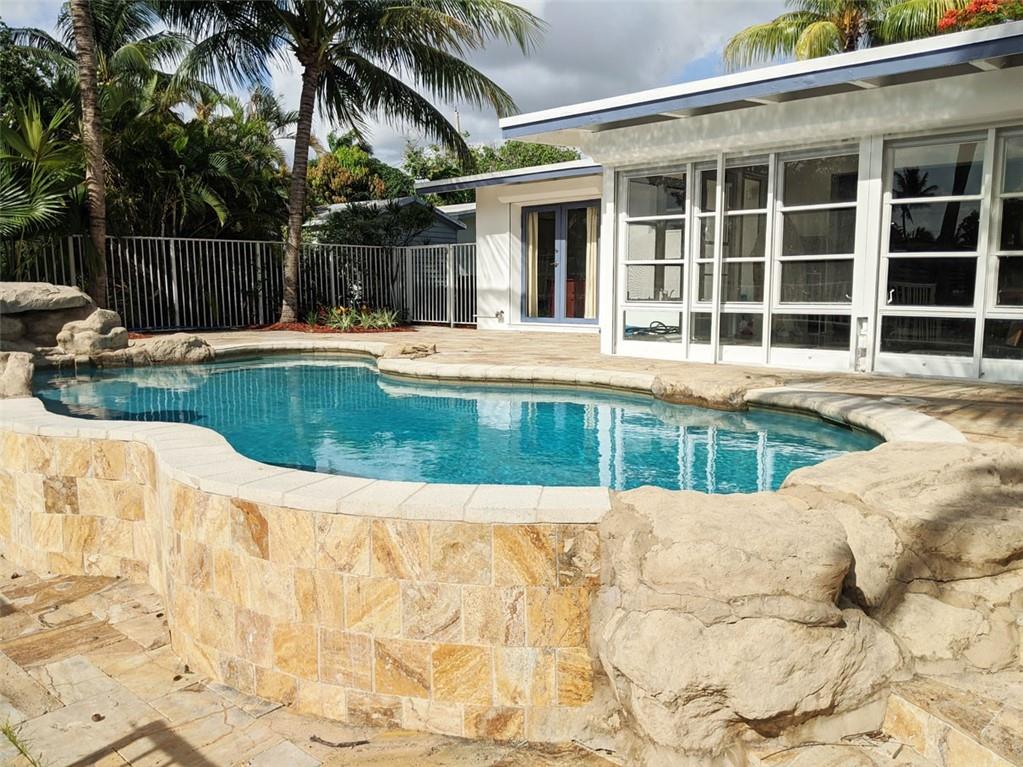65 ft. Waterfront, ocean access (deep water) 3br, 2 baths with waterfall, heated salt pool with Tiki-hut, 24ft dock. New paint in/out, new dishwasher, range & microwave. Terrazzo floors, 2 central ACs, newer water heater, new Powerbox with generator hookup. Recently Tiki-hut was redone & new boards on the dock. Backyard is spectacular, you have to see. Enjoy a dip in the pool and rest under your Tiki-hut, step to your boat on your way to the Intracoastal restaurants or the ocean anytime. The owner has been remodeling most of the home himself, but leaving some final (TLC) touches to new owners.