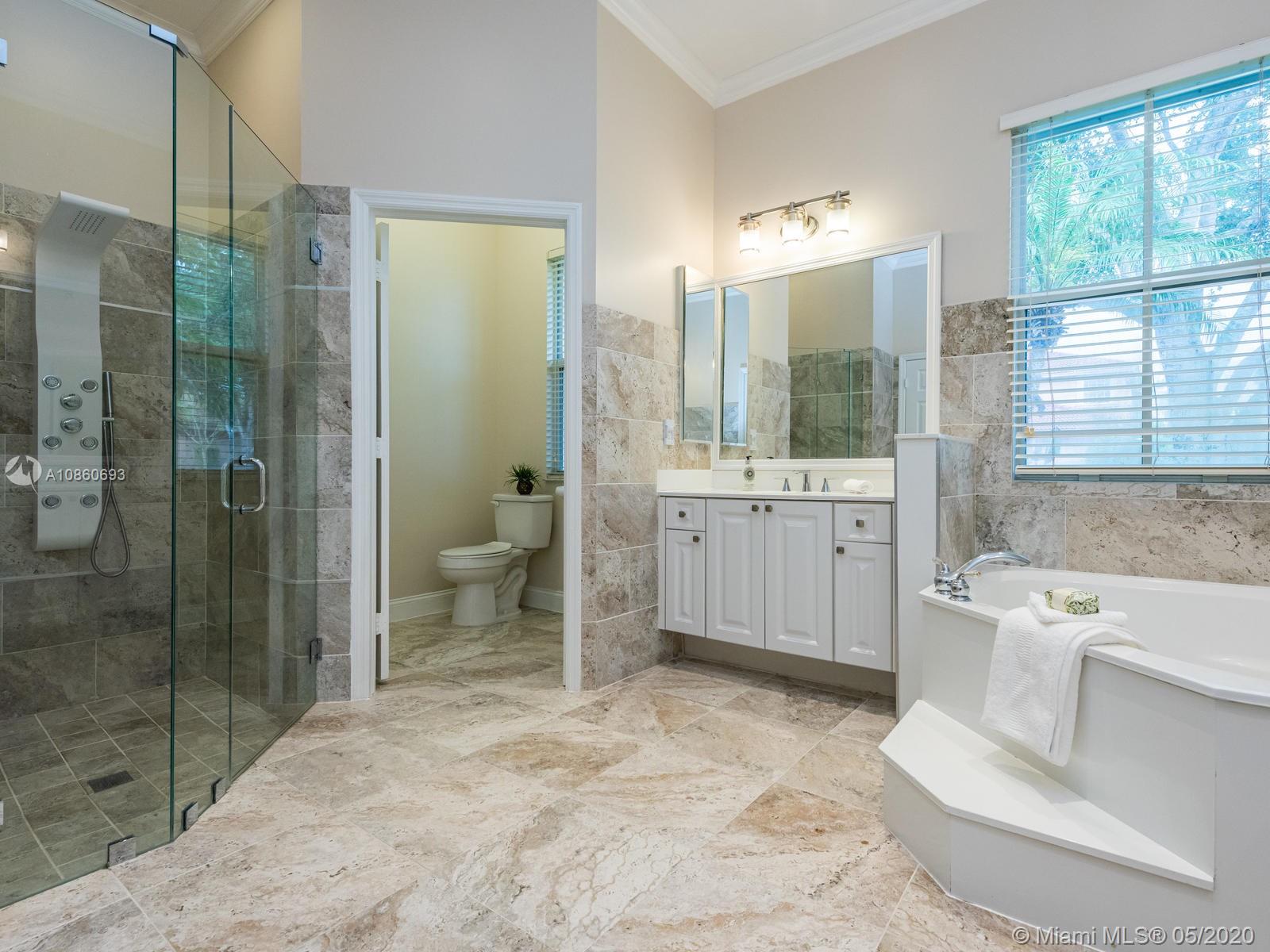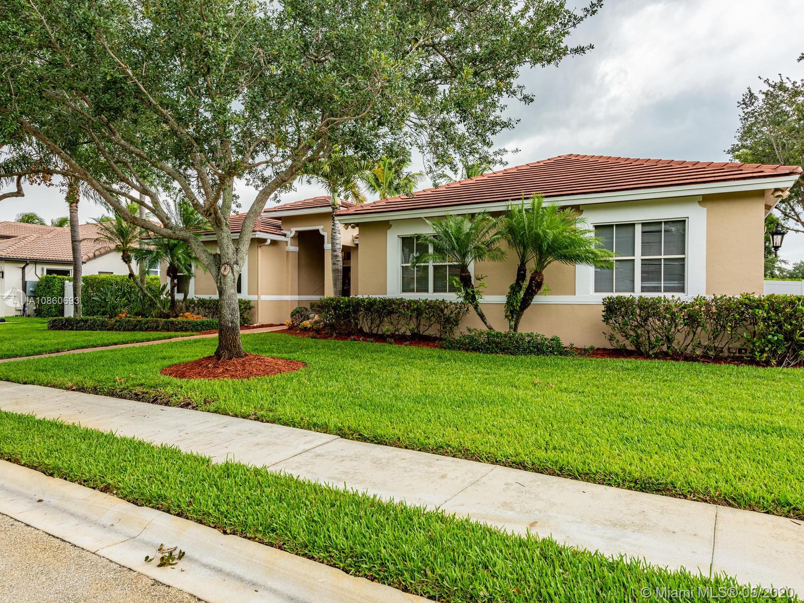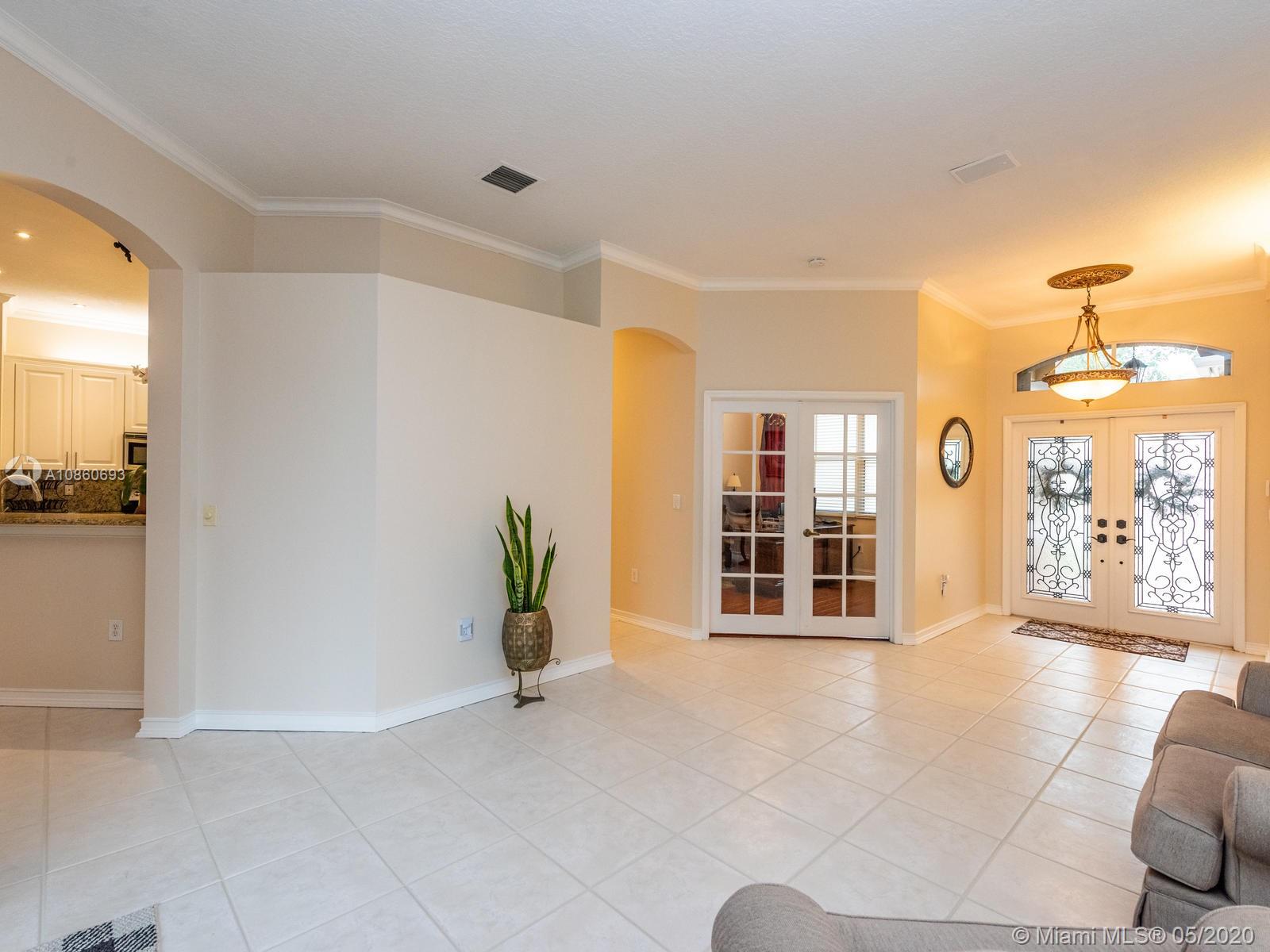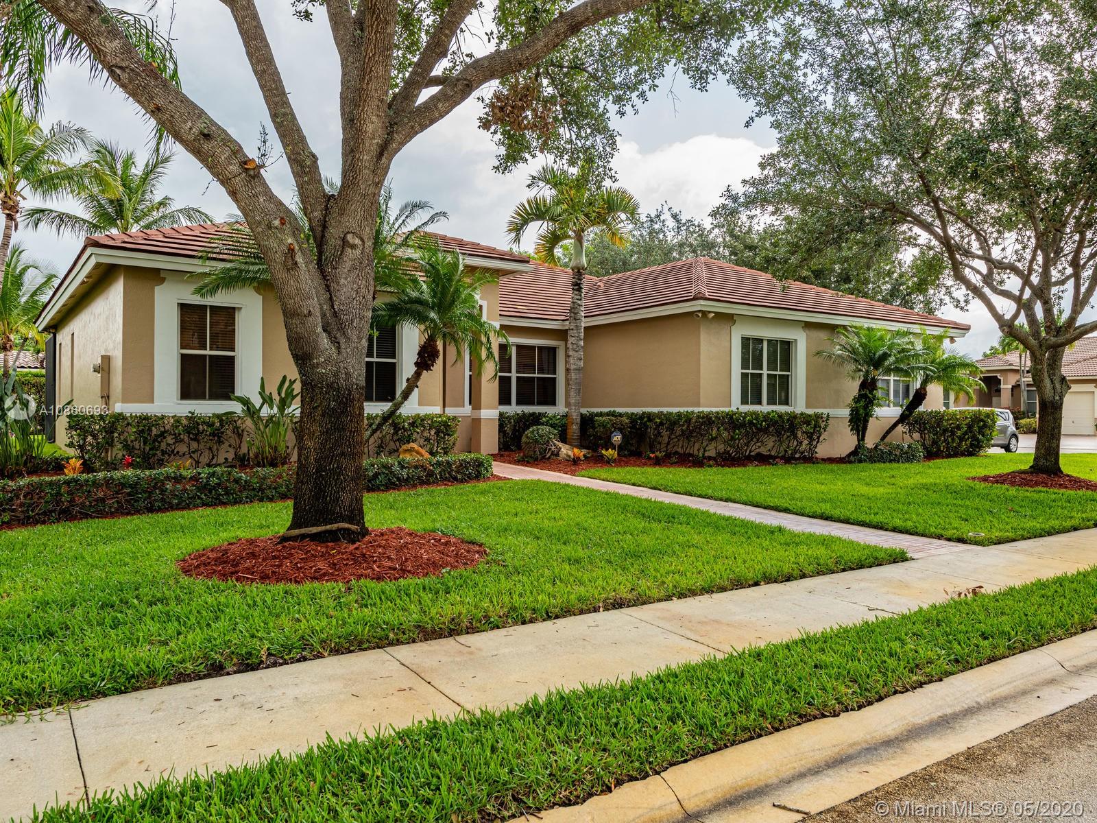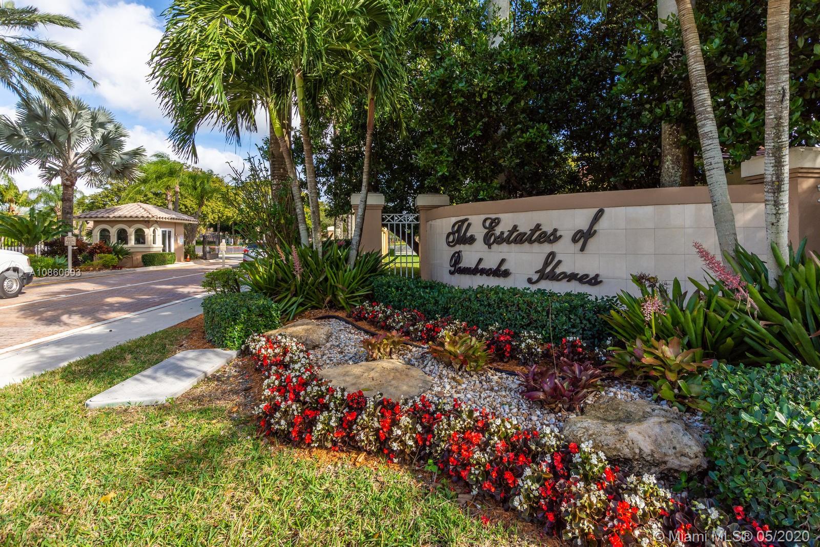 WOW!!This one of a kind, corner, split plan 4 bedrooms, 2 bathrooms plus office and a 2 car garage Ranch style home situated in the prestegious gated "Estates of Pembroke Shores" community in the heart of Pembroke Pines. This home is a MUST SEE with the all around fence for privacy and beautiful pool area alongside the relaxing deck. This immaculately kept home showcases each bedroom and office with wood floors and main area has ceramic tiles throughout. Both bathrooms are nicely upgraded with neutal colors. The modern white kitchen has granite counter top and over looks the open living and family areas. Landscape and yard are nicely kept waiting for the right family to call home. SELLER'S DISCLOSURE AND RULES AND REGULATIONS ATTACHED.