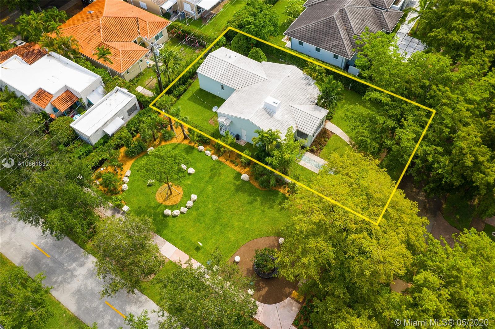 Landmark 1941 Deco-Modern bungalow by celebrated architect H. George Fink; expanded, restored, and updated to perfection in 2016. Ideal location next to delightful pocket park & short walk or trolley ride to downtown Gables or Merrick Park. Features gourmet kitchen, dining room, butler's pantry, wine cooler, wet bar, laundry room, new master suite, custom cabinetry, original wood-burning fireplace, new plumbing, new electric, new lighting and speakers, new AC, new tankless gas water heater, new sprinklers, new well & new septic tank, gorgeous hardwood floors, new impact windows & doors, plus garage. Ad valorem tax-exempt on a portion of real estate taxes through 2025. This completely turn-key 3/2 mid-century jewel offers charm galore with cutting-edge updates. 1910 Total Area, Lot 6250 sq'