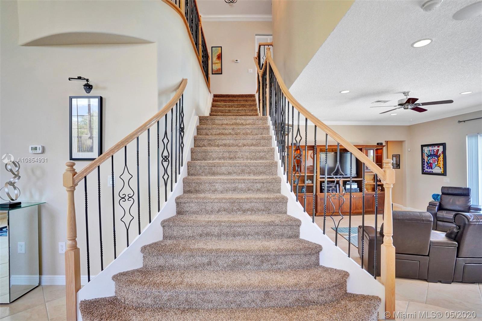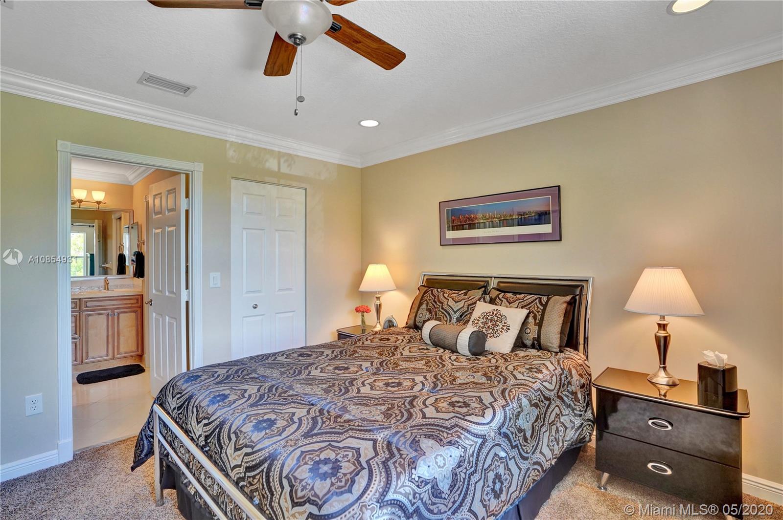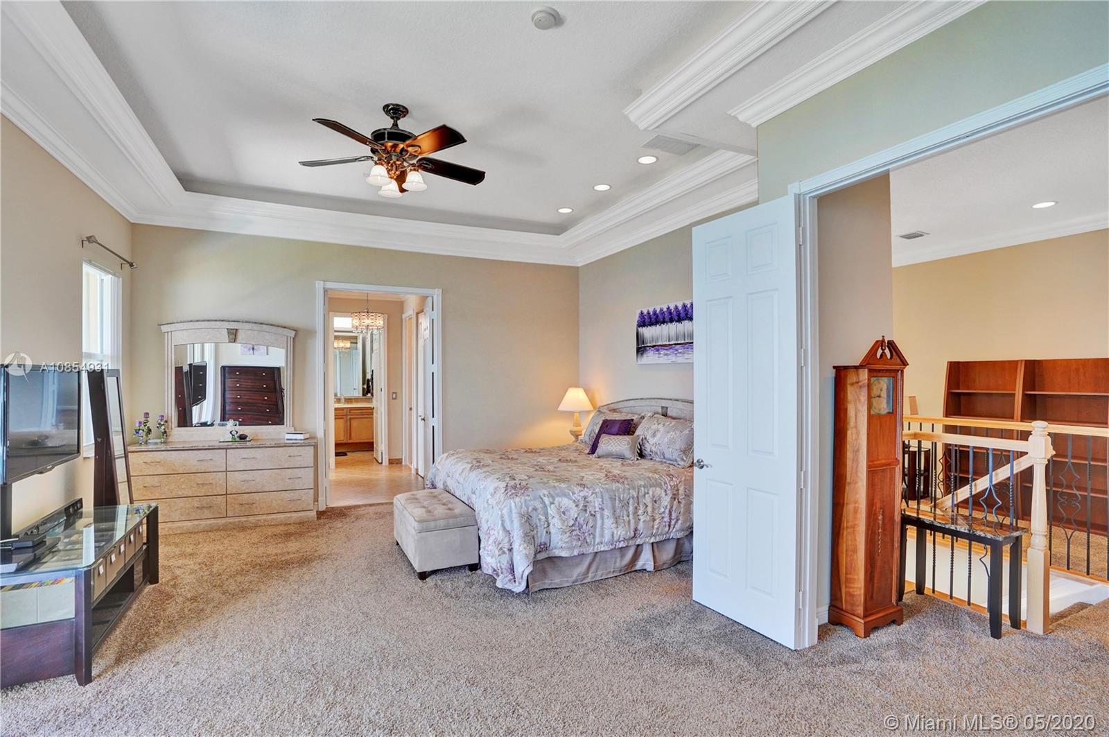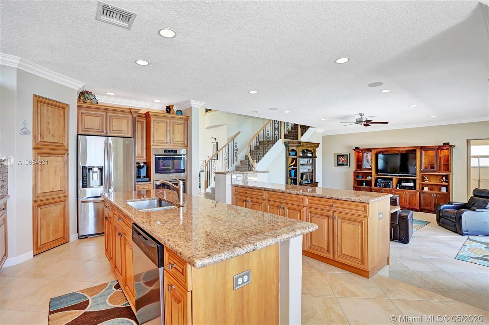 Location! Location! Longest lakeview in Miramar! From the moment you step in you are drawn to the expansive west facing lakeview. This TURNKEY home is a must see! Large, open and airy 6 BR 4 1/2 Bath home has ALL the upgrades and is move in ready.20x20 ceramic tile in all living areas. Upgraded solid wood pecan cabinets with 2 ISLANDS! All granite counters & newer SS appliances.Gorgeous crown molding in EVERY room . 2 new Carrier AC's and New Water Heater. Master Bedroom spans the entire back of the house with large private covered balcony. Master Bath is gigantic and is a separate his and hers with shower entry from both sides. Gorgeous professional landscaping with fountain. 5 star resort community with easy access to I 75. VACANT and SAFE TO SEE! Hurry before your dream home is gone.