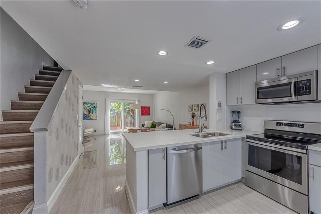 This beautiful move in ready remodeled townhome has 2 bdrms 2.5 bath, a light & bright open floorplan. The kitchen has Quartz counters, light gray gloss cabinets, stainless steel appliances & is open to the dining area & living room. The living room leads to your own private patio. The 2 master bdrms are located upstairs and each bdrm has there own bathroom with a shower panel, both bdrms have custom made closets. The laundry area is also upstairs. The AC unit was installed a few years ago. Sun Harbor is a boating community, when available you can buy or rent a dock from an owner. The complex is quiet, well maintained with beautiful landscape, a community pool, plenty of parking spaces & low HOA's. Walking distance to the beach & restaurants. Close to public golf course & park.