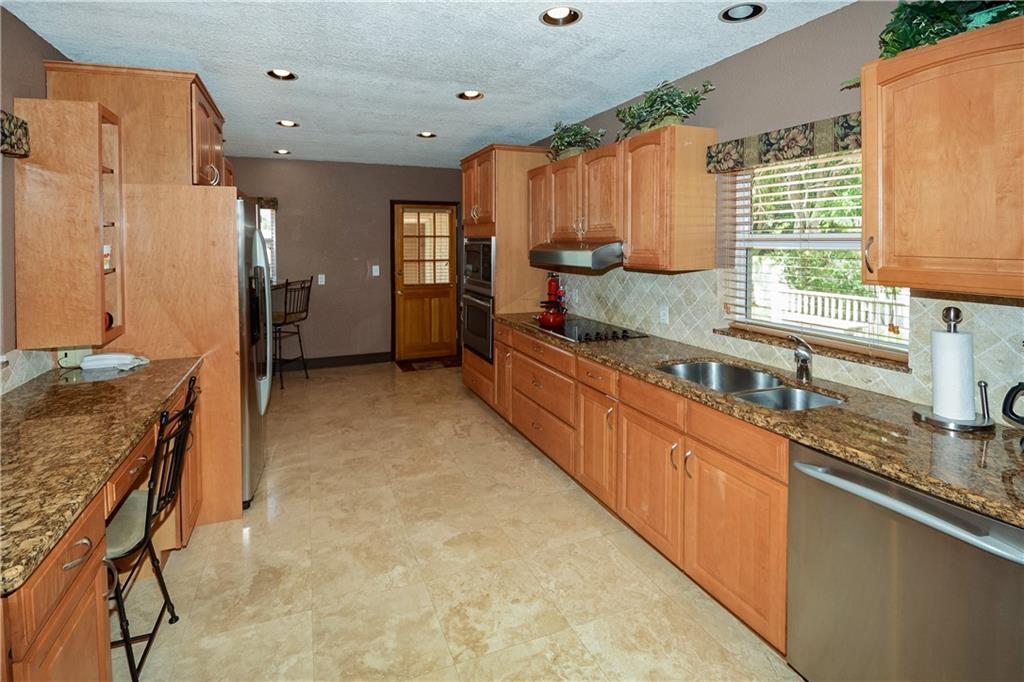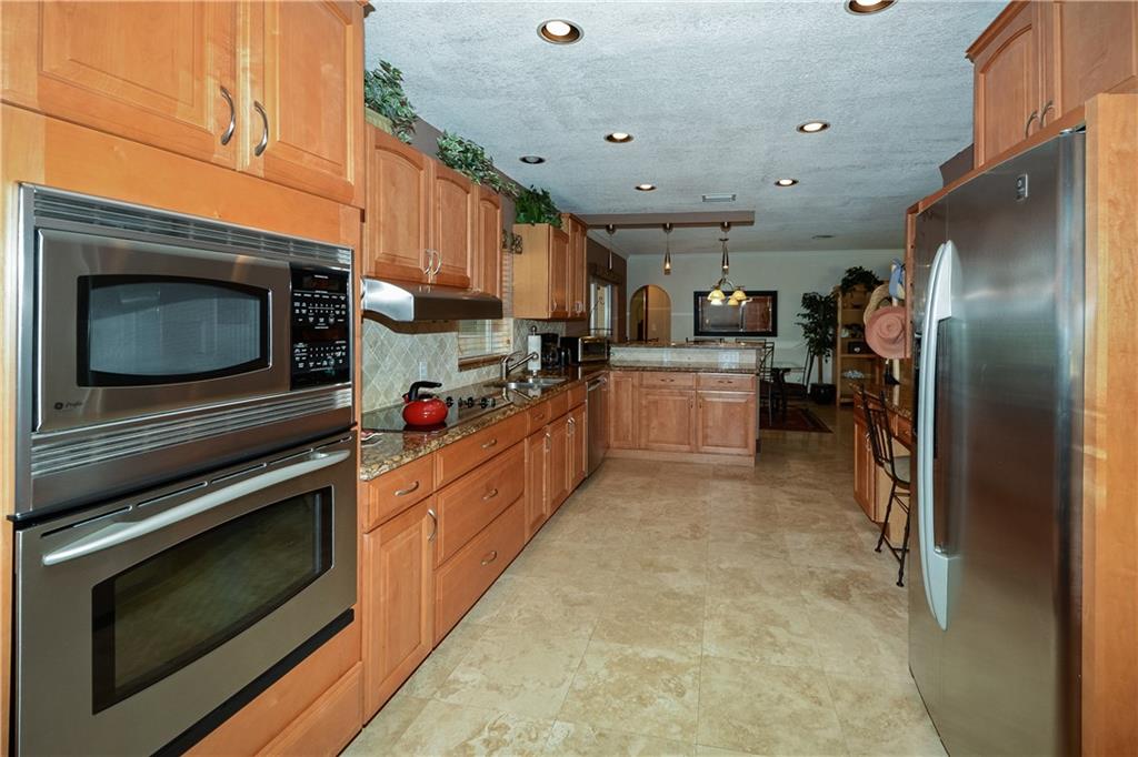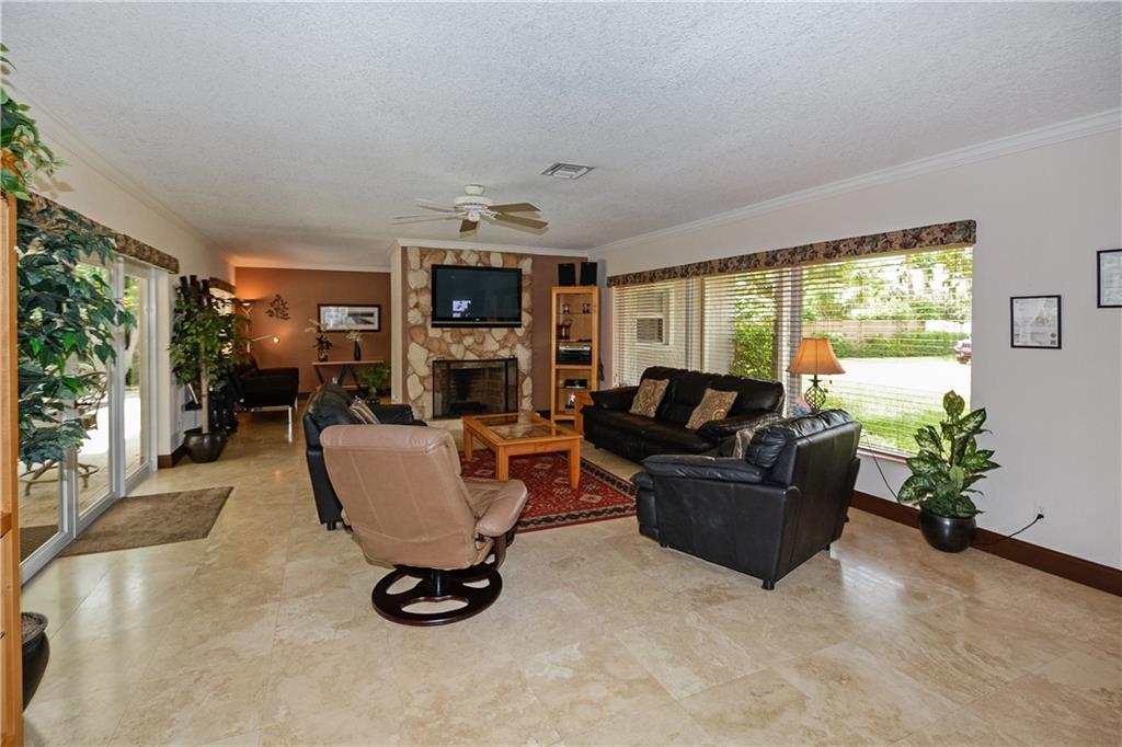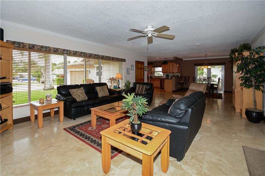Ready to move in, completely remodeled. Marble floors, granite counters, impact windows, fireplace, split floor plan, open area for liv, din and kit. Heated 15x30 pool/hot tub, w/ blue Pebble Tech finish, shallow area & fountains. 2 separate covered outdoor sitting areas w/ fans, hot/cold outdoor shower, full 2 car garage, 2 sheds. Backyard fully fenced in, mango & avocado trees, large lot & circle driveway for easy access & room for 8 cars. Pleated shades, drapes. New roof, A/C & upgraded appliances.