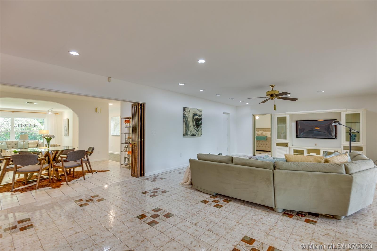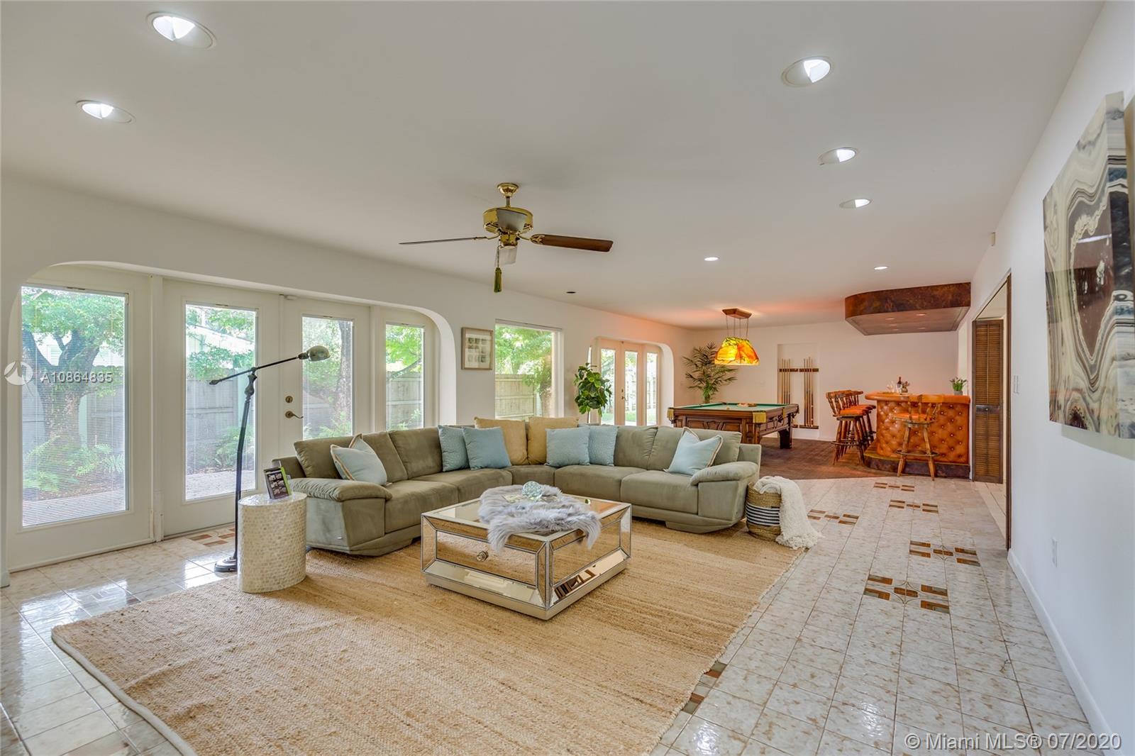 Fabulous opportunity in N. Pinecrest. Update this charming 3 bedroom, 2 bath, 2,300 SF home on a quiet, no-through street in a wonderful family neighborhood. This bright and cheerful home features an open floor plan with a sun lit living room that flows to a huge family room, large enough to include a bar and gaming area. French doors extend all along the family room providing beautiful views of the tree-shaded brick patio. The private, walled back yard has room for a pool and expansion on this 1/3 acre corner lot. This home offers a surprising number of great options for updating. It has impact windows, a metal roof, all new copper plumbing and a 1-car garage. All Pinecrest schools.
