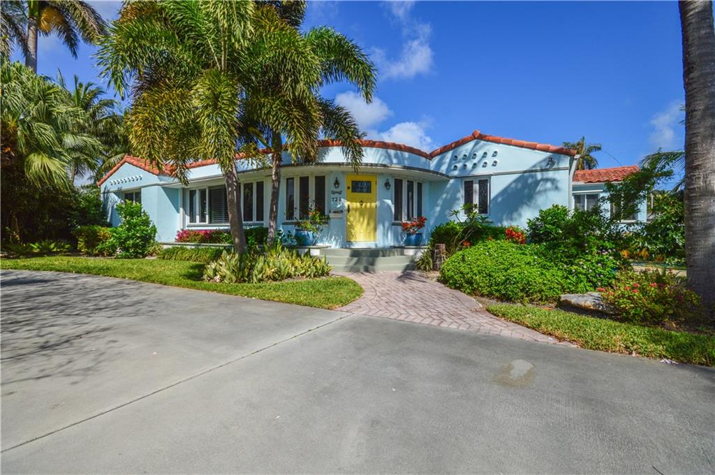 This beautiful home shows an iconic Art Deco exterior. The estate home sits on an oversized parcel with 3 full lots, steps from the Intracoastal, situated on a cul-de-sac, on South Lakes treelined Harrison Street. Updated beautifully with a newer kitchen + wood flooring and ceramic tile + impact windows and doors/shutters + newer electric throughout + updated plumbing + California closets in master bedroom + new hot water heater + new duct work/insulation + 3 zone central a/c’s + soundproof studio/garage + electric fence + surround sound music system (with multiple zone extensions) with a projection TV and a 94” diagonal screen + gutter system with multiple rain barrels to catch rain water + French drains + pool and spa are heated + sprinkler system and shed.