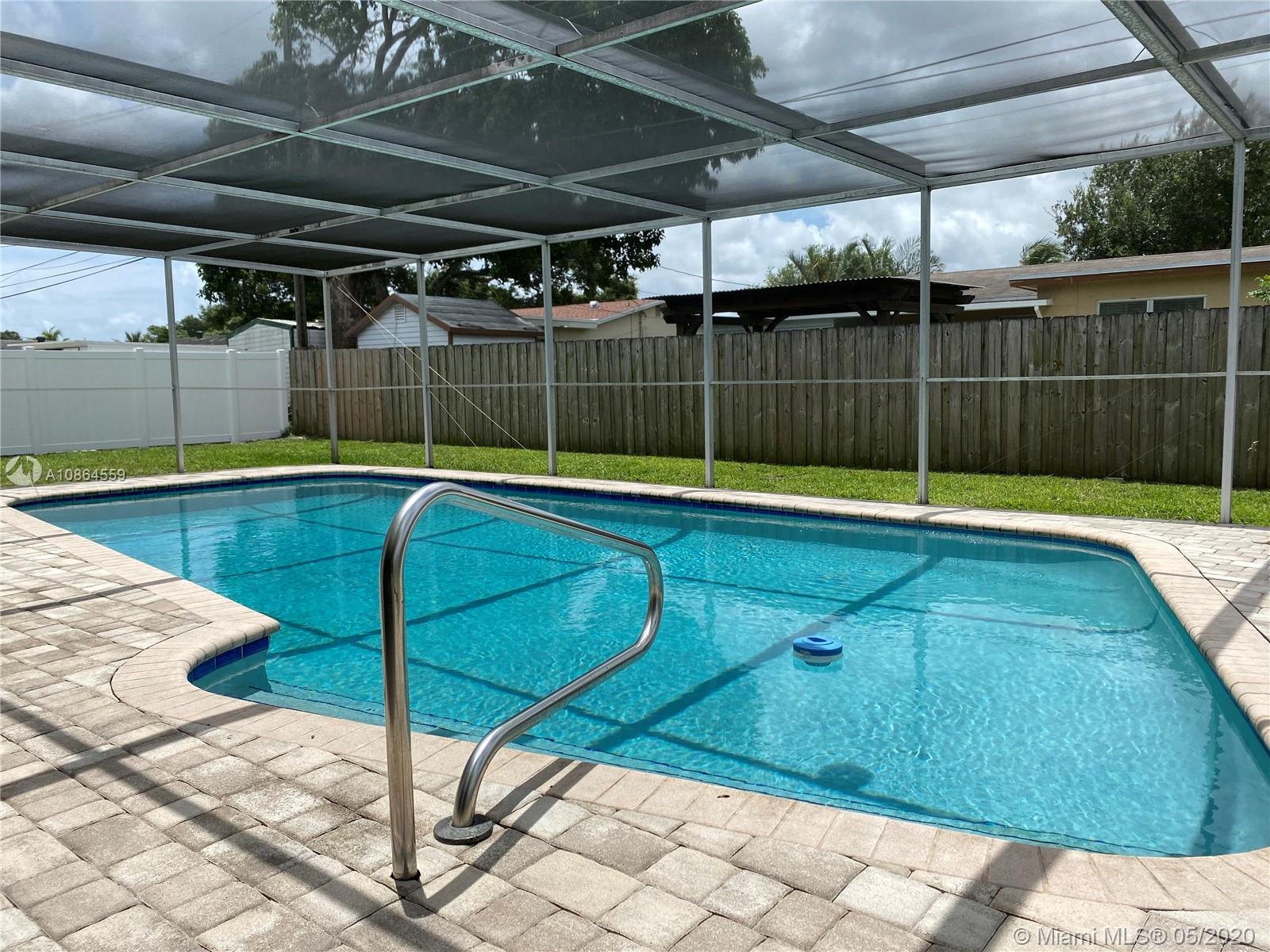 Multiple Offers situation. Gorgeous 3/2 pool home with with beautiful front yard. Family room and bonus rooms ,walk in closet bathroom with door that goes to bonus room. 4 year old air conditioner, hurricane shutters and, Stainless steel appliances.View to the pool from kitchen and living room. Pool area screened has pavers and a shed as well. This property is located in a family neighbourhood with walking distance to an elementary school. This property is perfect for a growing or extended family, has lots of room and potential.. Has no HOA and is located very close to Broward College, stores and the Turnpike. Easy to show! Moving condition. Price to sell and WILL NOT LAST!