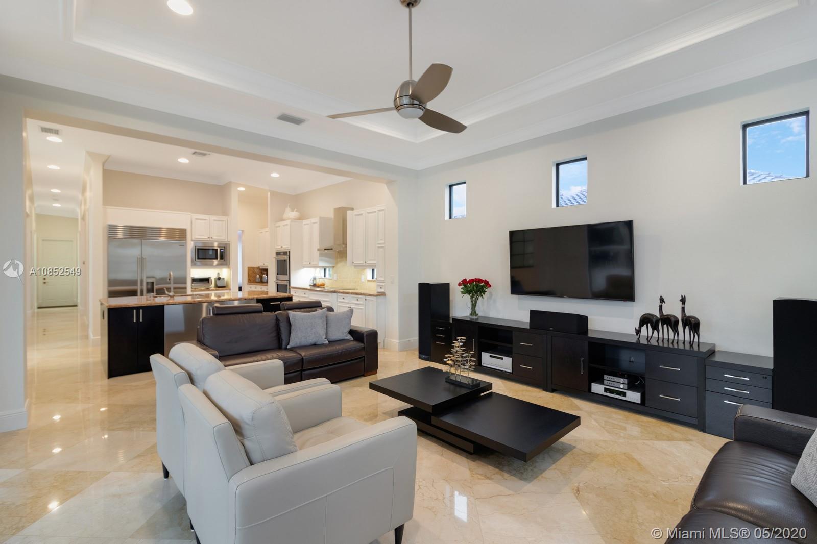 HUGE PRICE CUT ! Step inside and marvel at the merging of classic style and modern sensibilities in this exciting 8 bedroom (incl. office & game rooms) home featuring a 2-story open foyer. Designer lighting, profile crown moldings, impact glass, a private study, gorgeous living room with 3 levels of windows and loft ceilings, formal dining room with tray ceiling and butler’s pantry. Kitchen island, top of the line appliances w/ wine cooler. Gorgeous oversized patio offers entertainment venues, heated pool and spa, and striking landscaping with special lighting. Enjoy golf view of 4th hole across the serene lake from almost every window and outside from under the custom designed pergola or while BBQing in the summer kitchen setup. Full access to club (golf/tennis/spa/gym/dine)