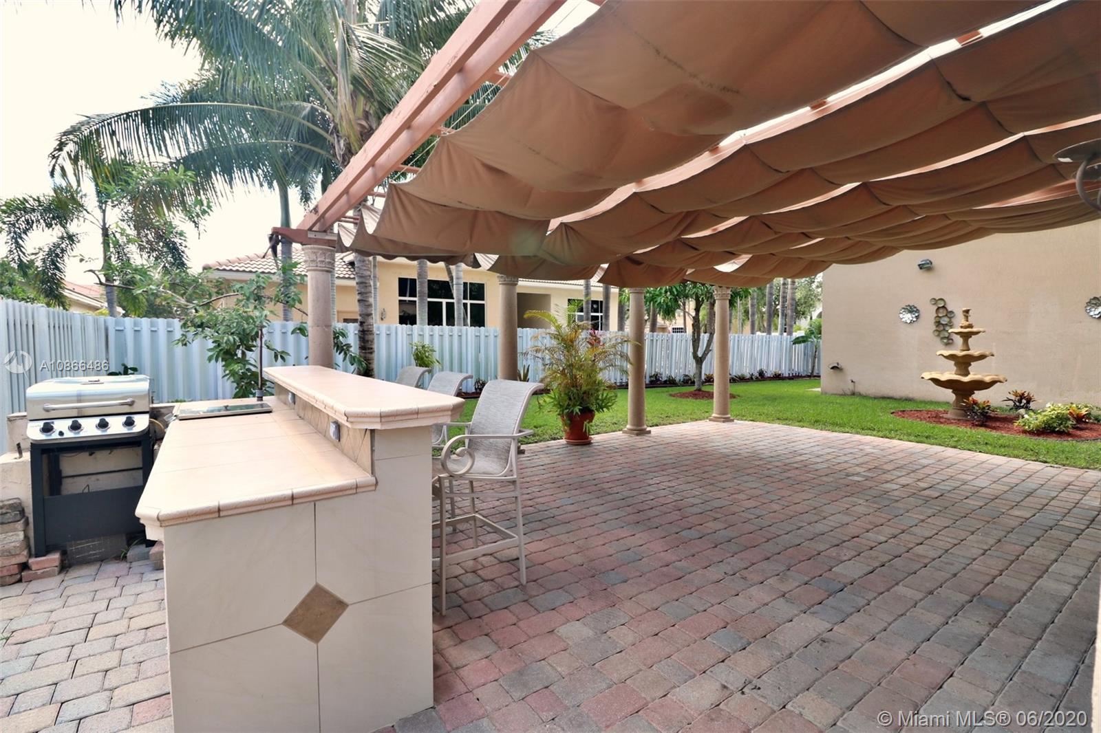 Desirable location in West Pembroke Pines, Impeccable 4 bedrooms 3 1/2 bathrooms office/den family room and loft, two-story single-family house, large patio with Pergola built-in barbecue and room for a pool, master bedroom on the ground floor, tile flooring downstairs, laminated wood flooring upstairs, dual a/c unit, natural gas available, kitchen with granite counters cooking island and stainless steel appliances, three-car garage, vaulted ceilings, laundry room, large corner lot. Community amenities include a clubhouse with children playground tennis courts exercise room community pool, 24 hours guard gated, lawn maintenance, and cable included in the maintenance fees. Must see it to appreciate it. Call today to schedule a private showing.