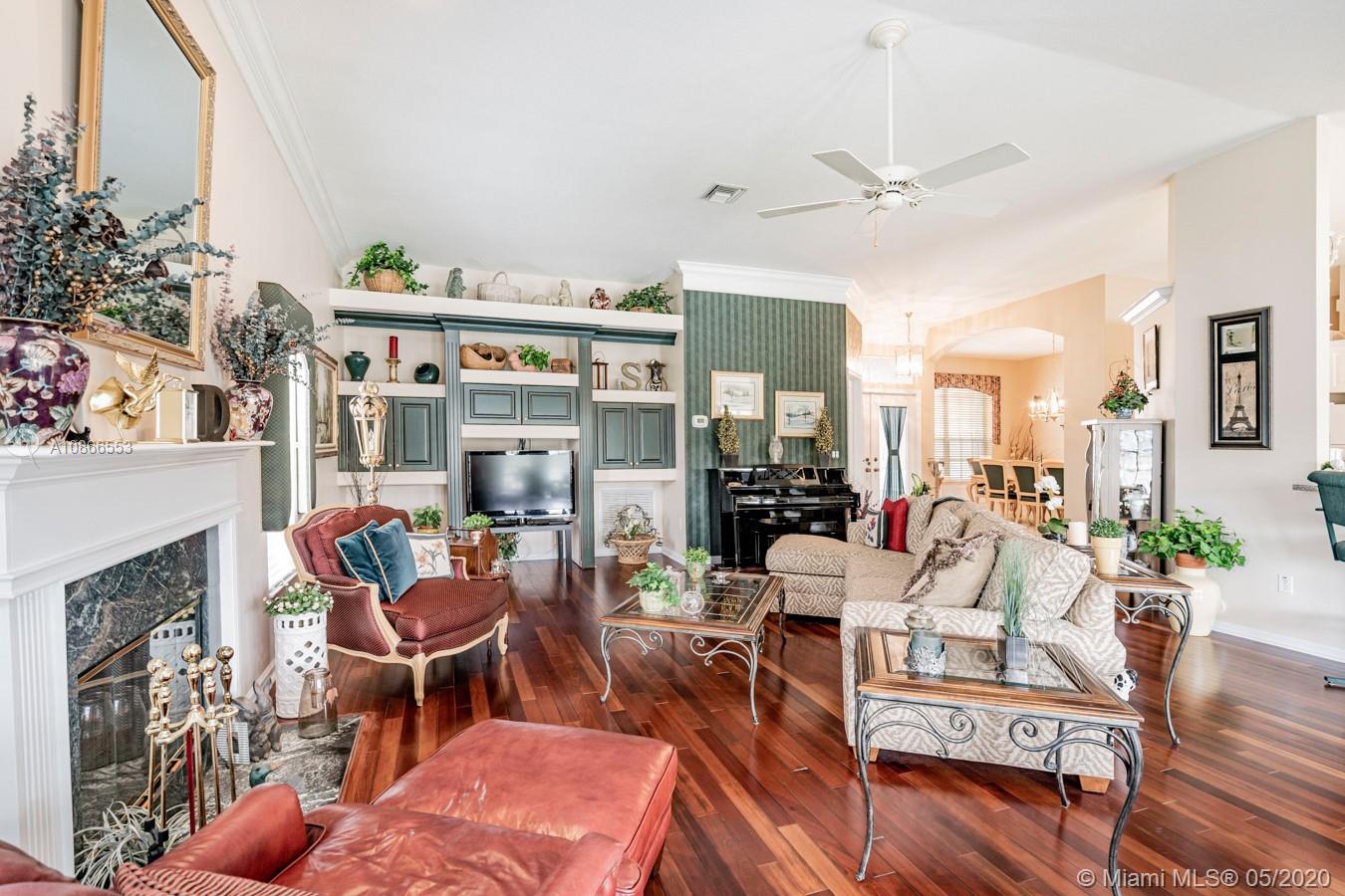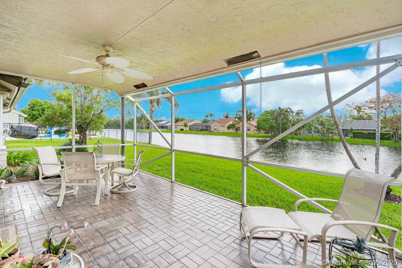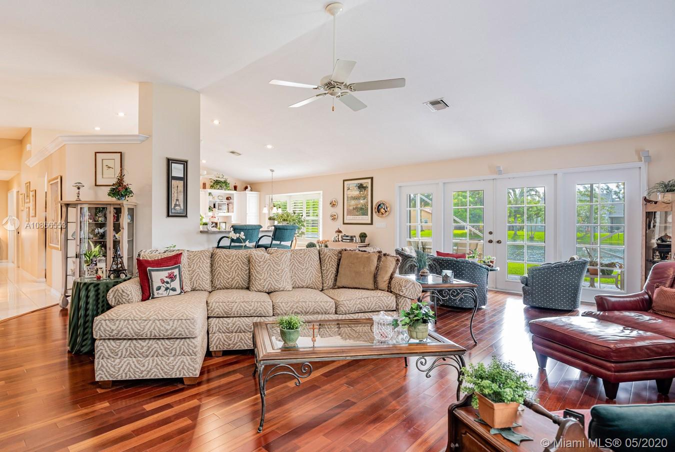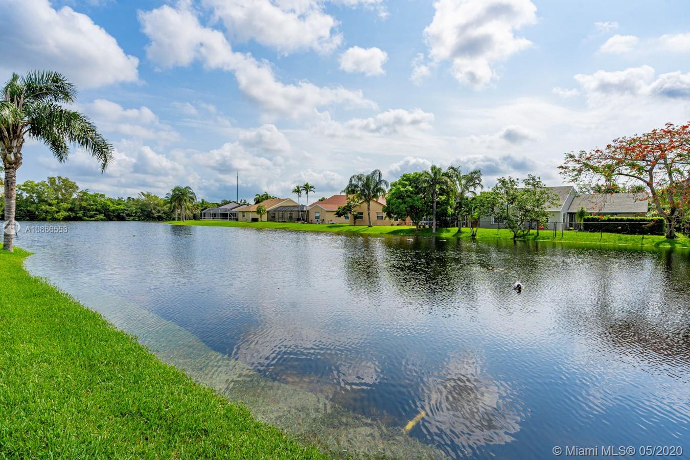 Beautiful waterfront home in Davie is ready to make your own! Spacious 3/2 features custom designed kitchen w/several pull out cabinets, over-sized island, all bedrooms have walk-in closets, crown molding throughout, vaulted ceilings in main living areas and master, wood burning fireplace, custom plantation shutters and blinds throughout, bay windows in cafe area & master with lake view, custom built-in unit in great room, 52 in. fans in all rooms, Bay windows in cafe area and master, large linen closet, tiled screened patio, French doors to patio, hardwood flooring and 17 inch tile throughout, utility sink in garage, hurricane accordion shutters/gutters, automatic sprinkler system that runs off lake, monitored security system on doors & windows and so much more. Make this your home today!